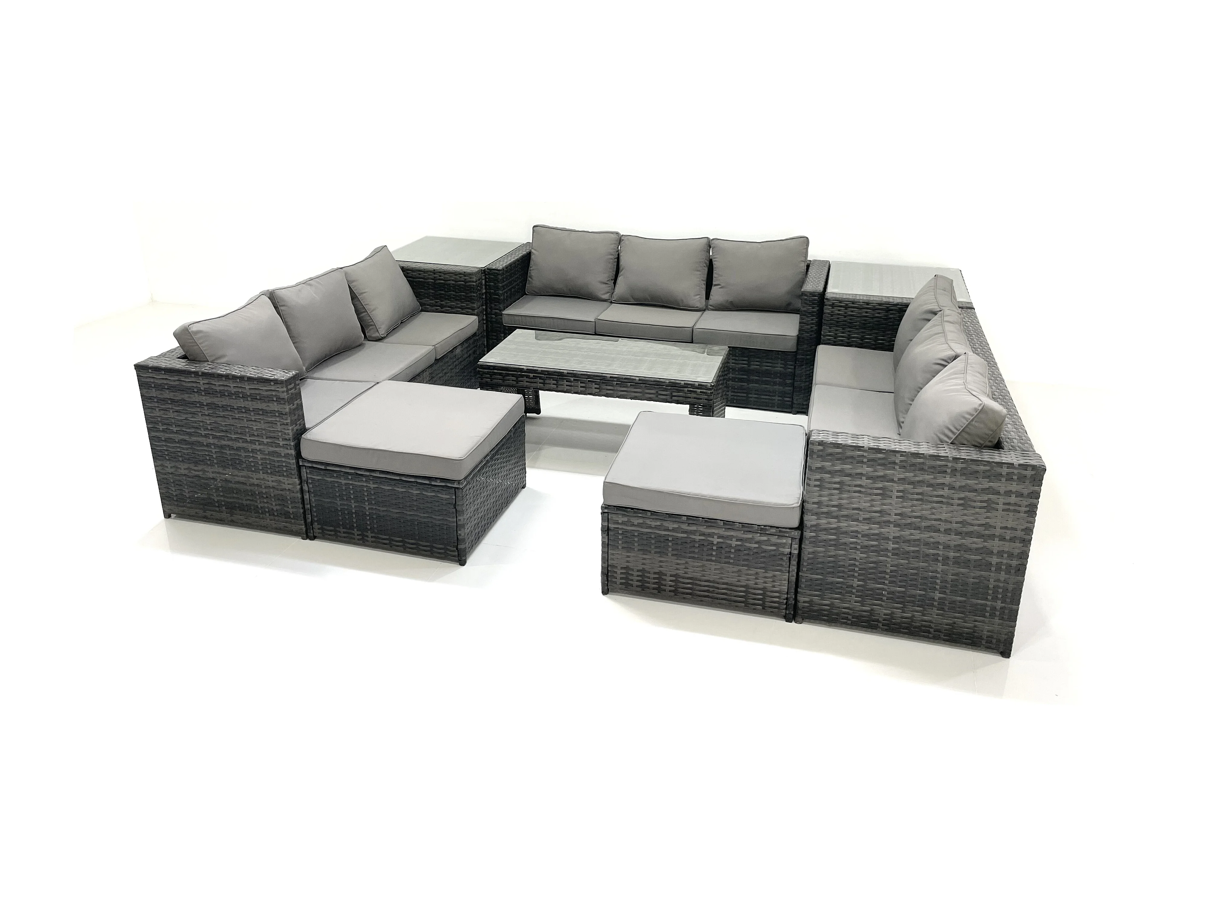 Gartenmöbel-Set 8 Stücke Polyrattan Sofa Set mit Couchtisch 2 hohen Hockern Beistelltisch Dunkelgrau Gemischt