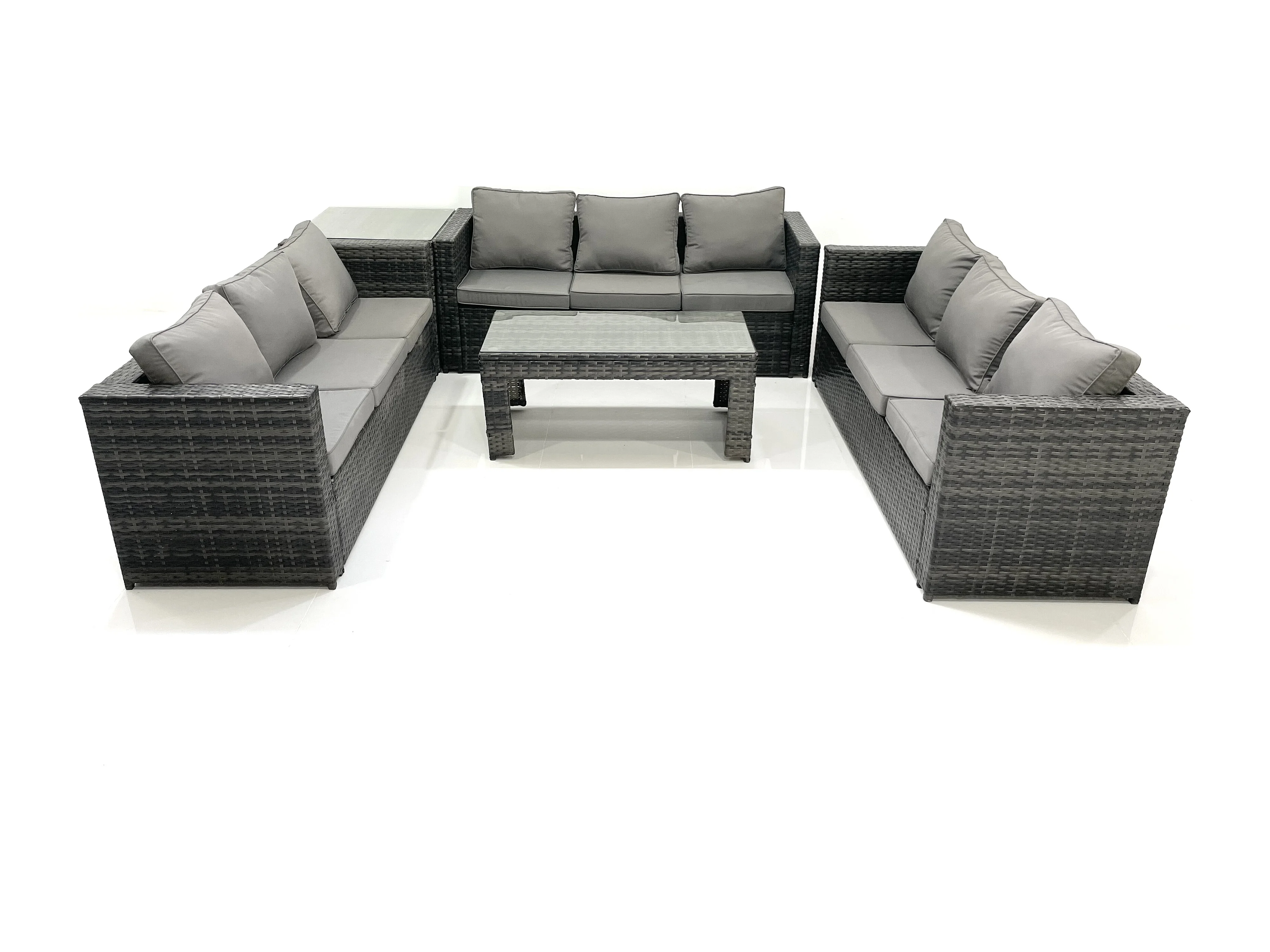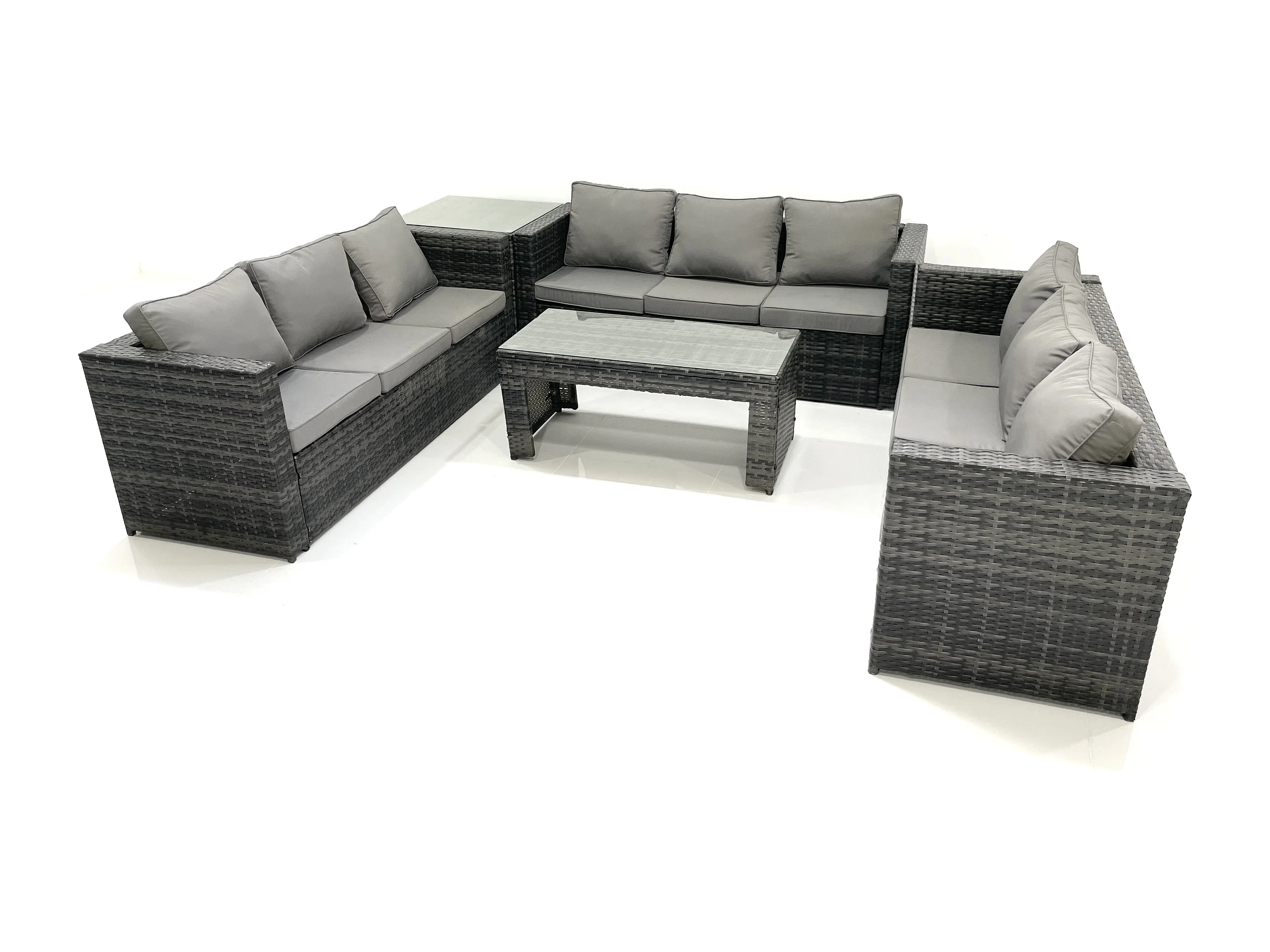 Gartenmöbel-Set 9-Sitzer Polyrattan Sofa Set mit Couchtisch Beistelltisch Dunkelgrau Gemischt