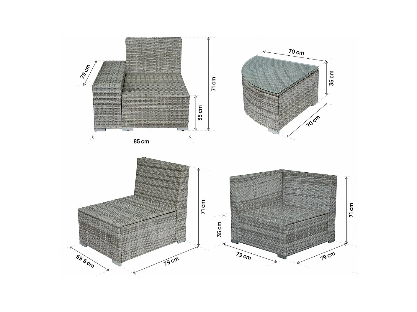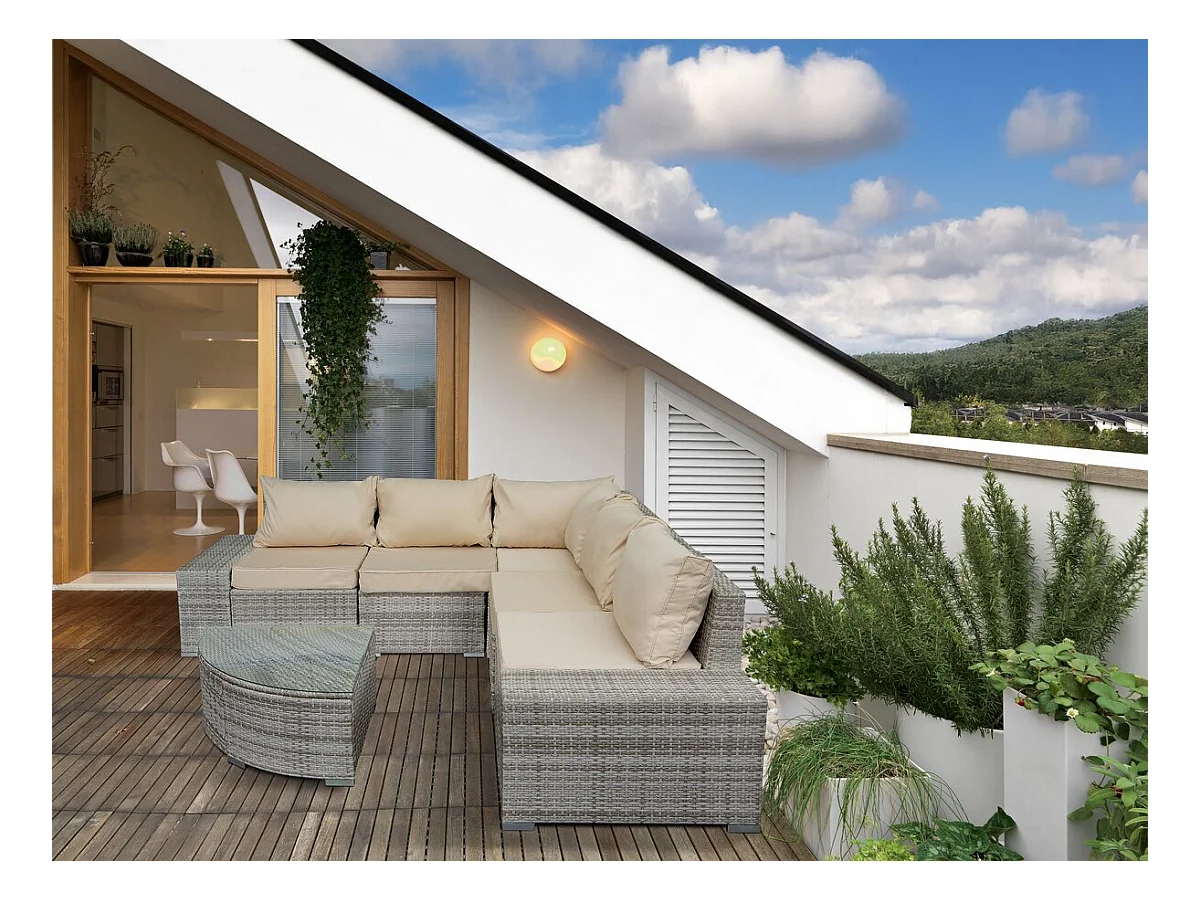 Gartenmöbel aus geflochtenem Kunststoff "Milo" – 5 Plätze – Grau