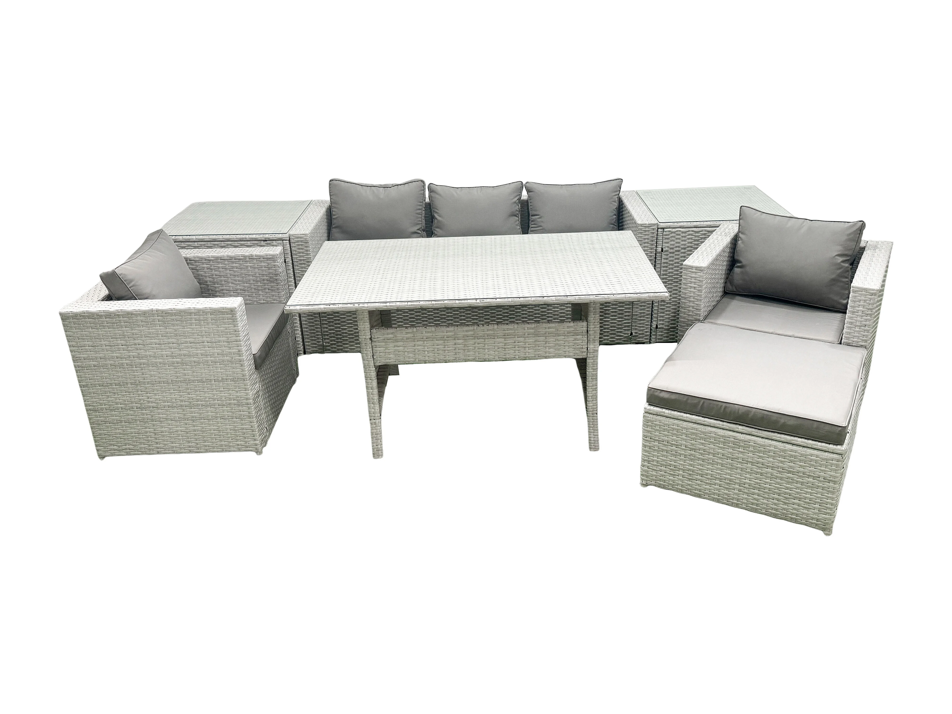 Gartenmöbel-Set aus Rattan mit Sofa Esstisch 2 Sesseln Großer Fußhocker 2 Beistelltischen Hellgrau gemischt