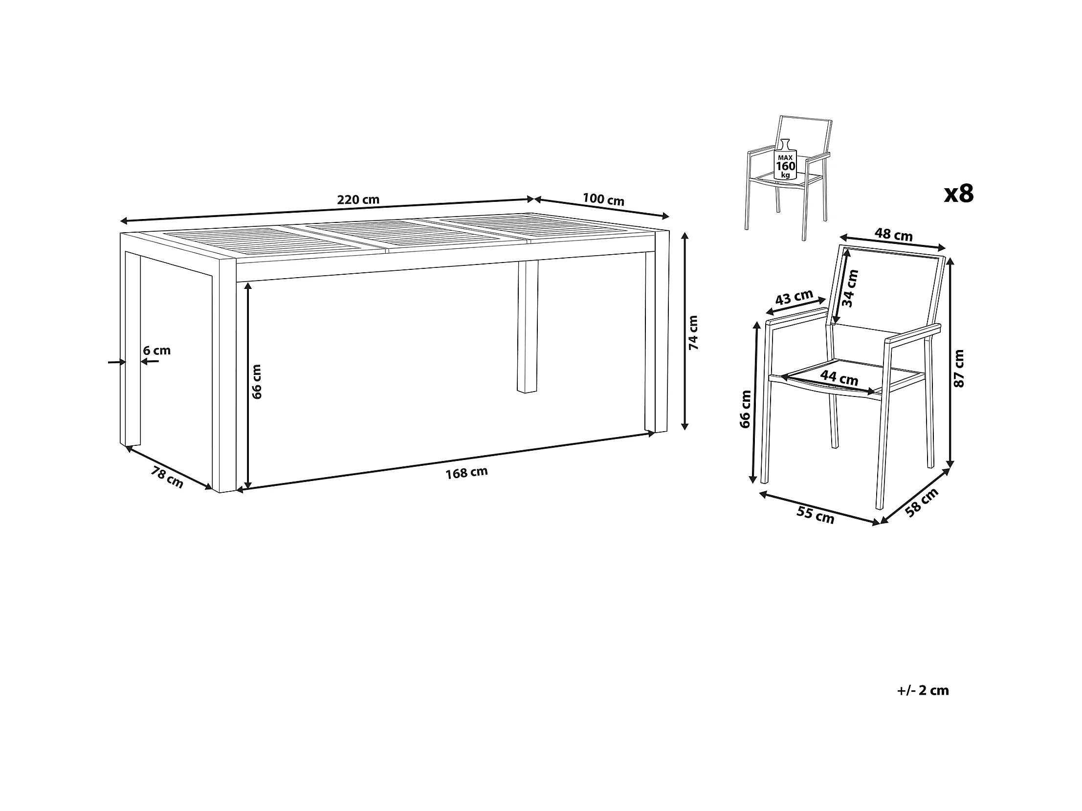 Modernes Gartenmöbel Set Tisch 220 cm Eukalyptusholz 8 Stühle in Weiß Grosseto