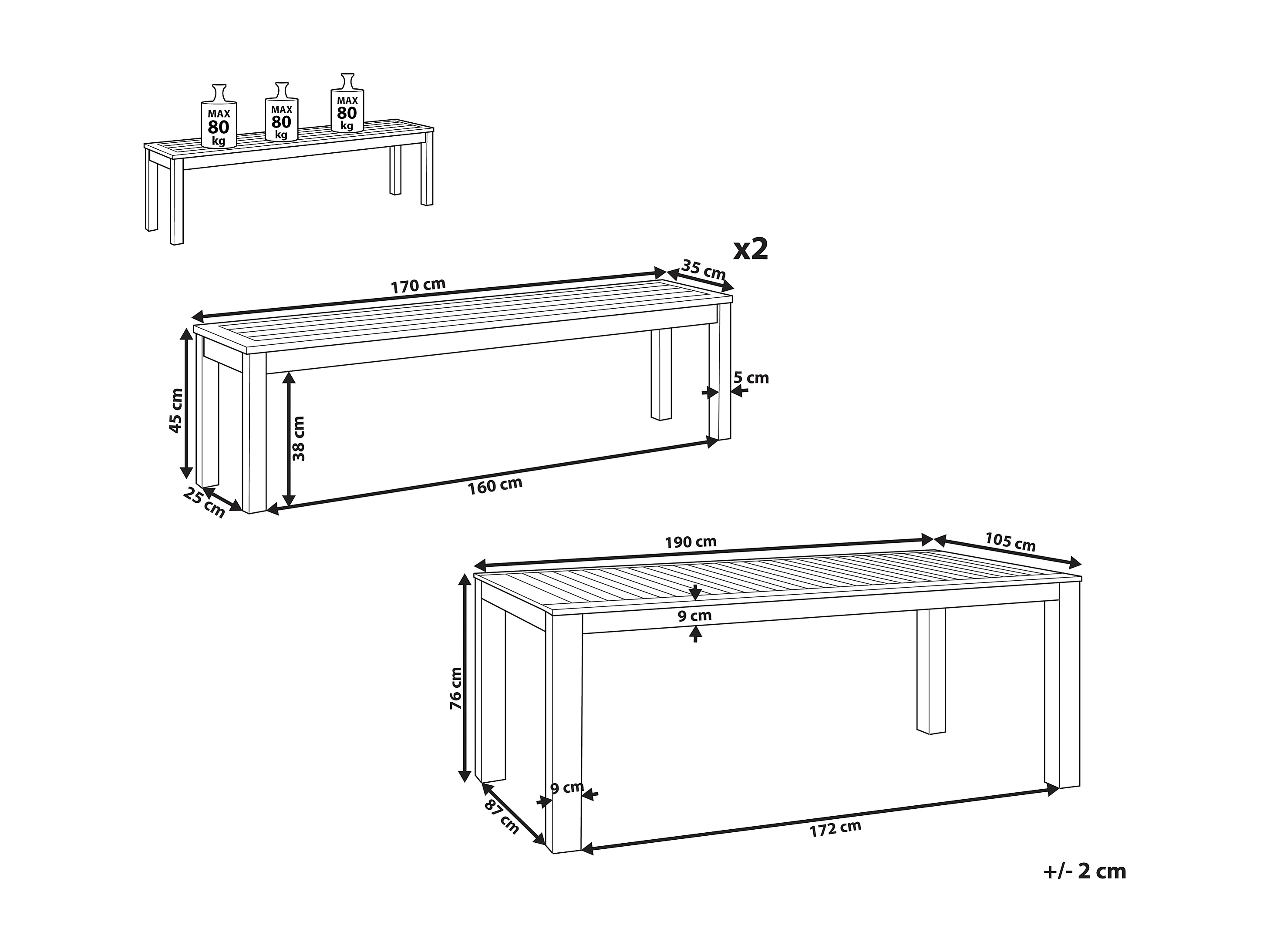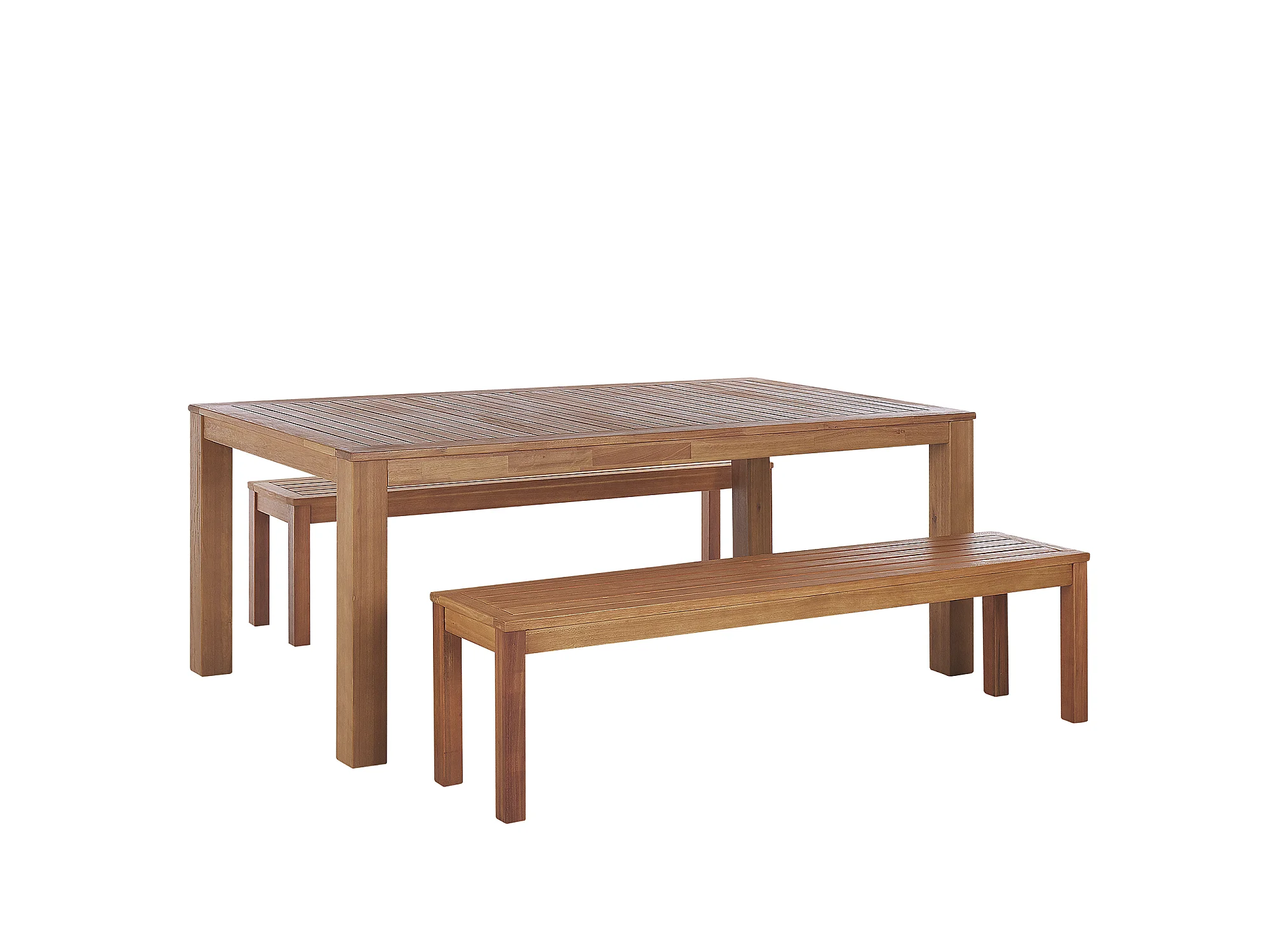 Gartenmöbel Set Eukalyptusholz hellbraun Esstisch 190 x 105 cm mit 2 Bänken Monsano
