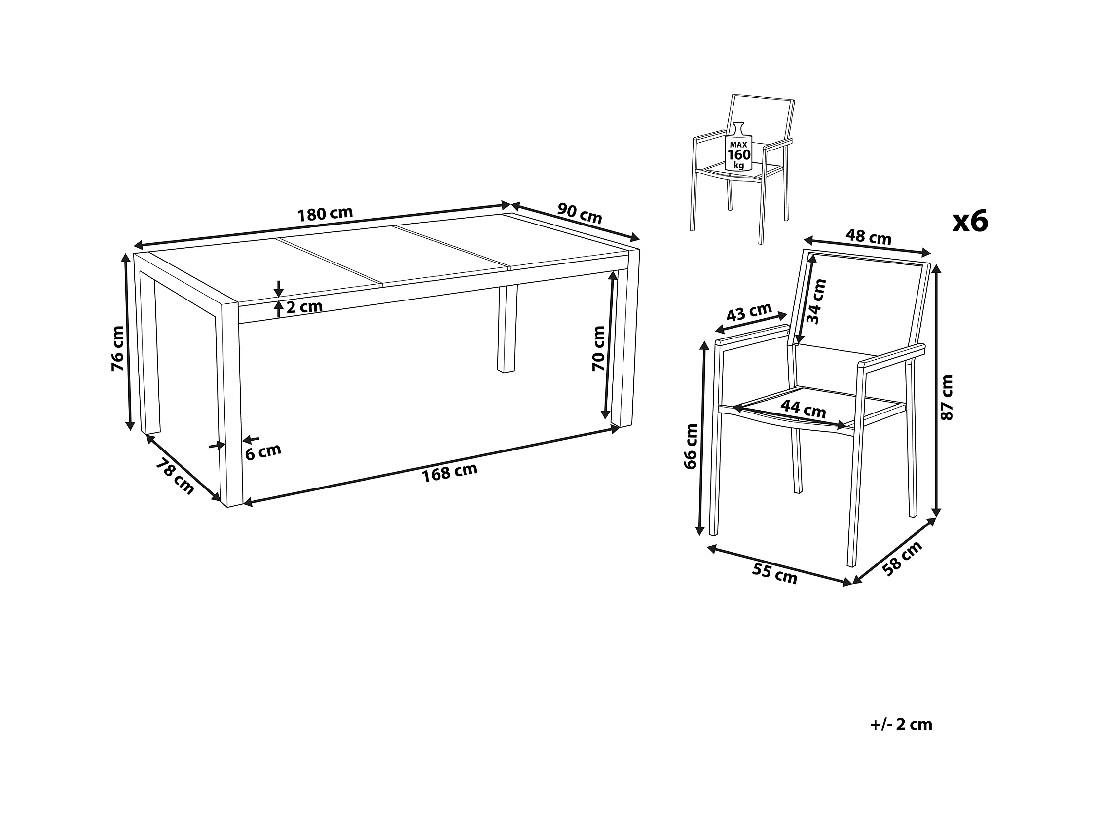 Gartenmöbel Set Tisch mit 3 Platten in Grau 6 Stühle in Weiß Grosseto