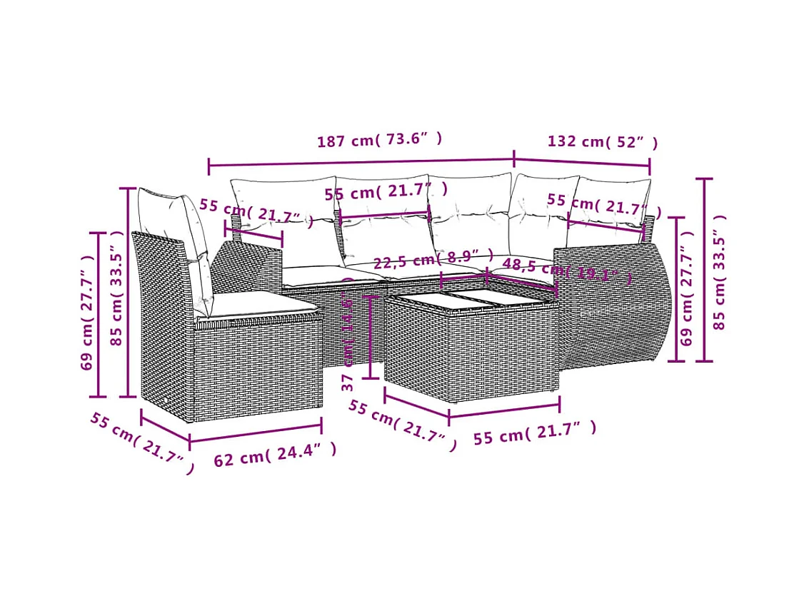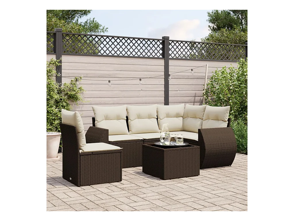 Gartenmöbel-Set mit Kissen 6-tlg. braun gewebtes Harz