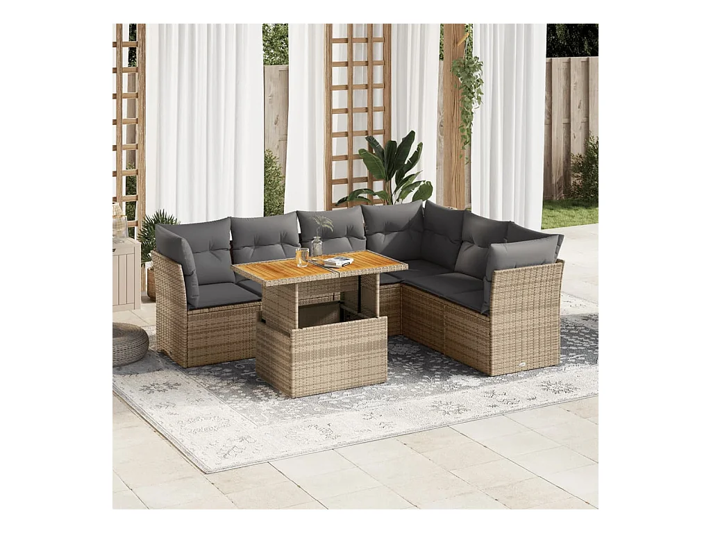 Gartenmöbel-Set mit Kissen 7-tlg. beige gewebtes Harz