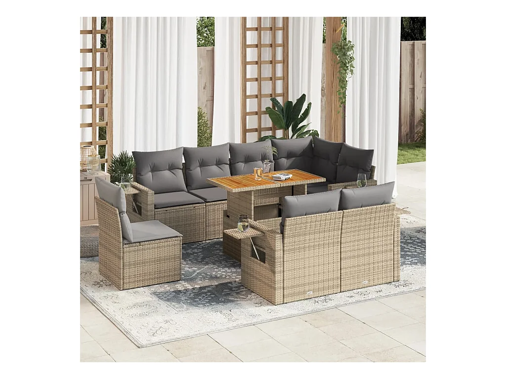 Gartenmöbel-Set mit Kissen 9-tlg. beige gewebtes Harz