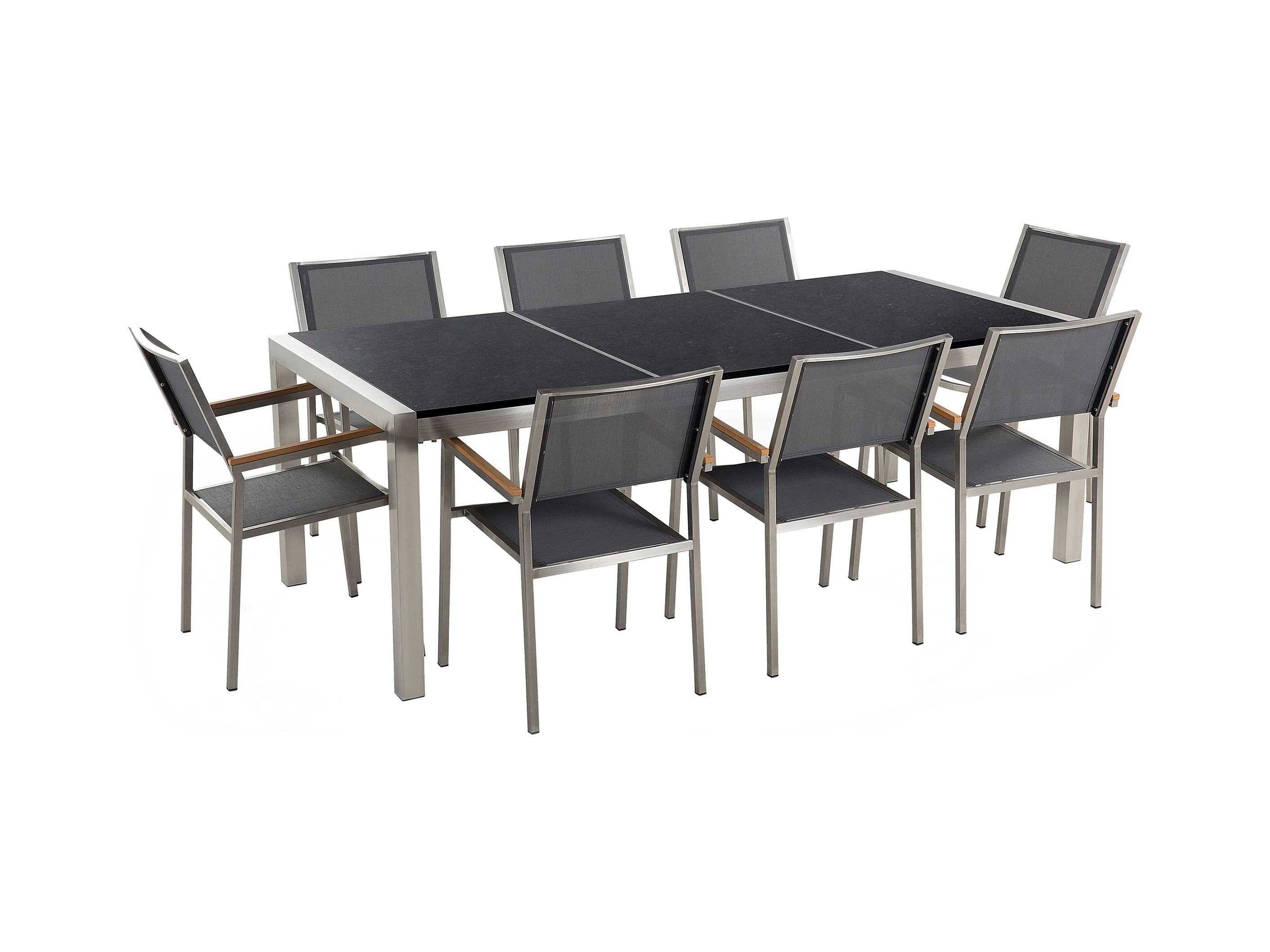 Gartenmöbel Set 8-Sitzer GROSSETO Dreifachplatte Granit Polierter Schwarz / Grau