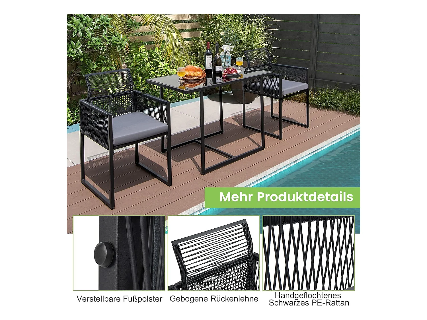 Gartenmöbel-Set Rattan (3er Set)
