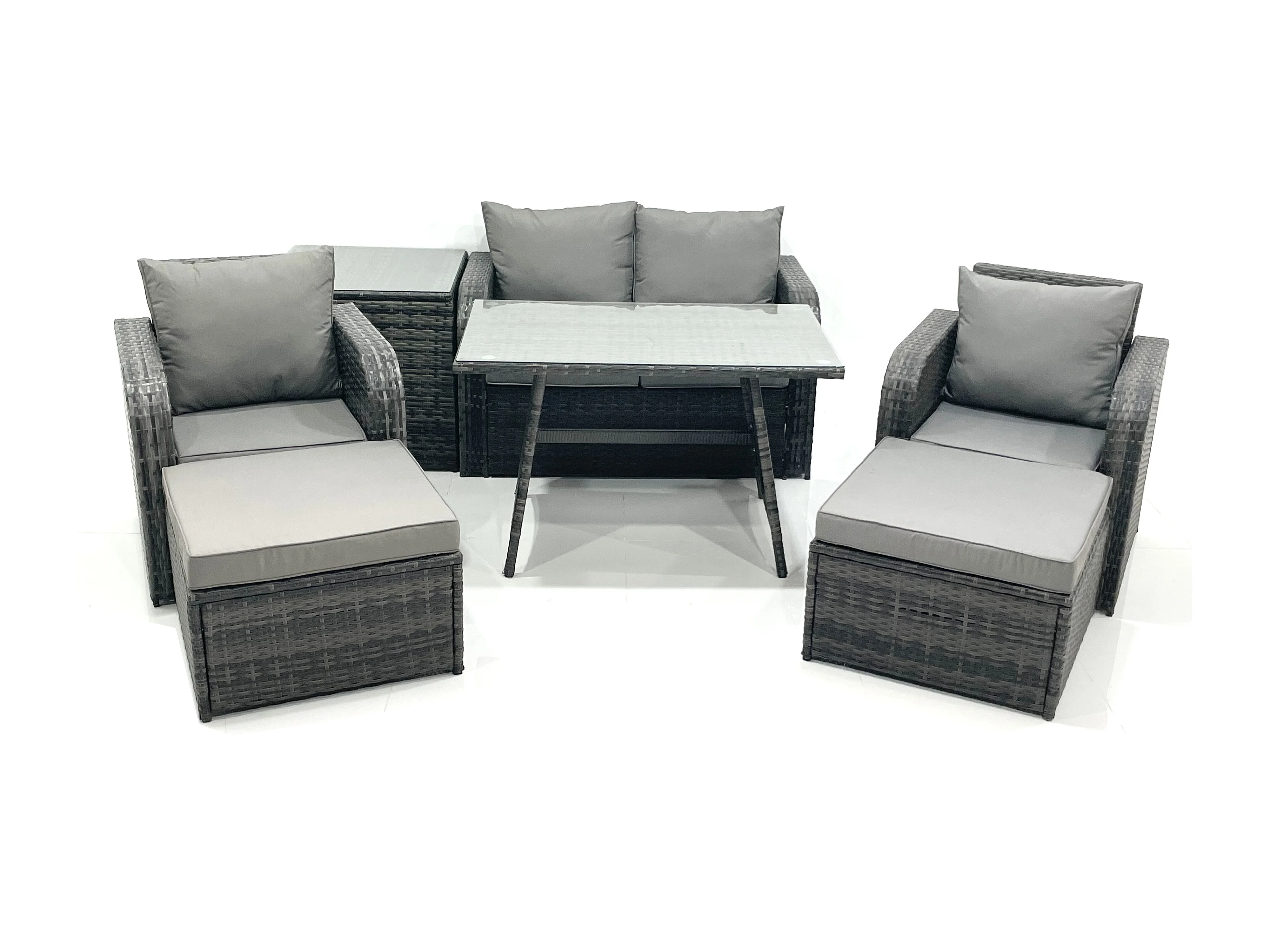 Gartenmöbel-Set Rattan Sofa Esstisch Set mit Liegestühle 2 hohen Hockern Beistelltisch Dunkelgrau Gemischt