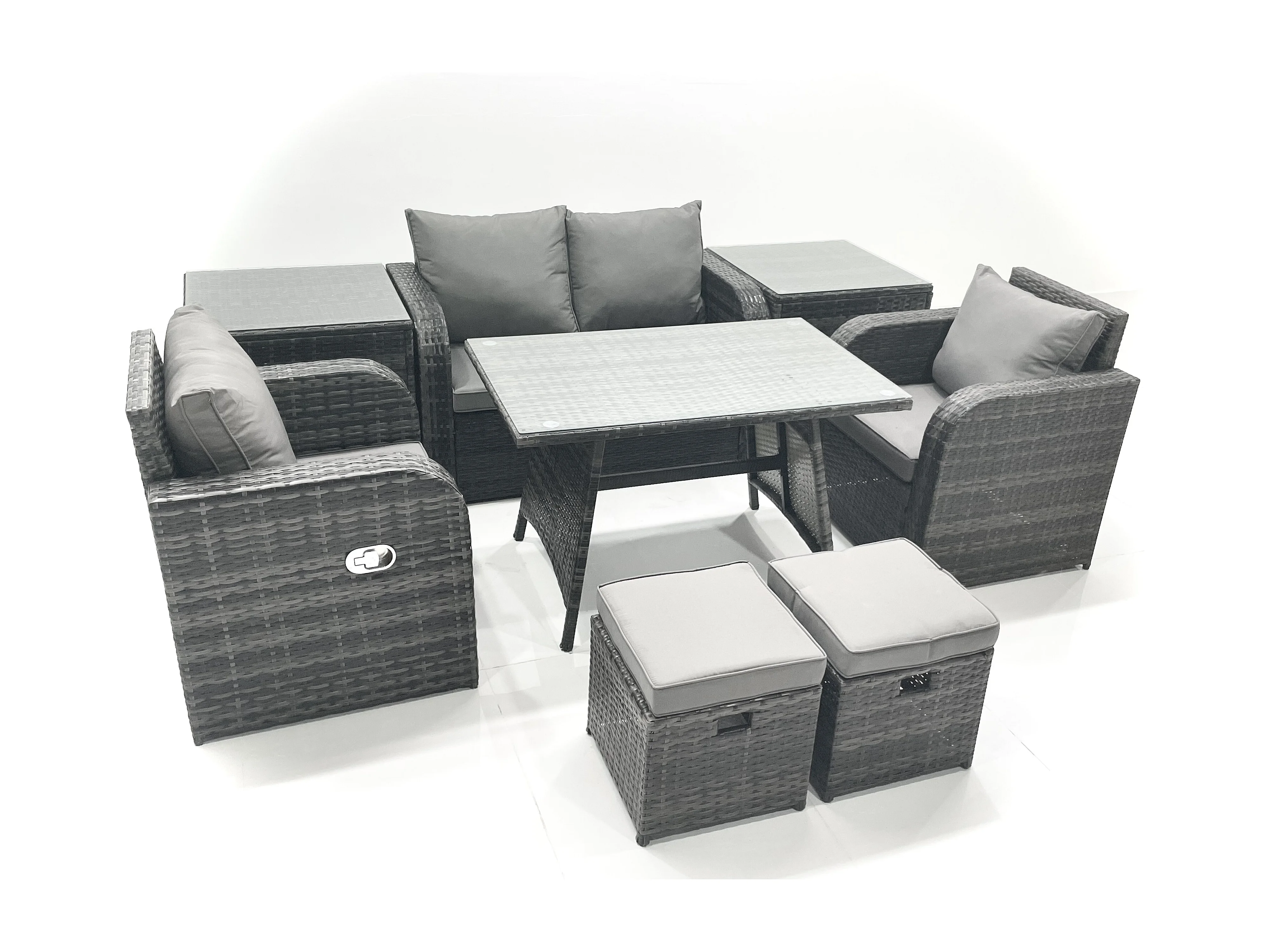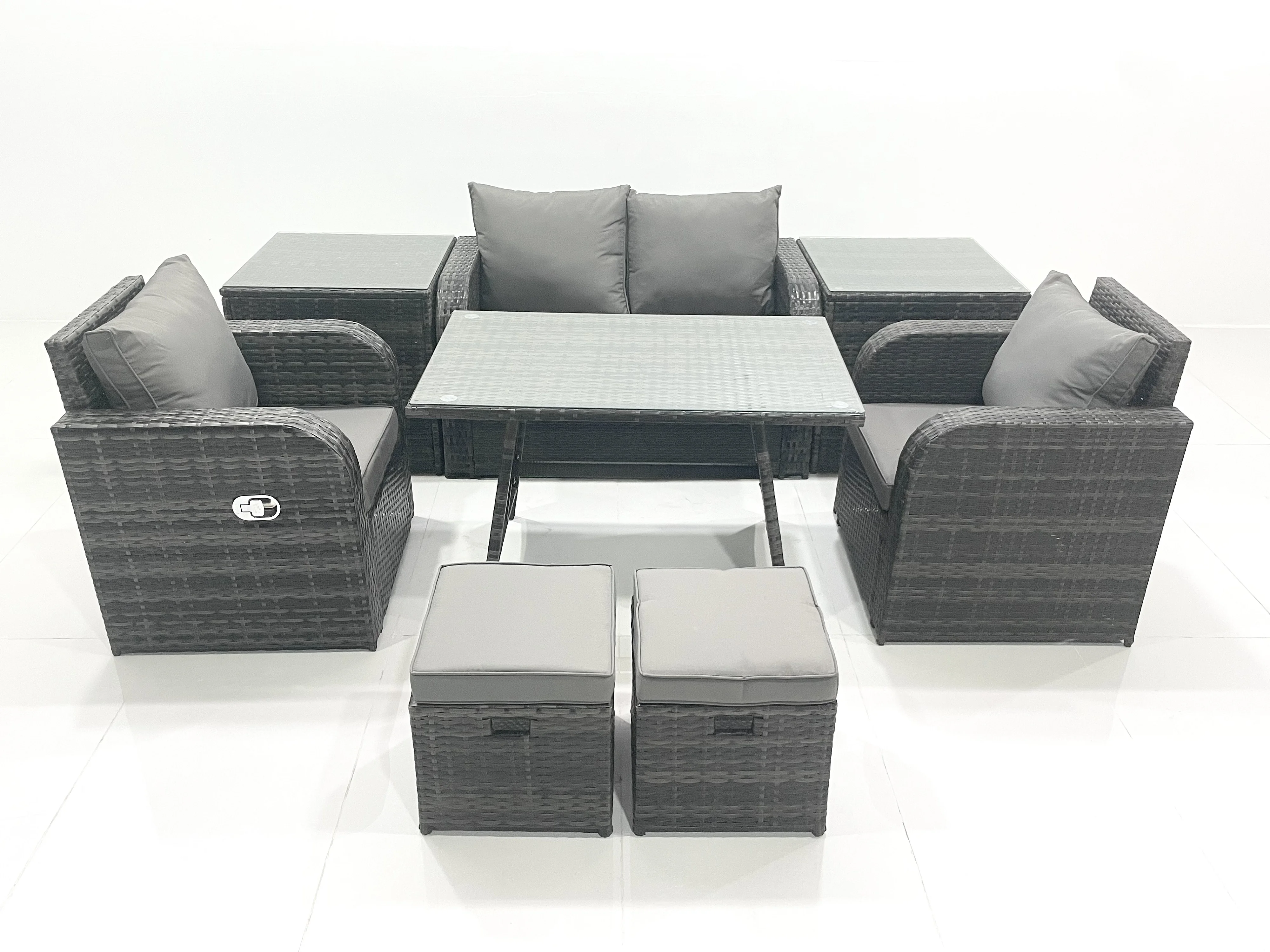 Gartenmöbel-Set Rattan Sofa Esstisch Set mit Liegestühle 2 kleinen Hockern 2 Beistelltisch Dunkelgrau Gemischt