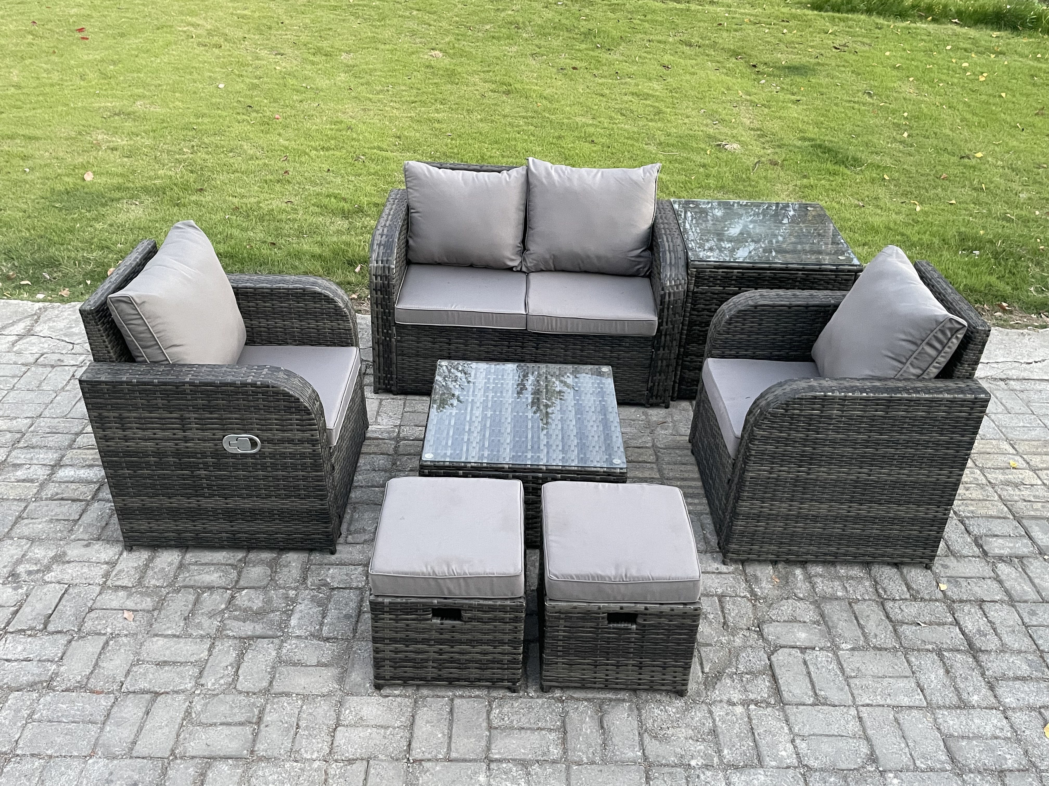 Gartenmöbel Set Sitzgruppe Terrasse Polyrattan 6-Sitzer Dunkelgrau