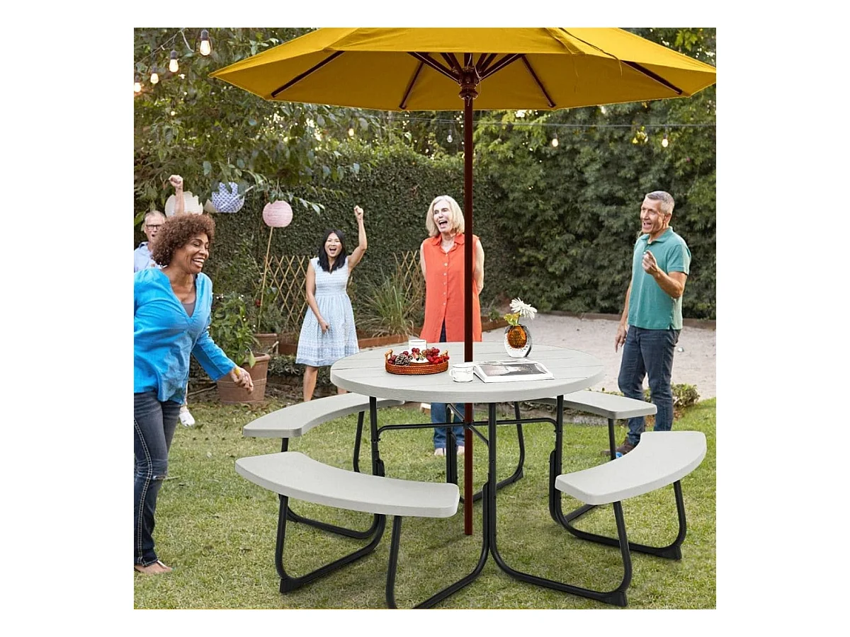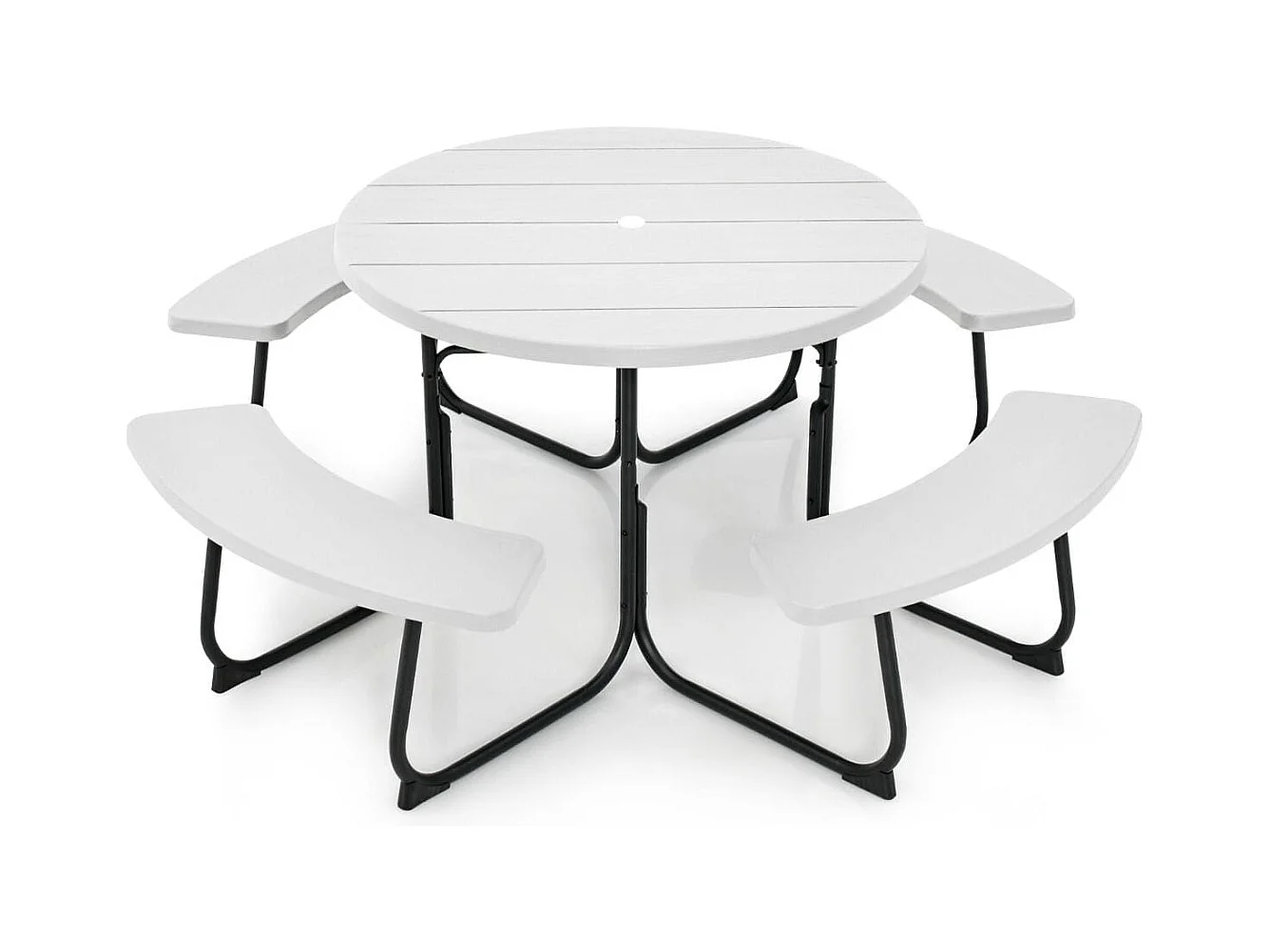 Sitzgarnitur für 8 Personen Picknicktisch mit Schirmloch & 4 Bänken 190 x 76 cm Weiß