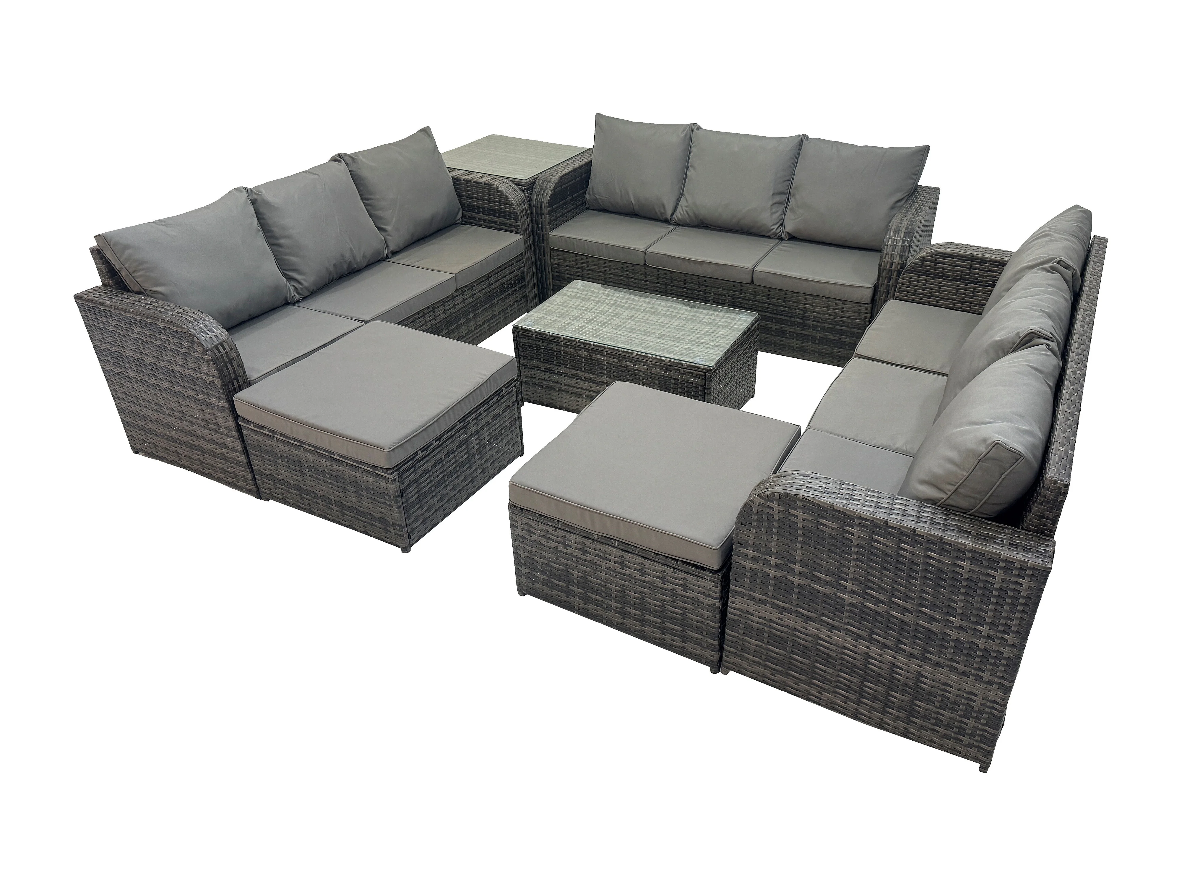 Gartenmöbel-Sets 11-Sitzer Polyrattan Möbel Sofa Sets mit Rechteckiger Couchtisch 3-Sitzer Sofa Beistelltisch 2 hohen Hockern Dunkelgrau Gemischt