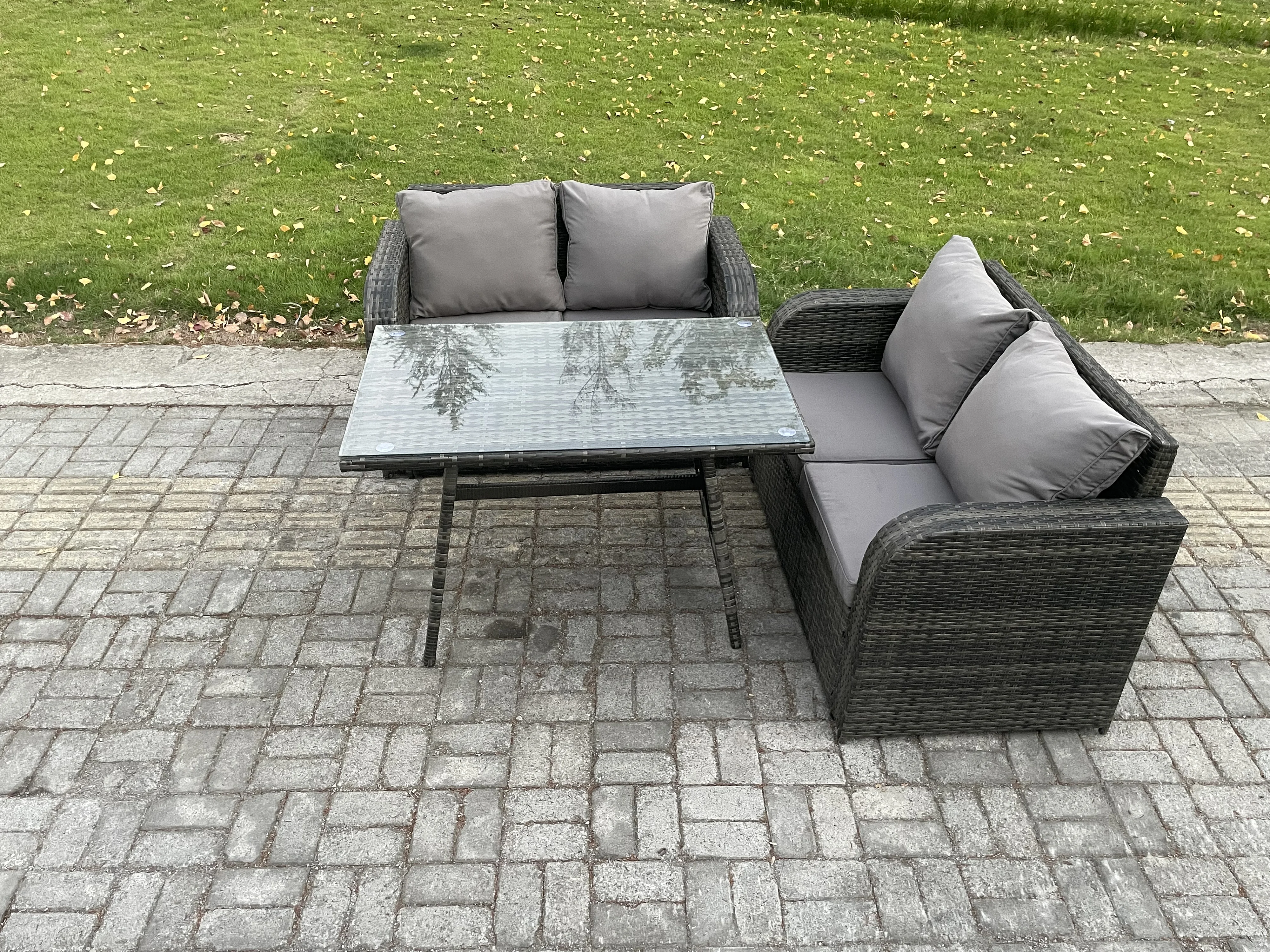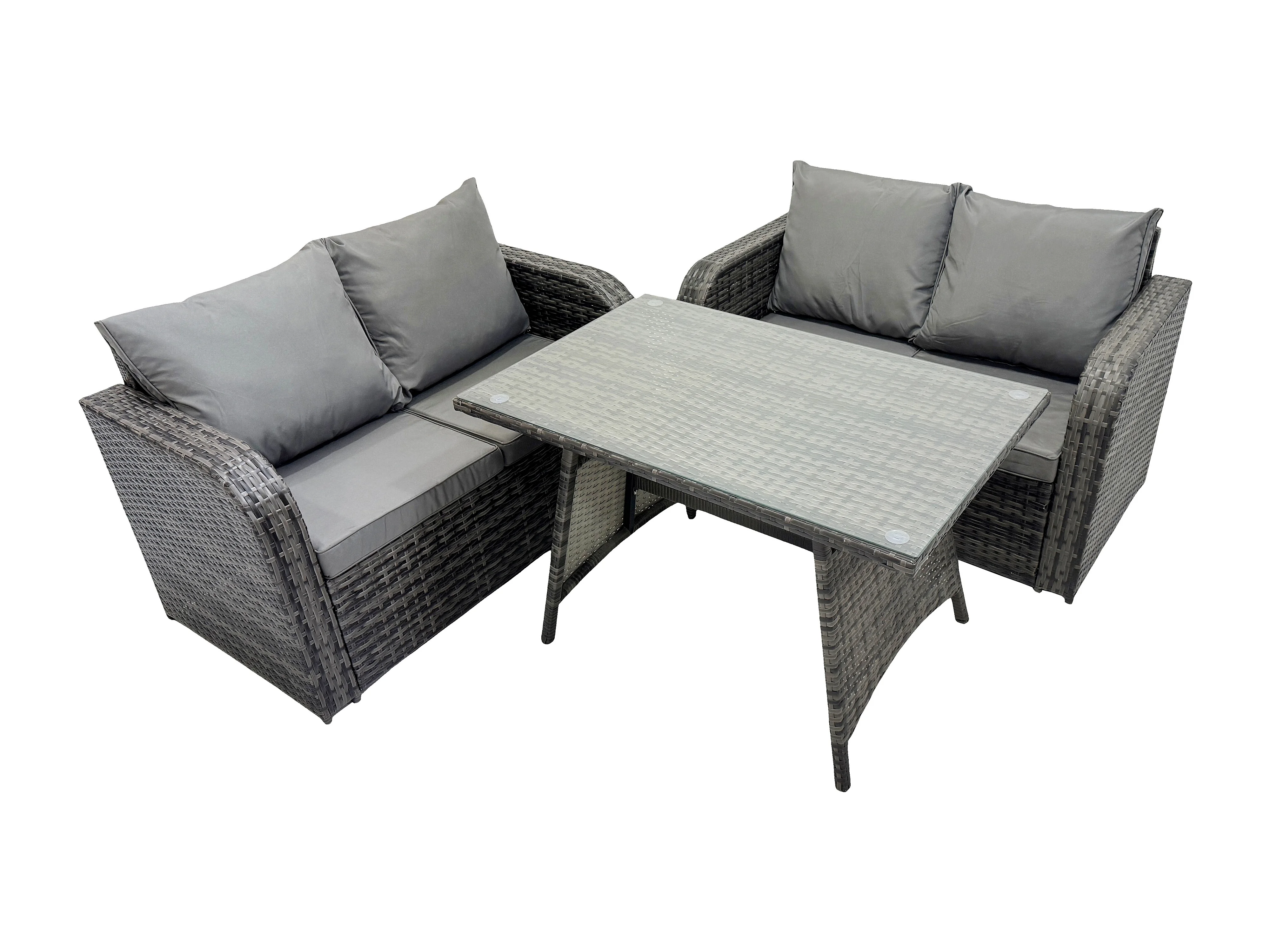 Gartenmöbel-Sets 3 Stücke Polyrattan Möbel Sofa Sets mit Rechteckiger Esstisch Love Sofa