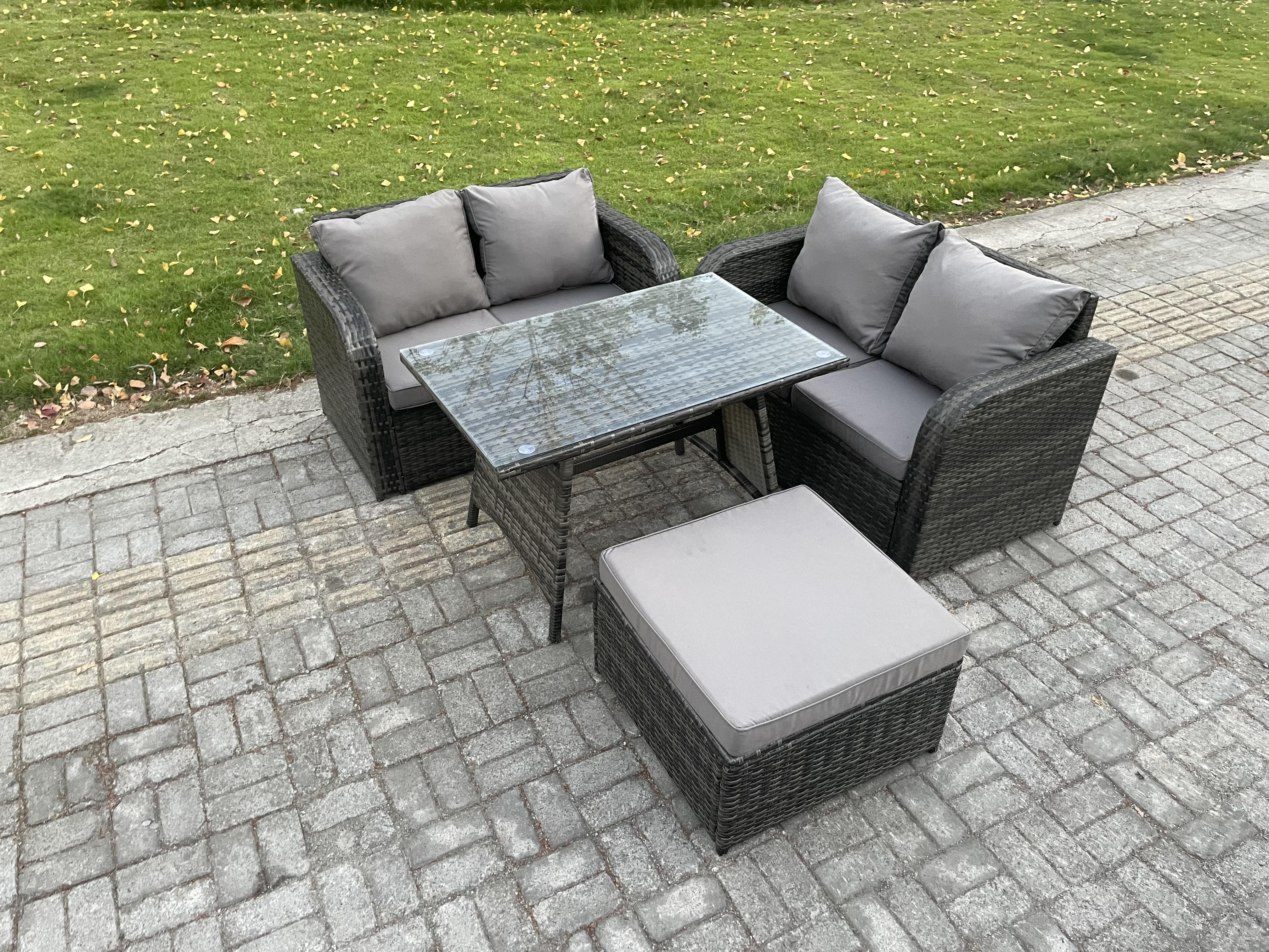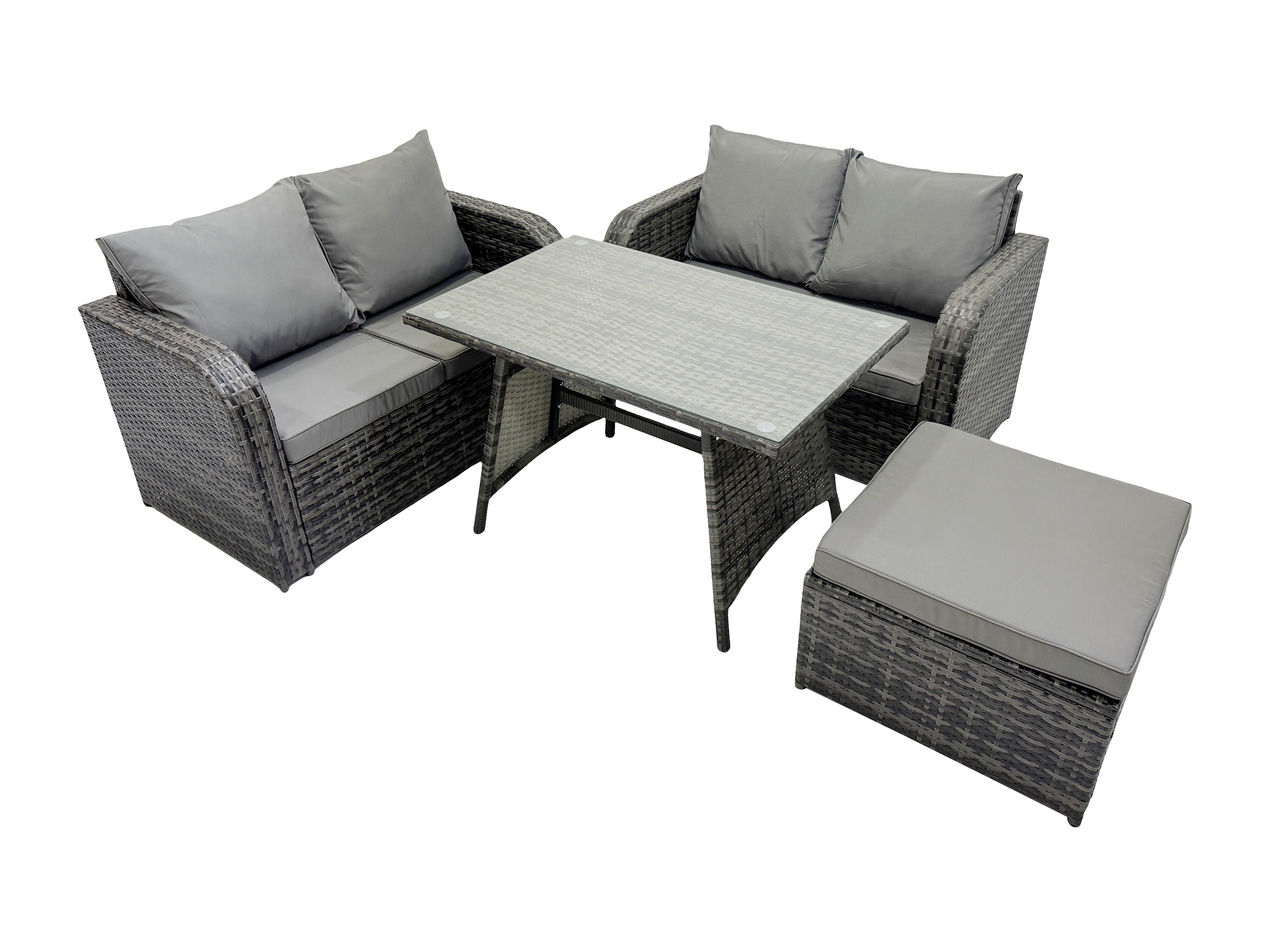 Gartenmöbel-Sets 4 Stücke Polyrattan Möbel Sofa Sets mit Rechteckiger Esstisch Love Sofa 2 Großer Hockern