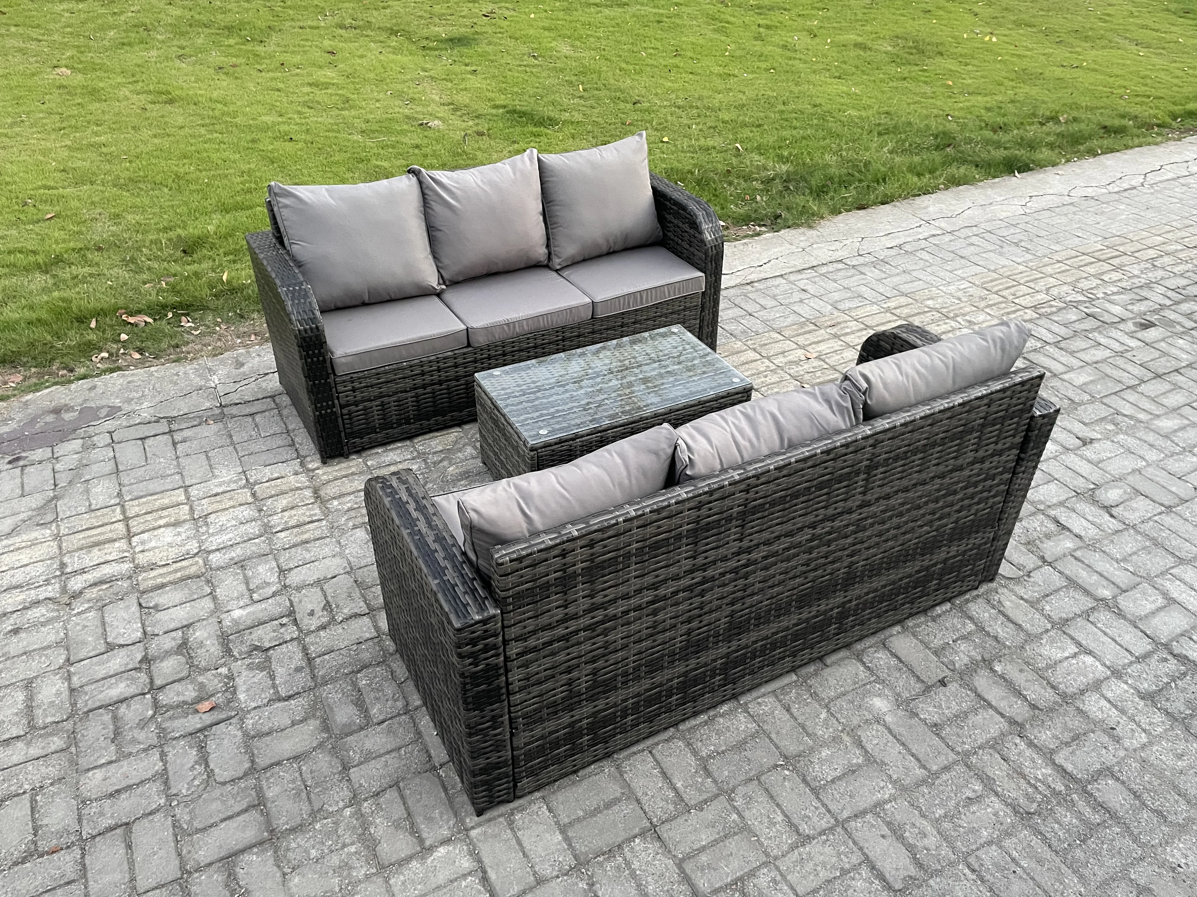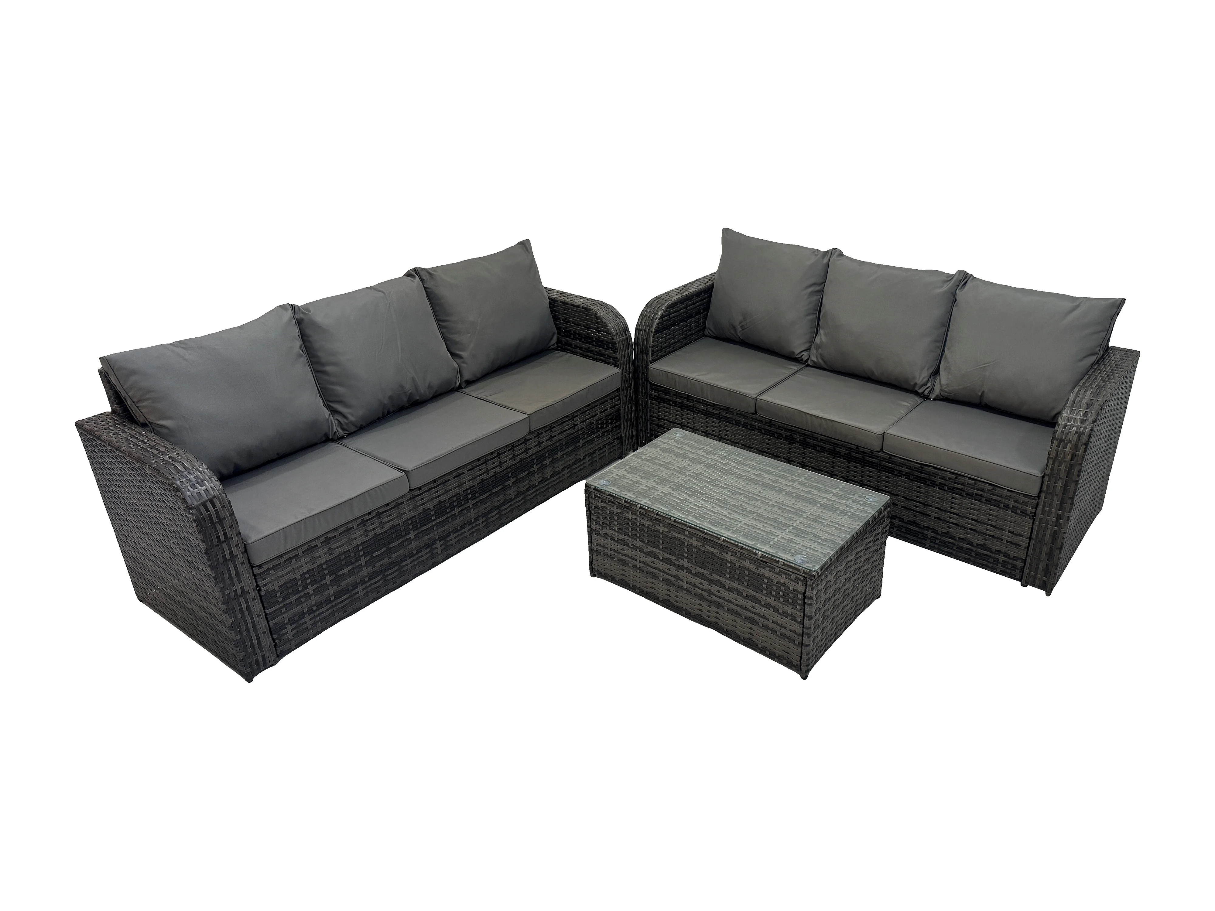 Gartenmöbel-Sets 6-Sitzer Polyrattan Möbel Sofa Sets mit Rechteckiger Couchtisch 3-Sitzer Sofa