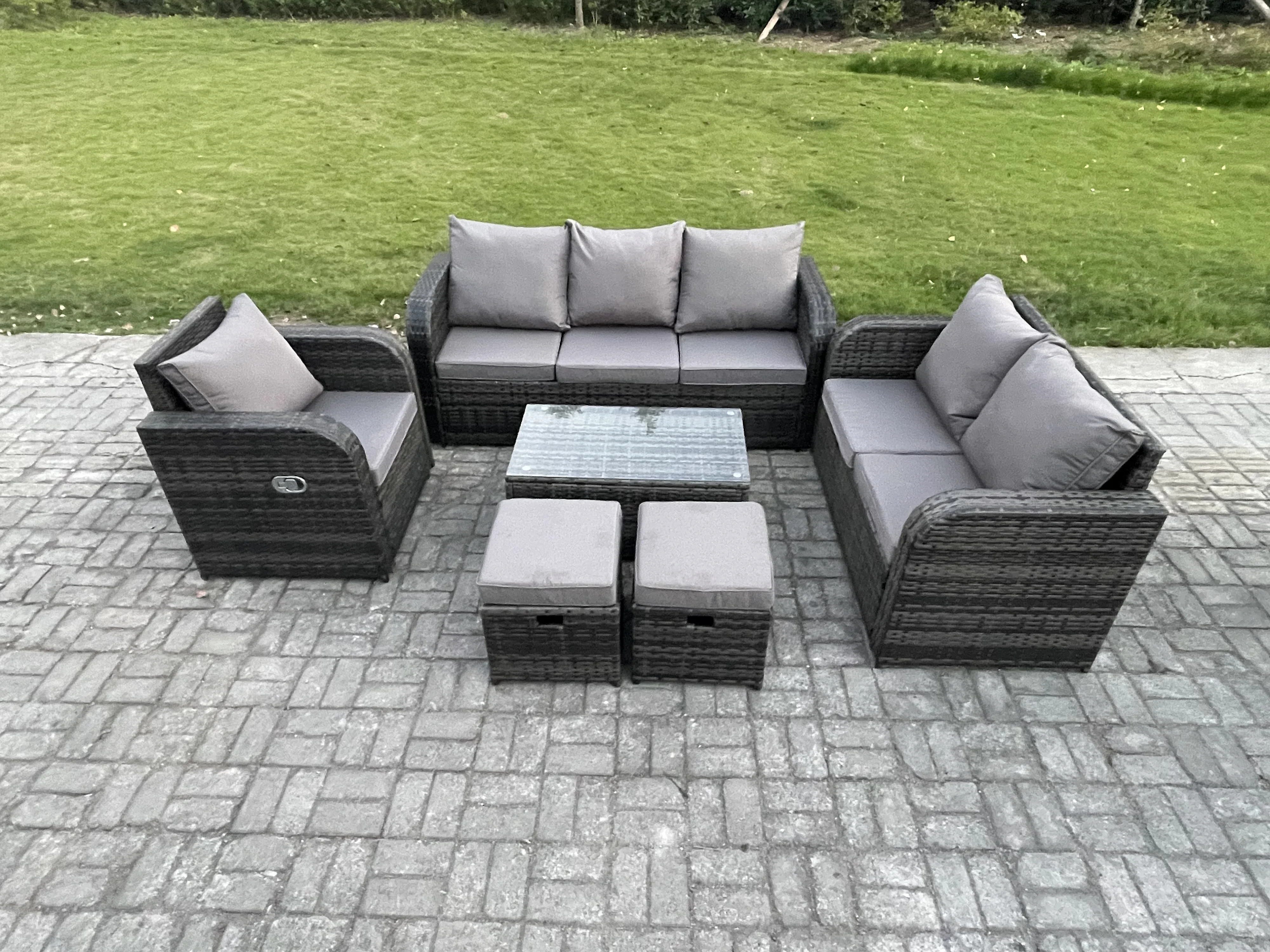 Gartenmöbel-Sets 6 Stücke Polyrattan Möbel Sofa Set mit Rechteckiger Couchtisch Loveseat Sofa 2 kleine Fußhockern