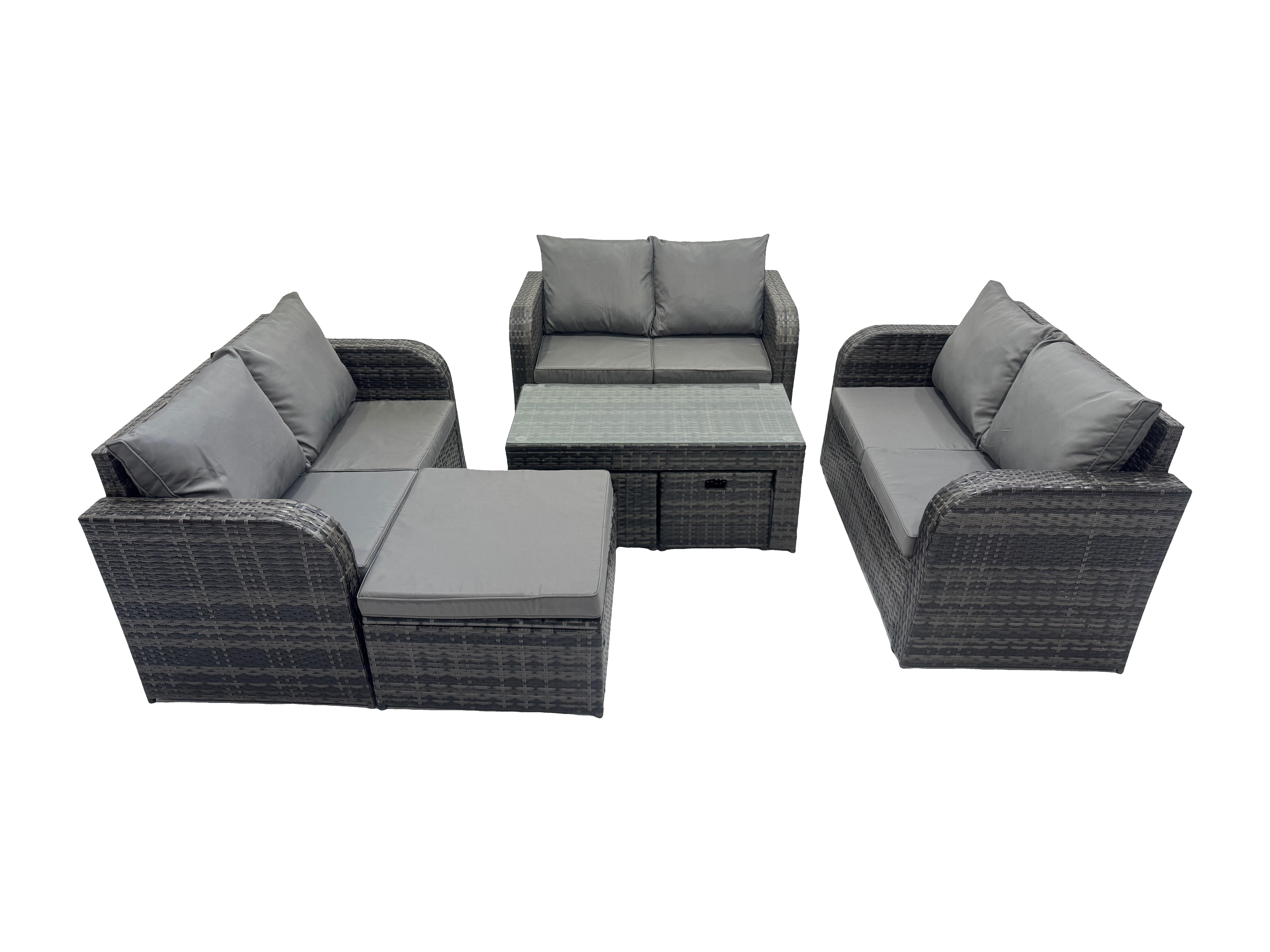 Gartenmöbel-Sets 7 Stücke Polyrattan Möbel Sofa Sets mit Rechteckiger Couchtisch Loveseat Sofa 3 Hockern