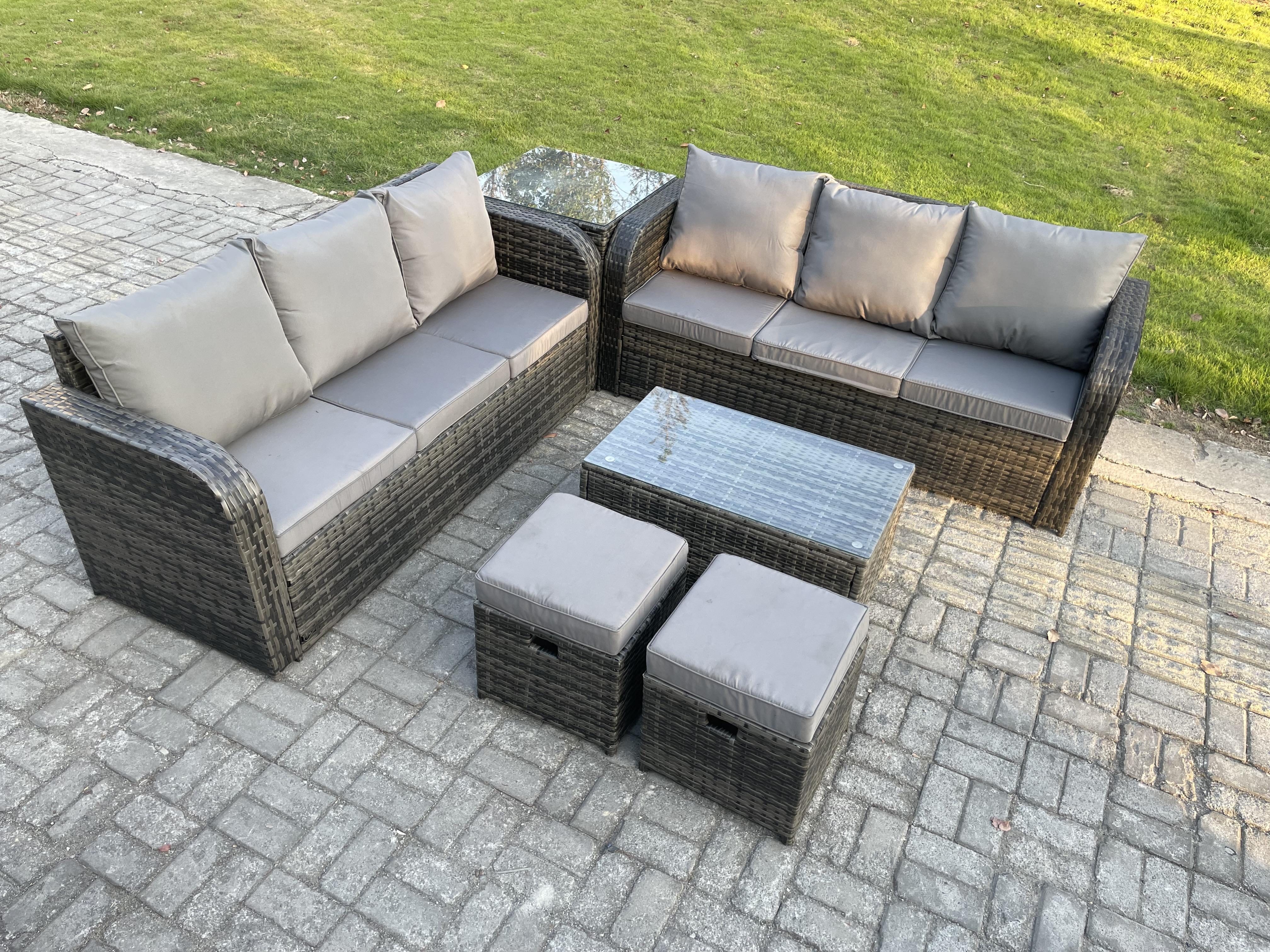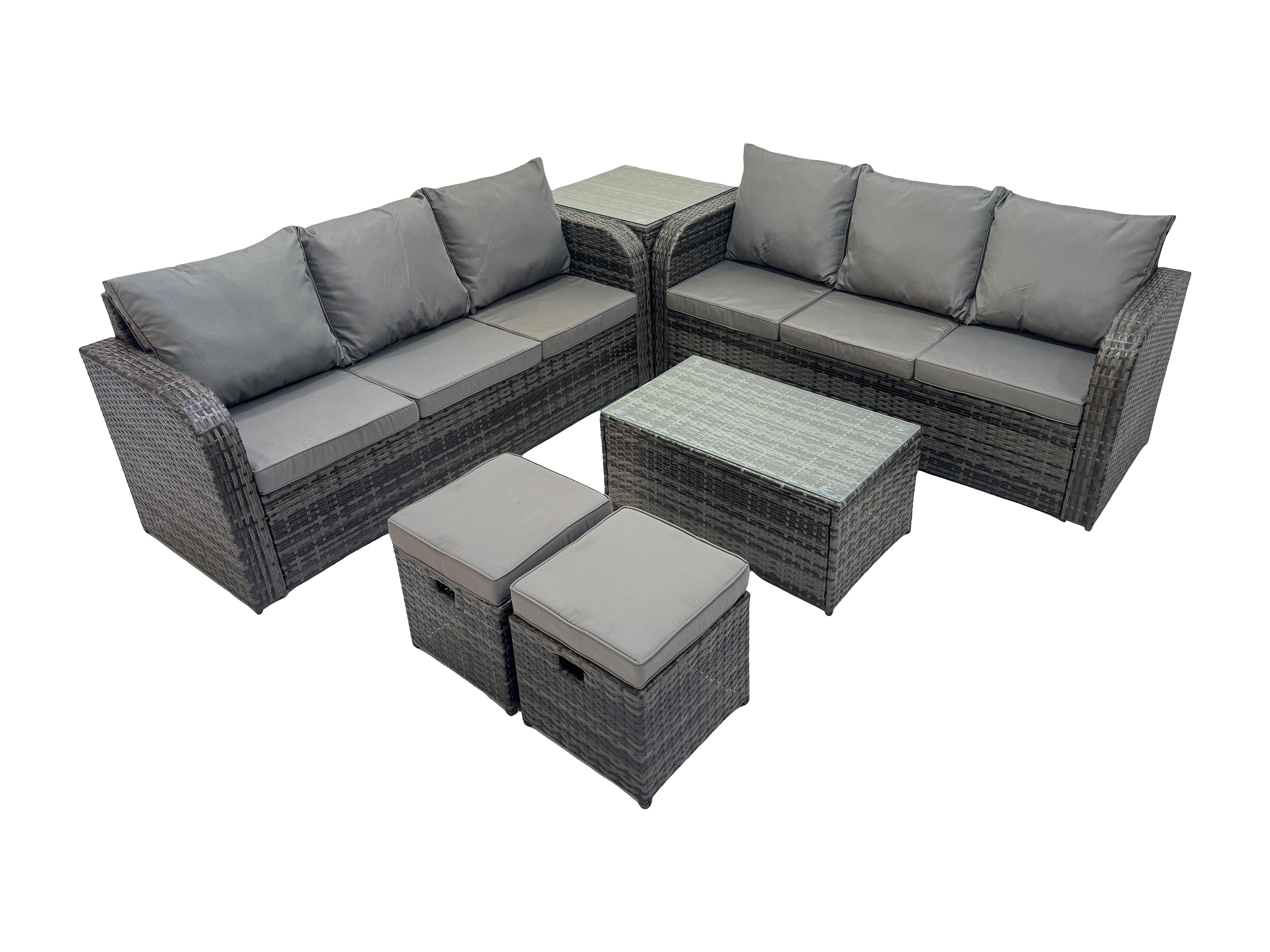 Gartenmöbel-Sets 8-Sitzer Polyrattan Möbel Sofa Sets mit Rechteckiger Couchtisch 3-Sitzer Sofa Beistelltisch 2 kleine Fußhockern Dunkelgrau Gemischt