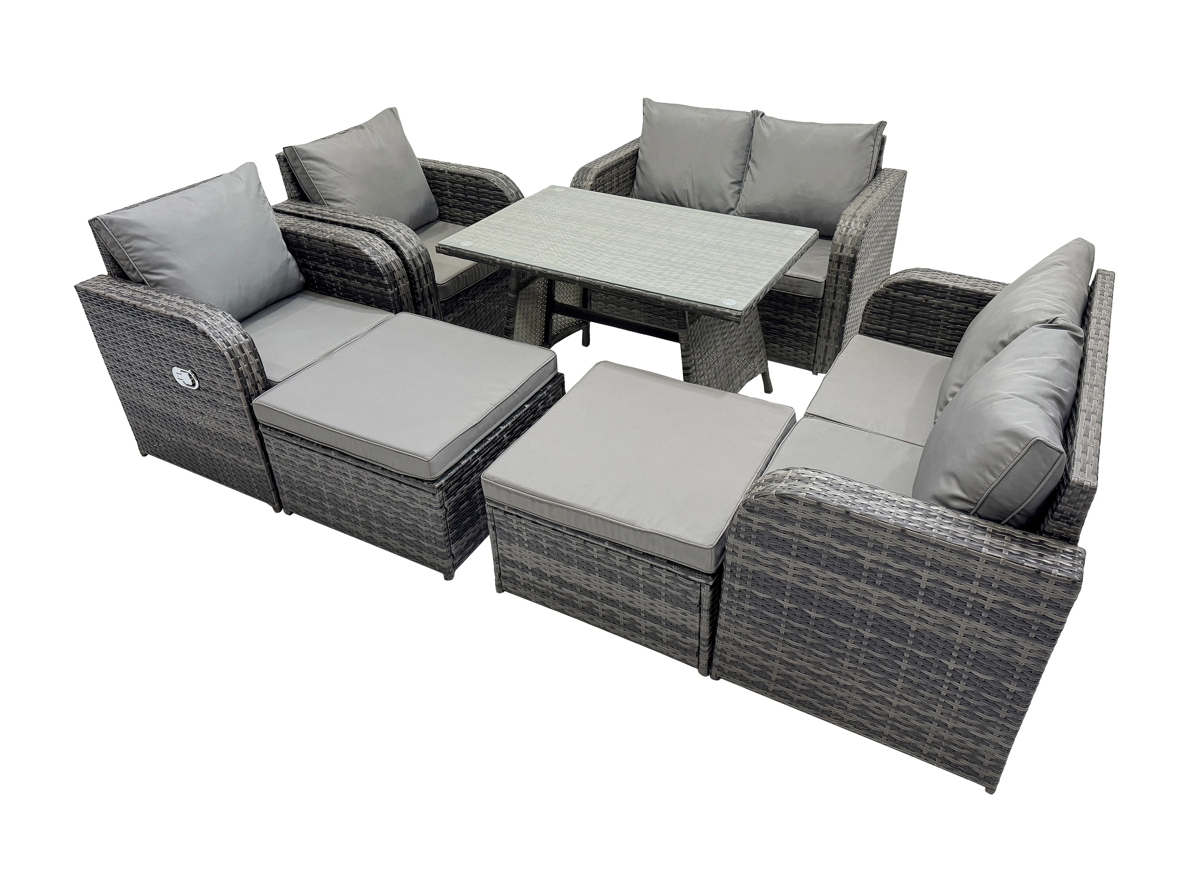 Gartenmöbel-Sets 8-Sitzer Rattan Gartenmöbel im Freien Sofa Set mit 2 hohen Hockern Dunkelgrau Gemischt