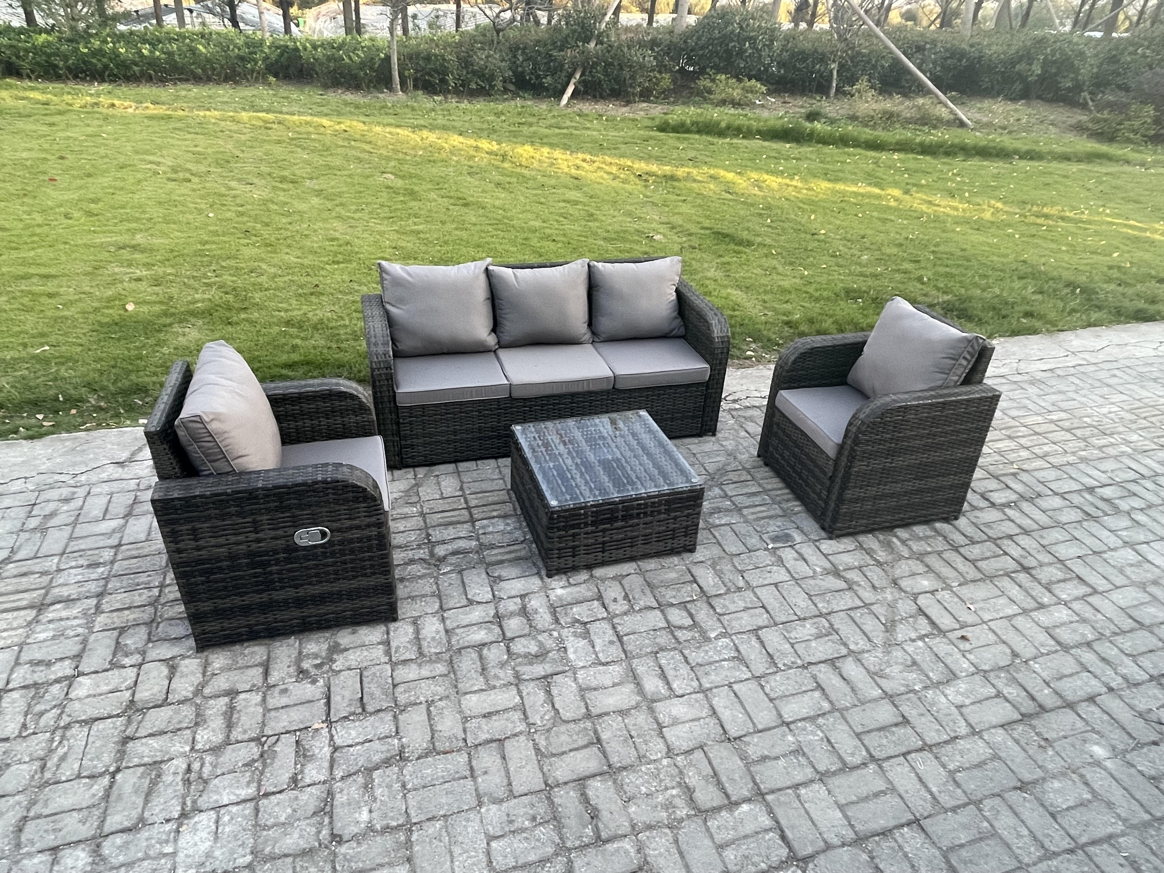 Gartenmöbelset 5-Sitzer Rattan Sofa Set mit Liegestühle 3-Sitzer Sofa Dunkelgrau Gemischt