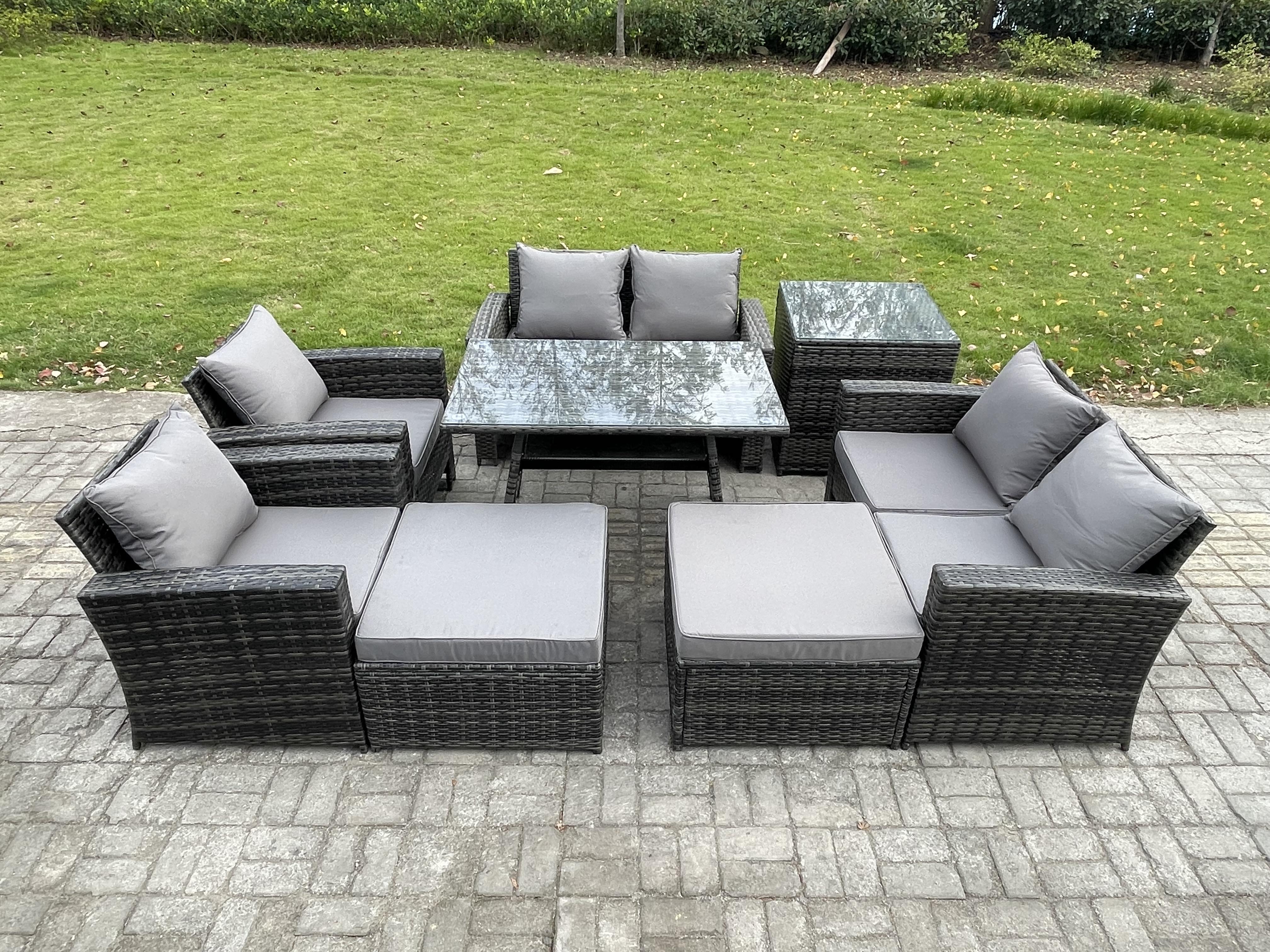 Gartenmöbelset 8 Stücke Polyrattan Garten Sofa im Freien mit 2 hohen Hockern Beistelltisch Dunkelgrau Gemischt