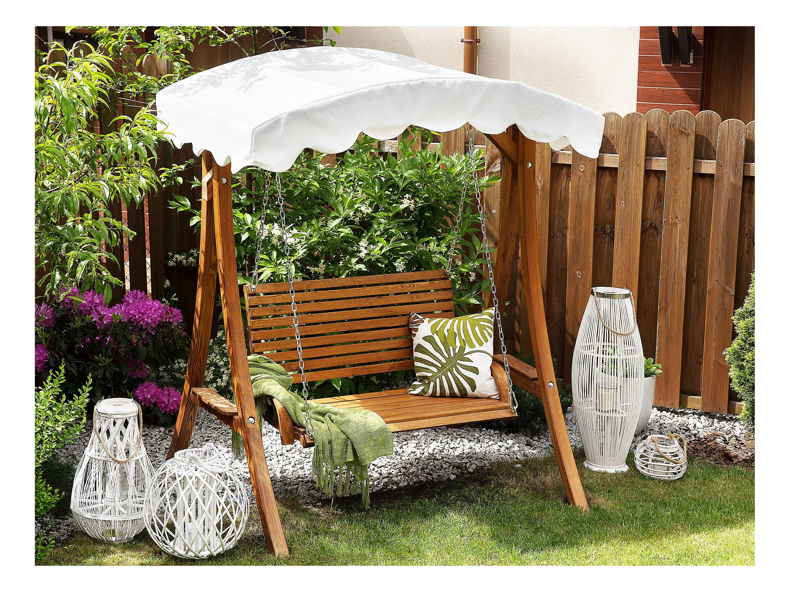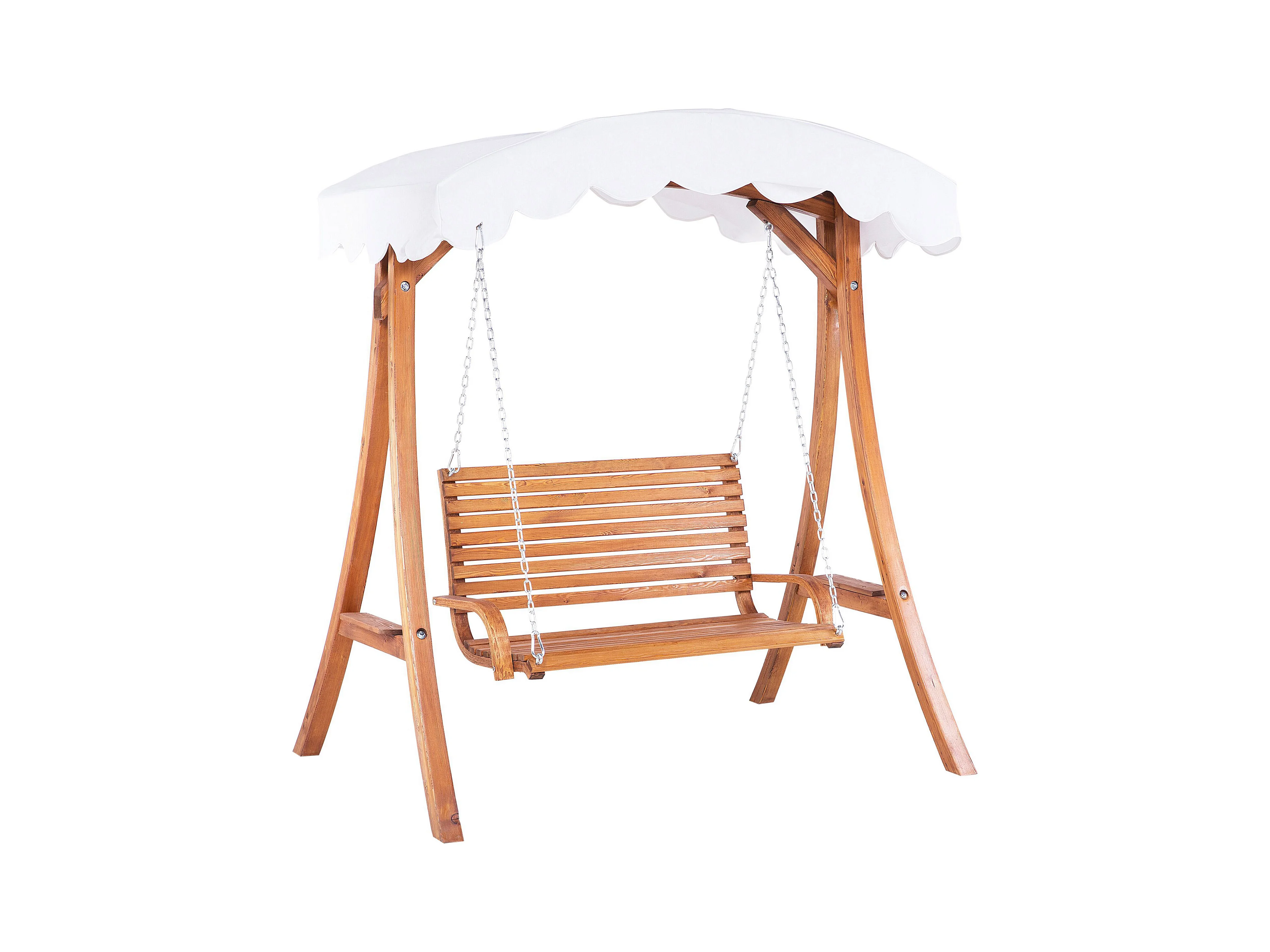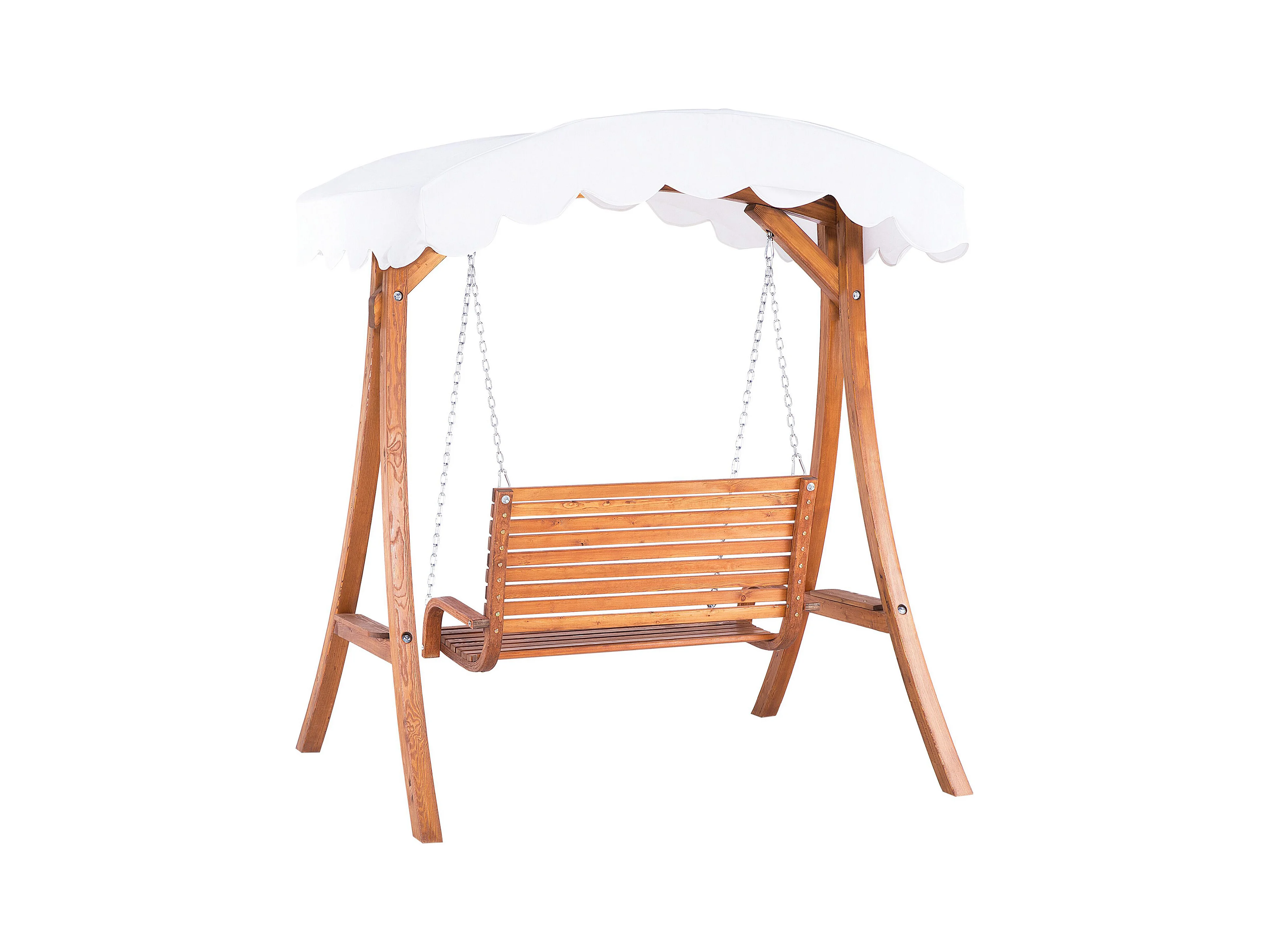 Gartenschaukel Lärchenholz dunkelbraun Sonnendach beige für 2 Personen Andria