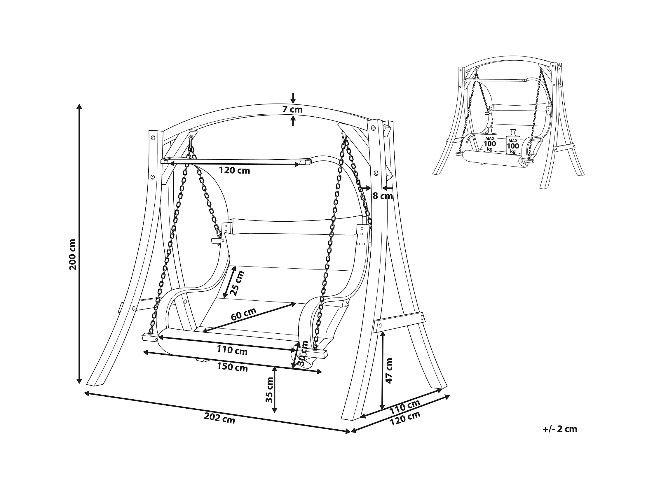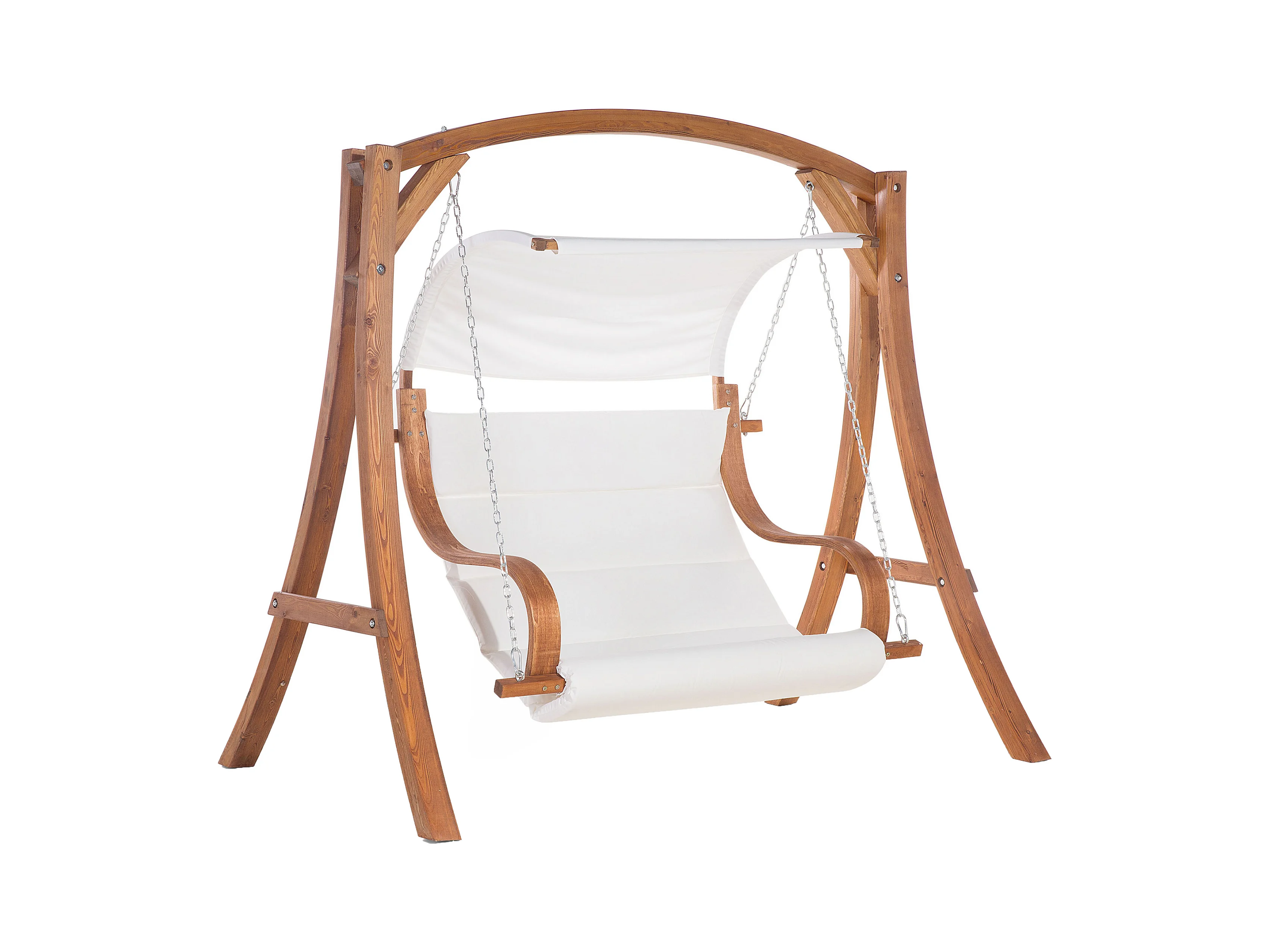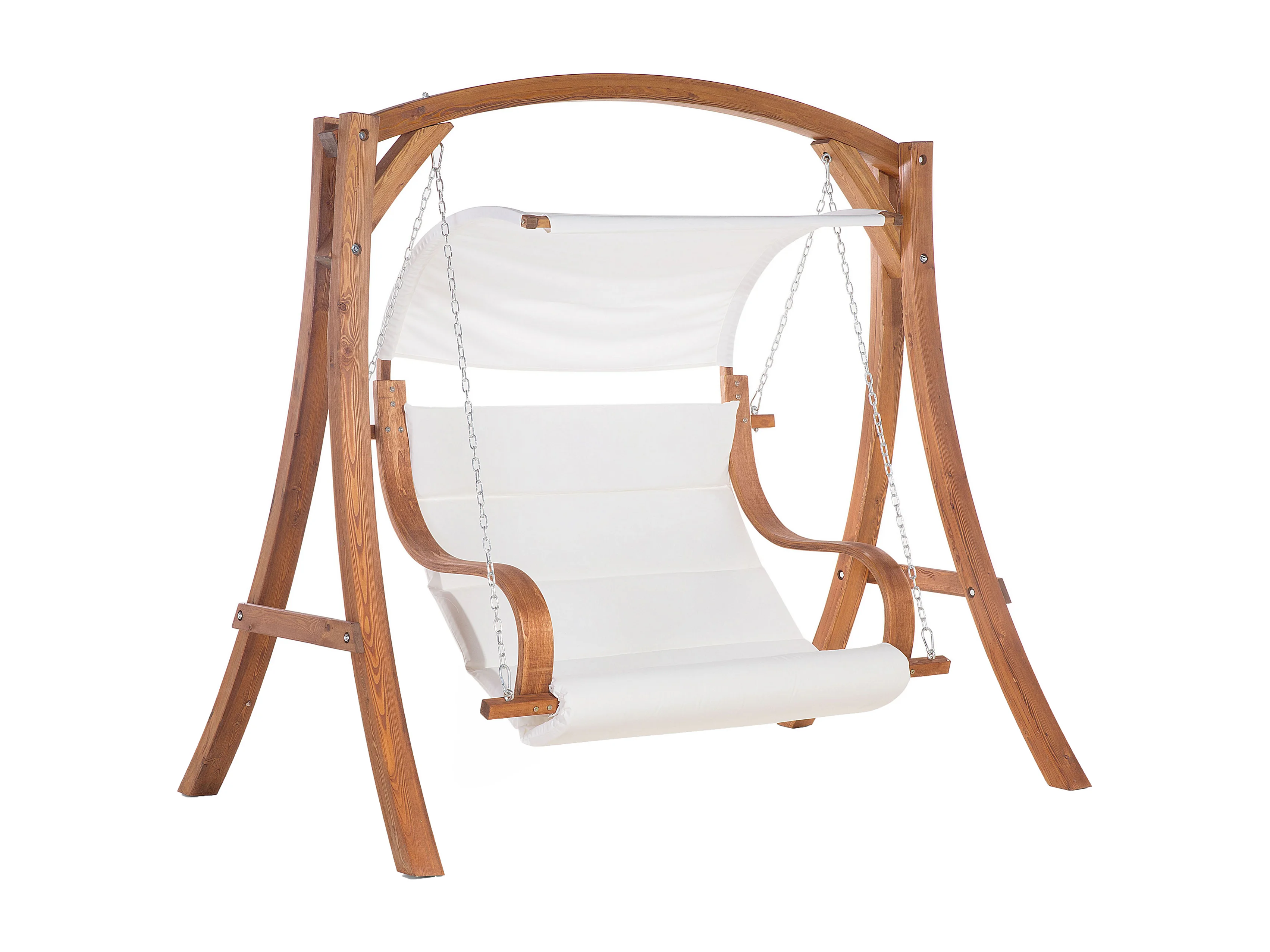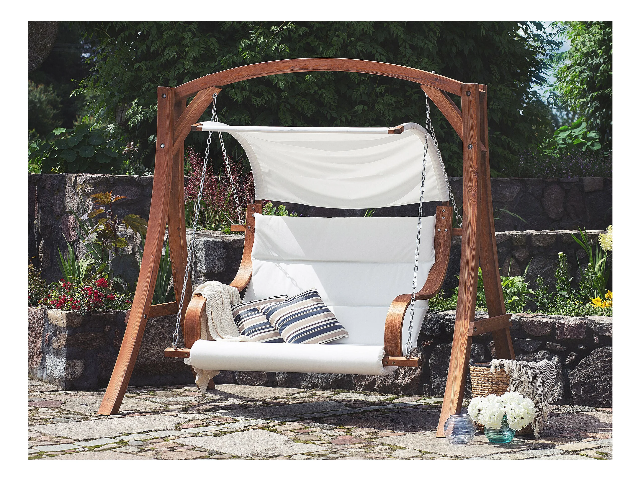 Gartenschaukel Lärchenholz dunkelbraun Sonnendach beige für 2 Personen Aprilia