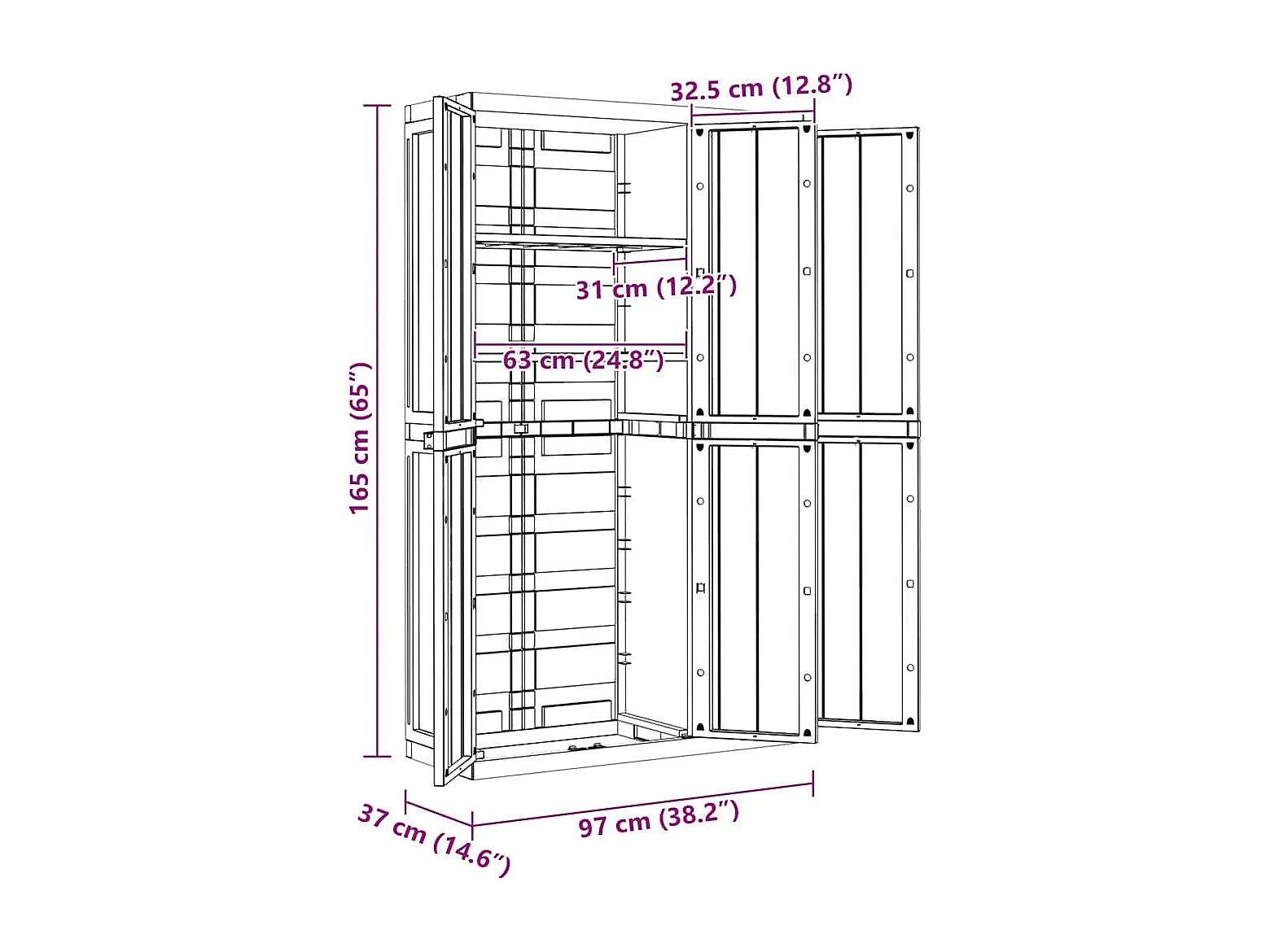 Gartenschrank Grau und Schwarz 97x37x165 cm PP