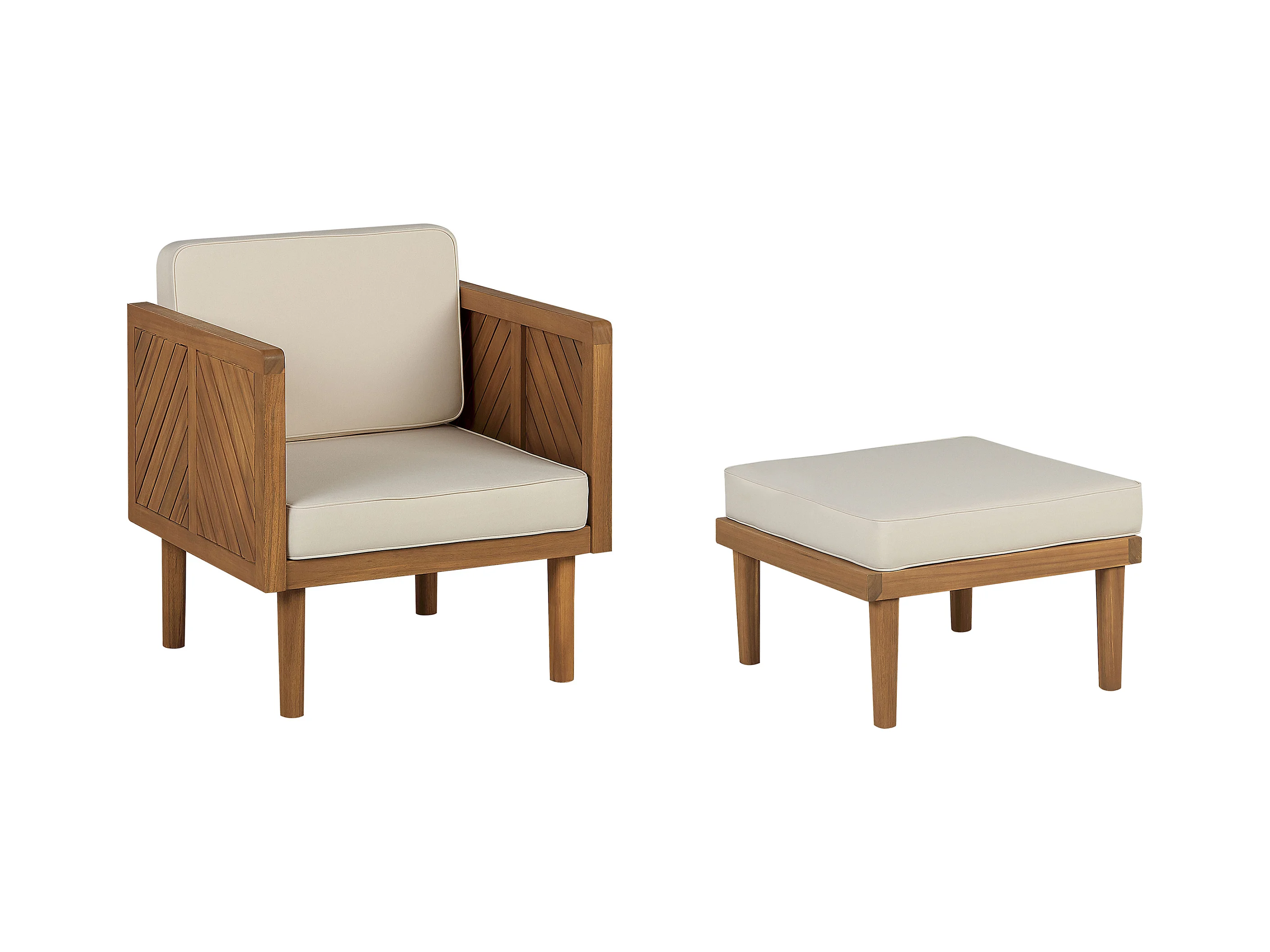 Lounge Sessel mit Ottomane Akazienholz hellbraun Auflagen beige Rustikal Baratti