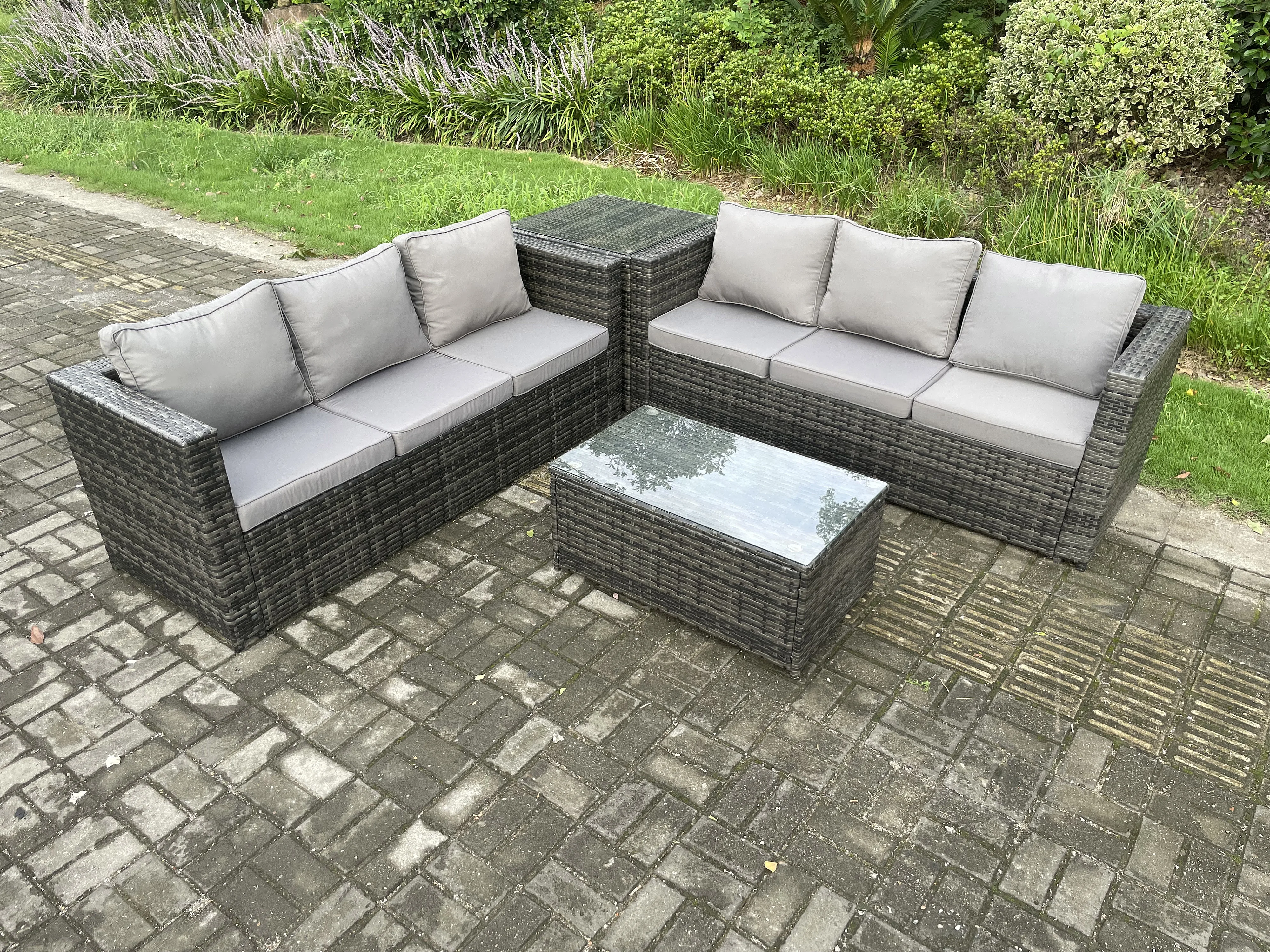 Gartenset im Freien mit Sofa Couchtisch Polyrattan 6-Sitzer Dunkelgrau