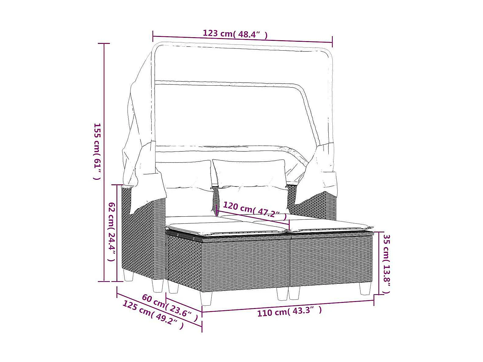 Gartensofa 2-Sitzer mit Dach und Hockern Beige Poly Rattan