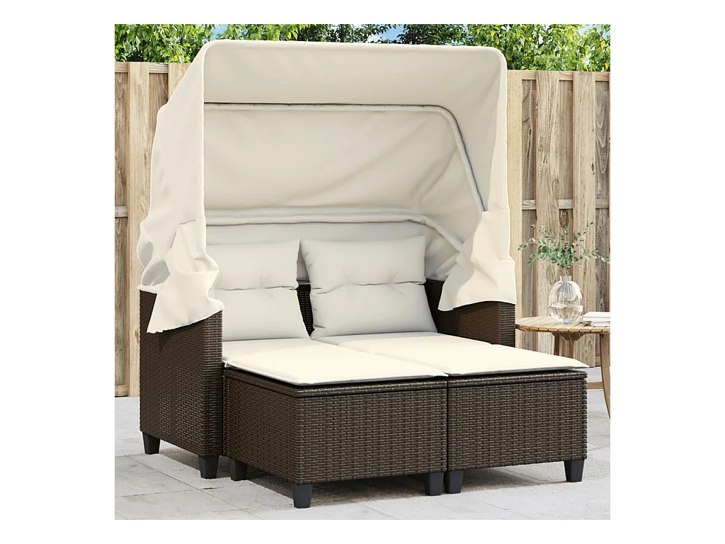 Gartensofa 2-Sitzer mit Dach und Hockern Braun Poly Rattan