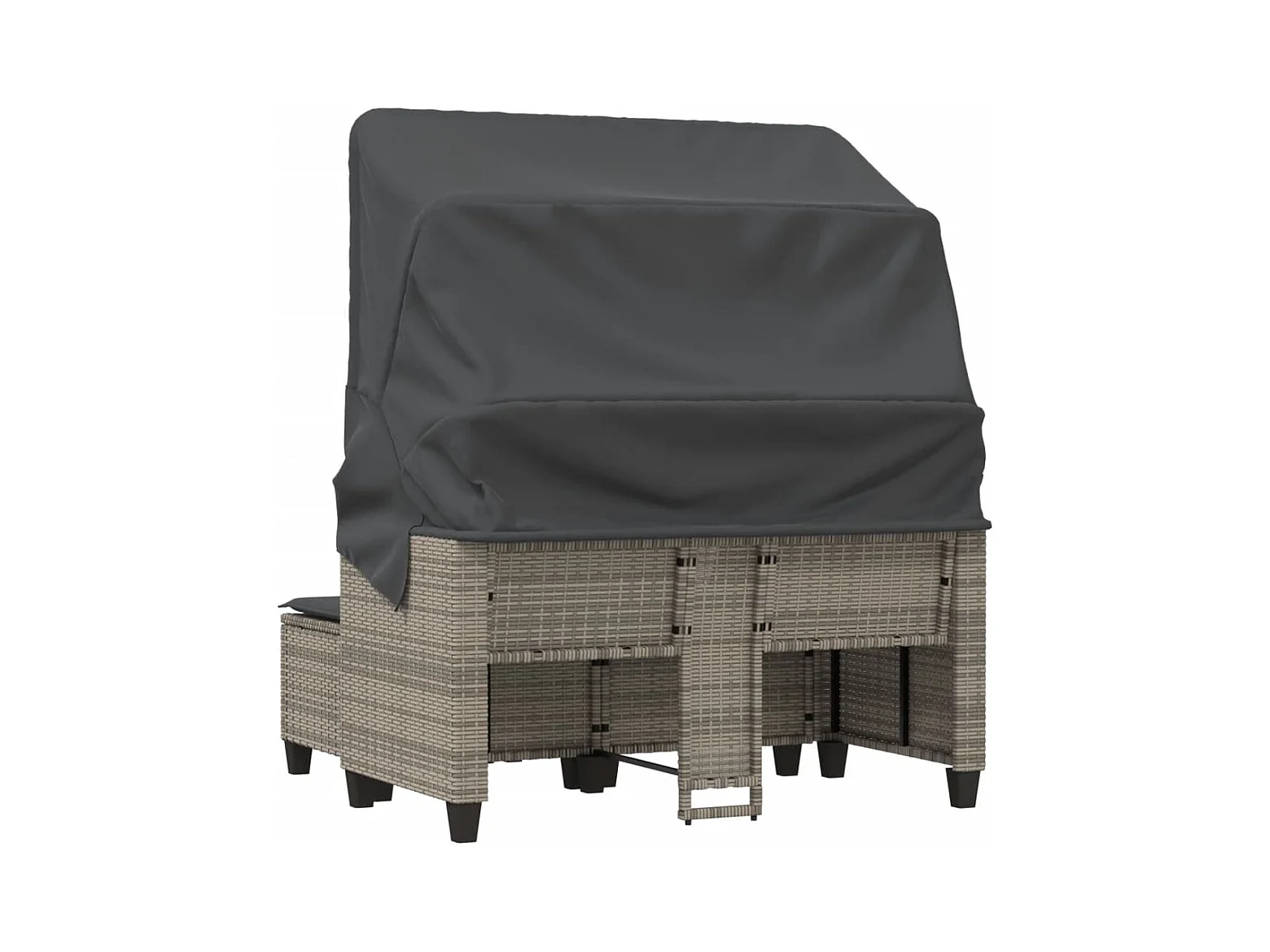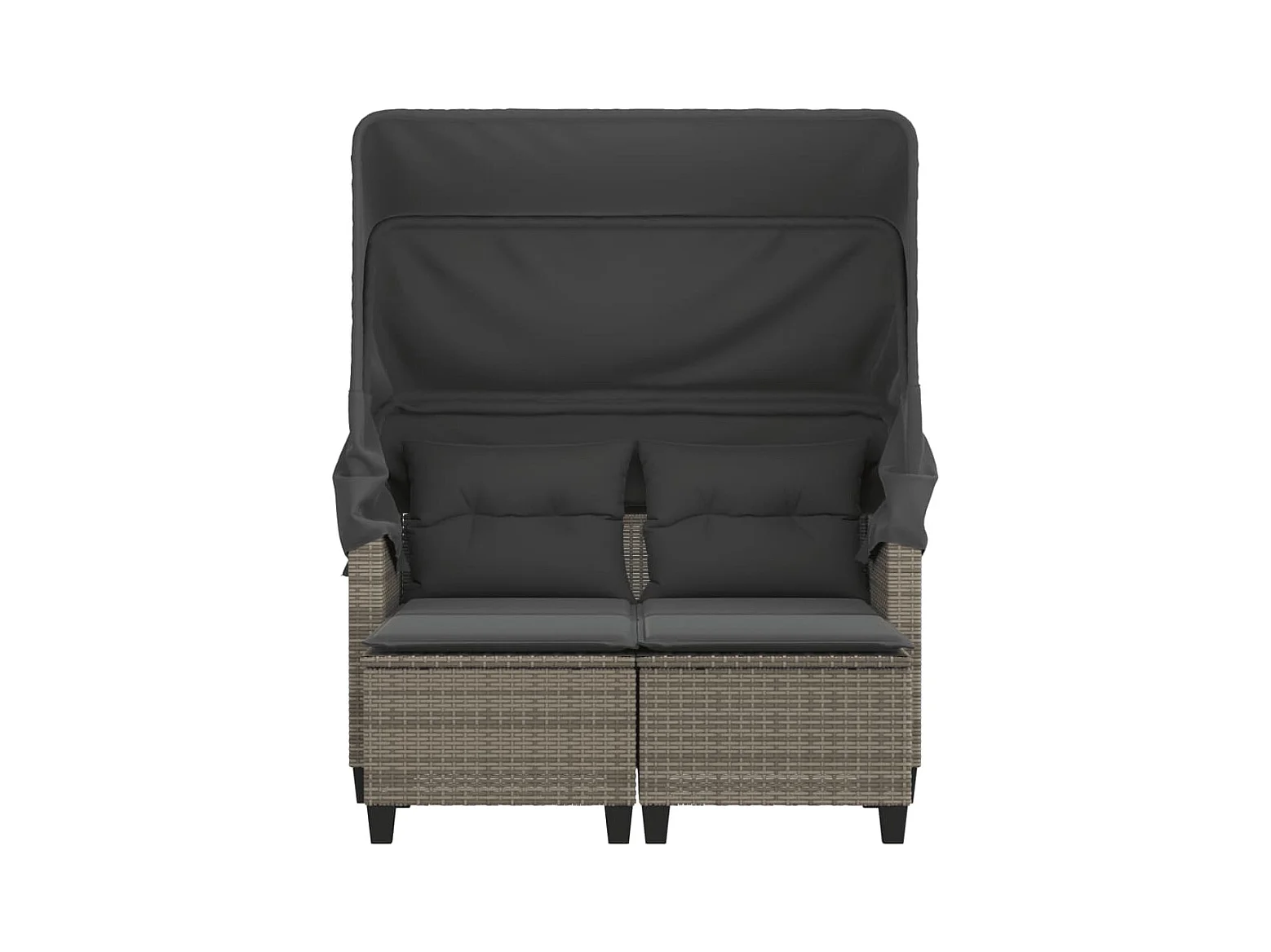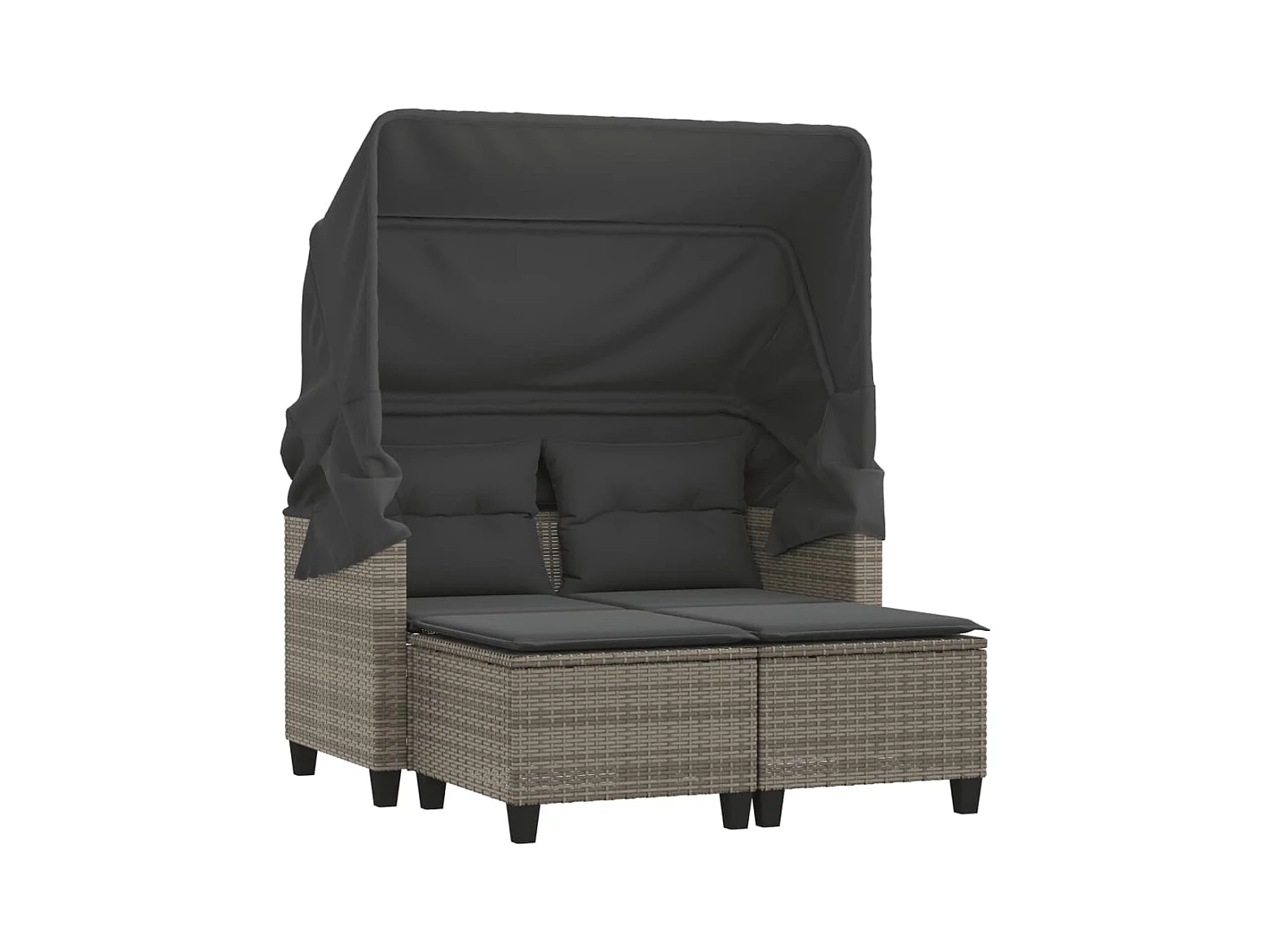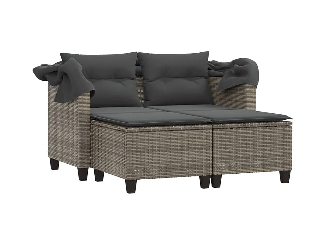 Gartensofa 2-Sitzer mit Dach und Hockern Grau Poly Rattan