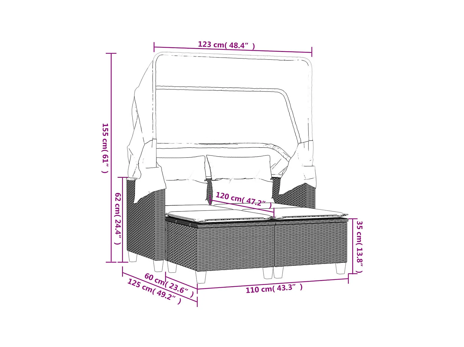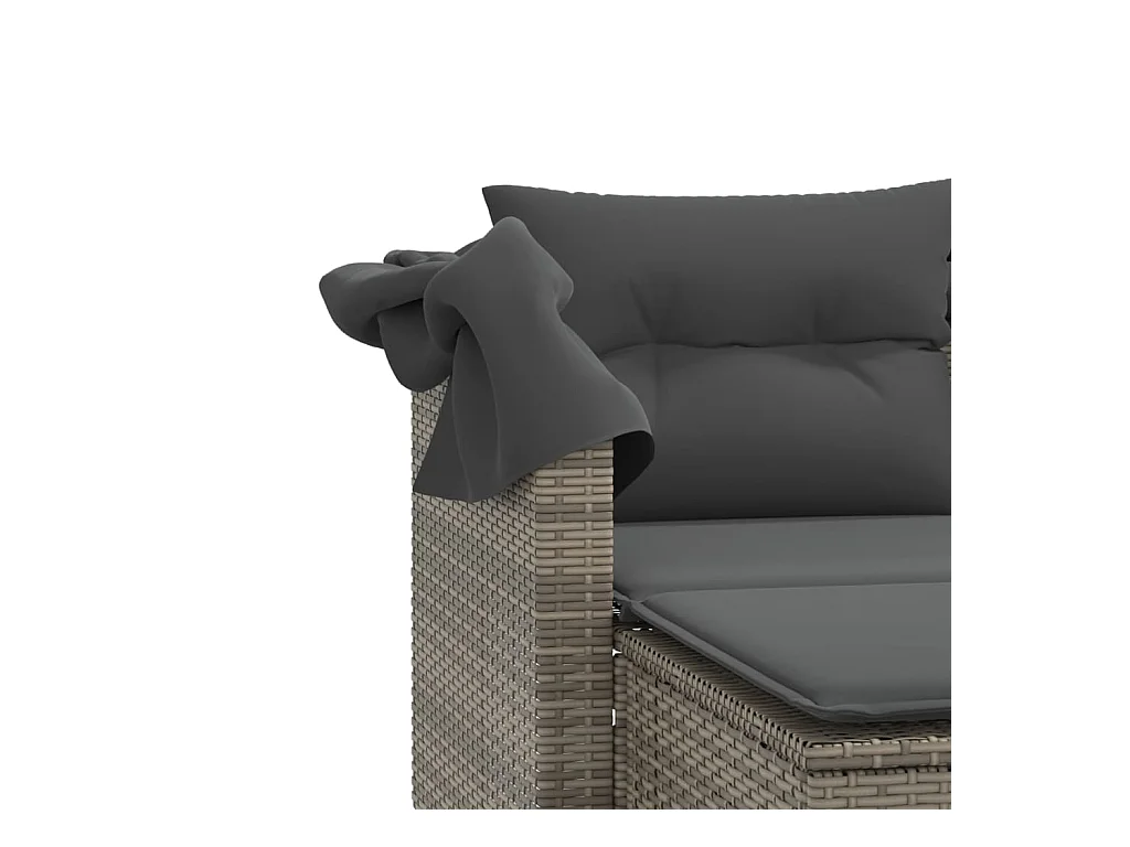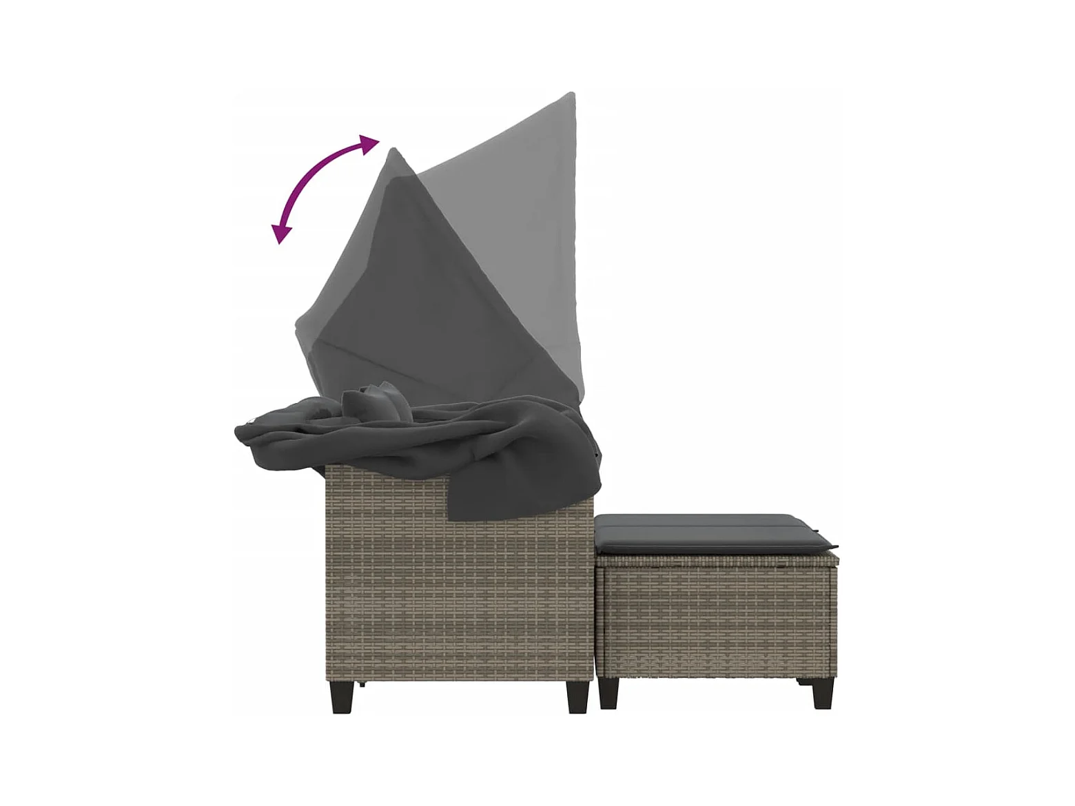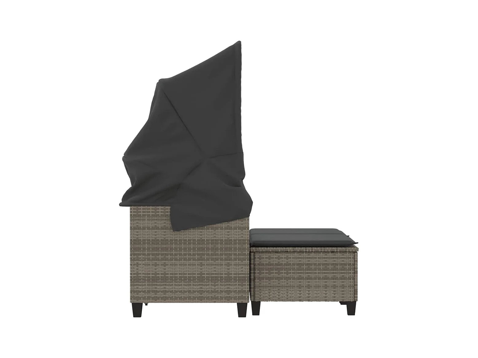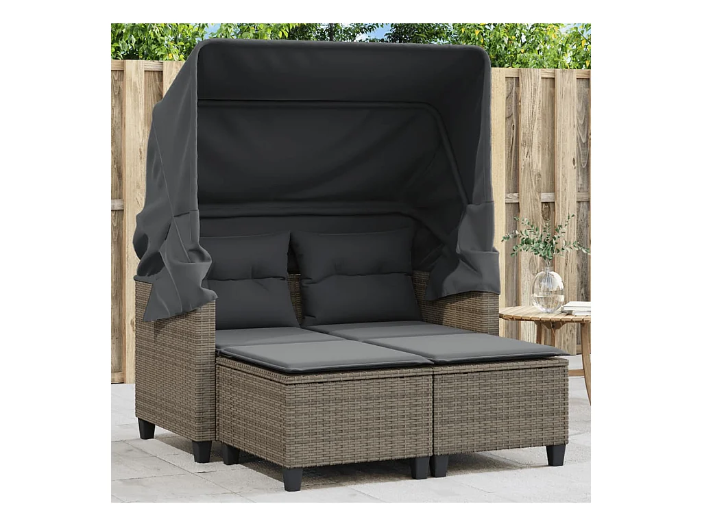 Gartensofa 2-Sitzer mit Dach und Hockern Grau Poly Rattan