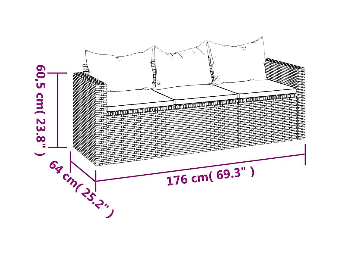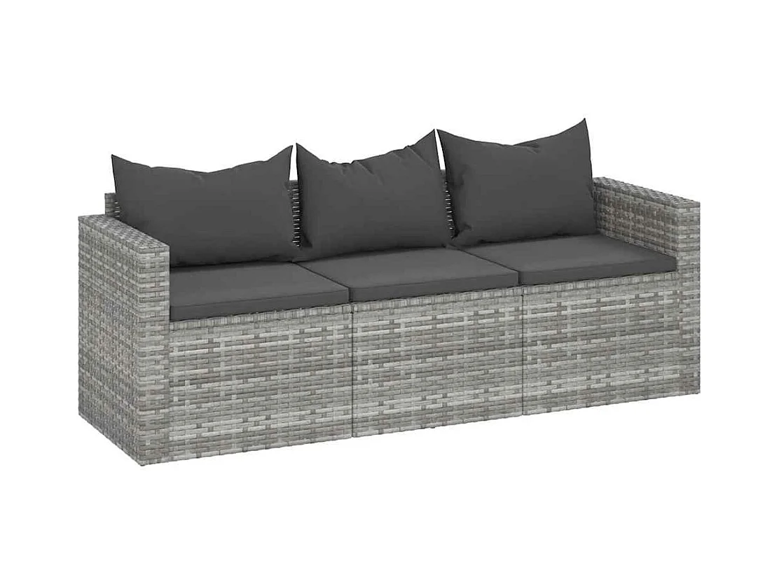 Gartensofa 3-Sitzer mit Kissen Grau Poly Rattan