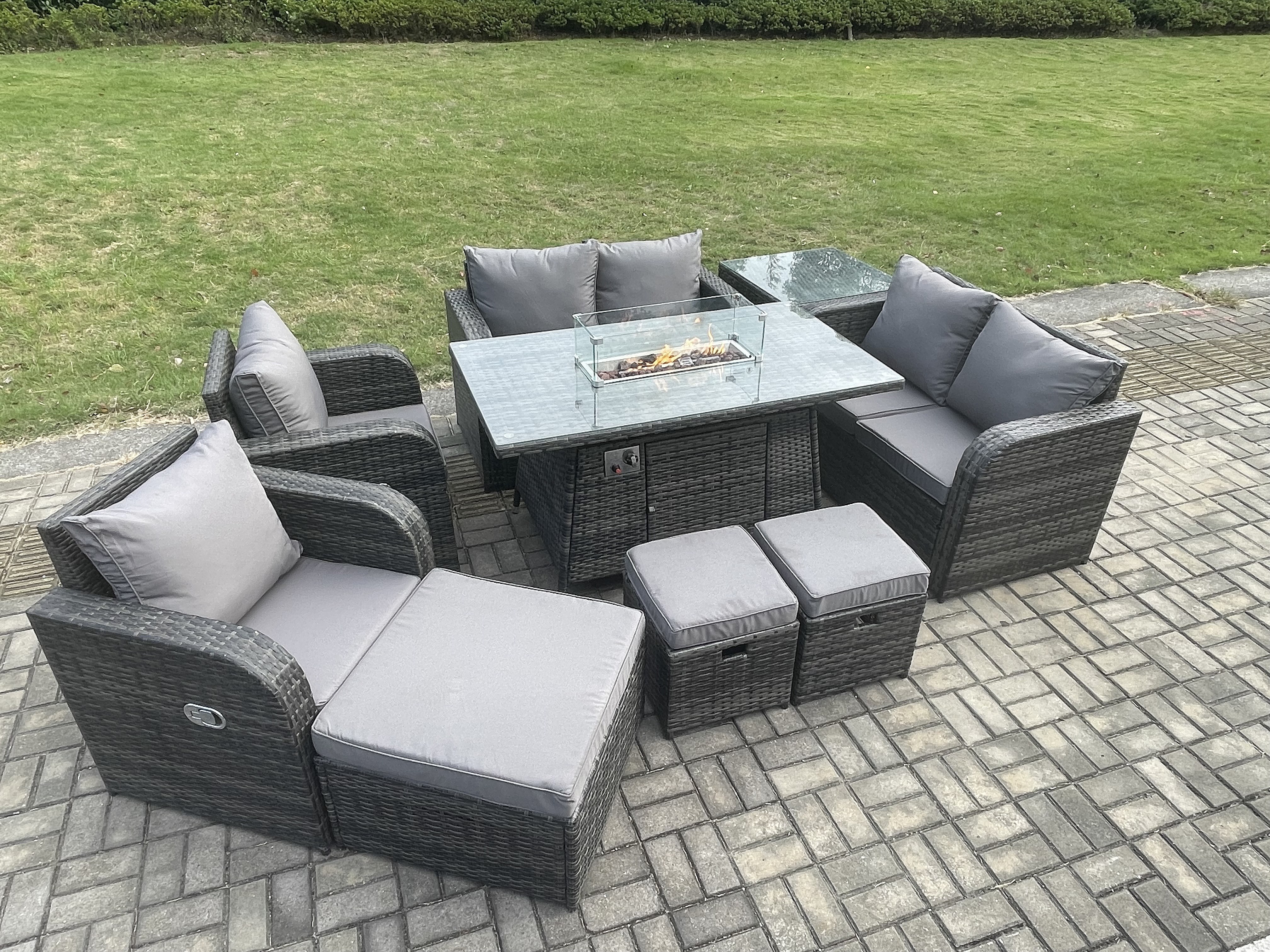 Gartensofa Garnitur mit Gas Feuerstelle Dunkelgrau 9-Sitzer