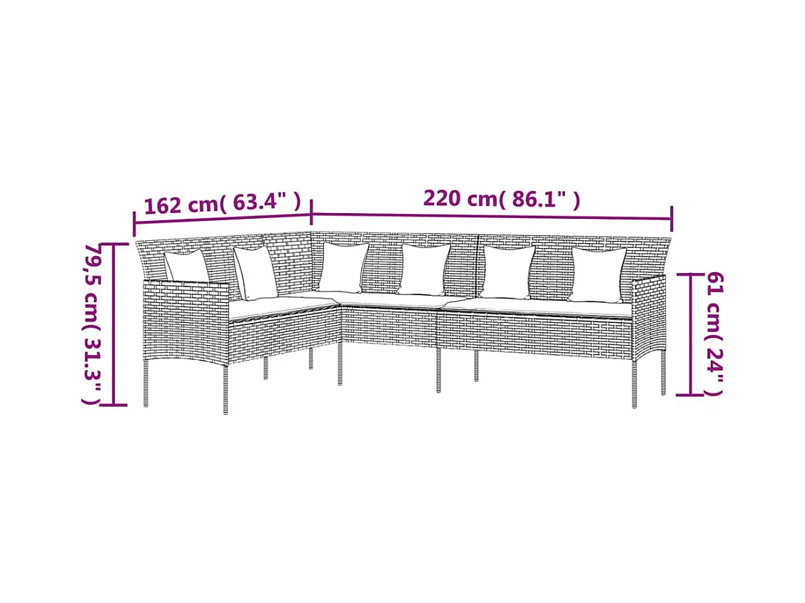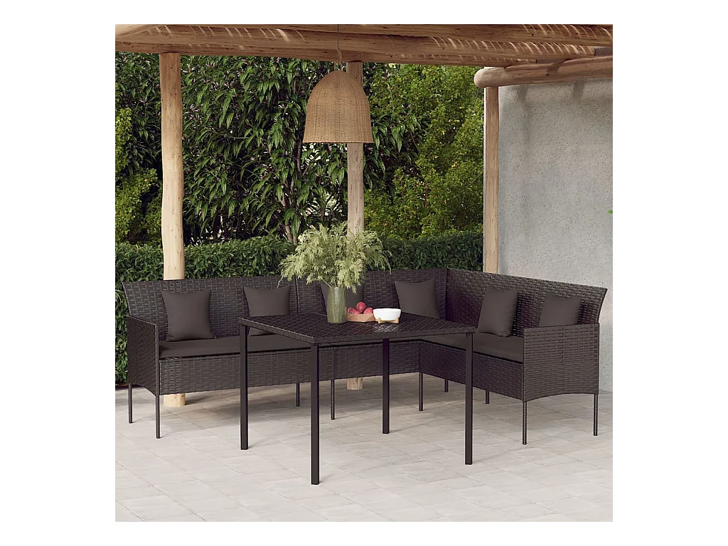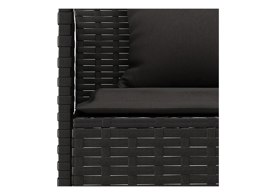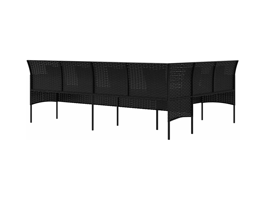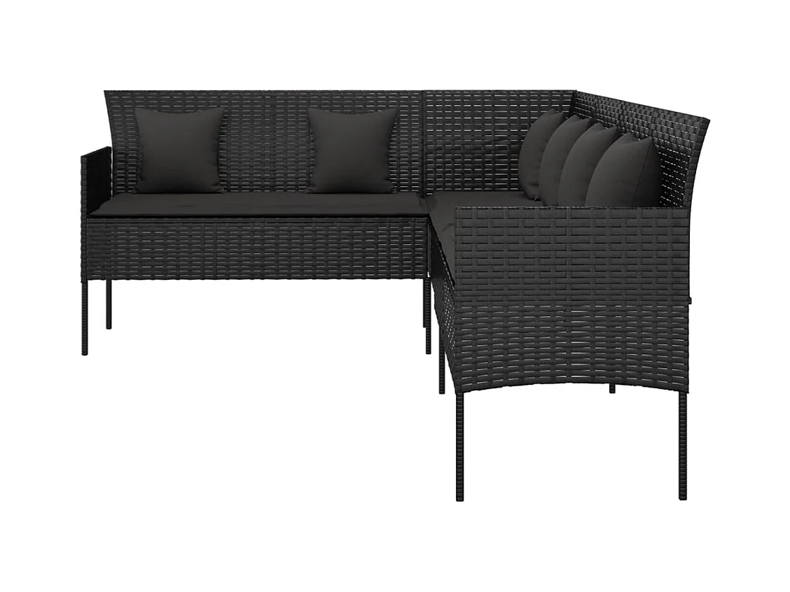 Gartensofa in L-Form mit Kissen Schwarz Poly Rattan
