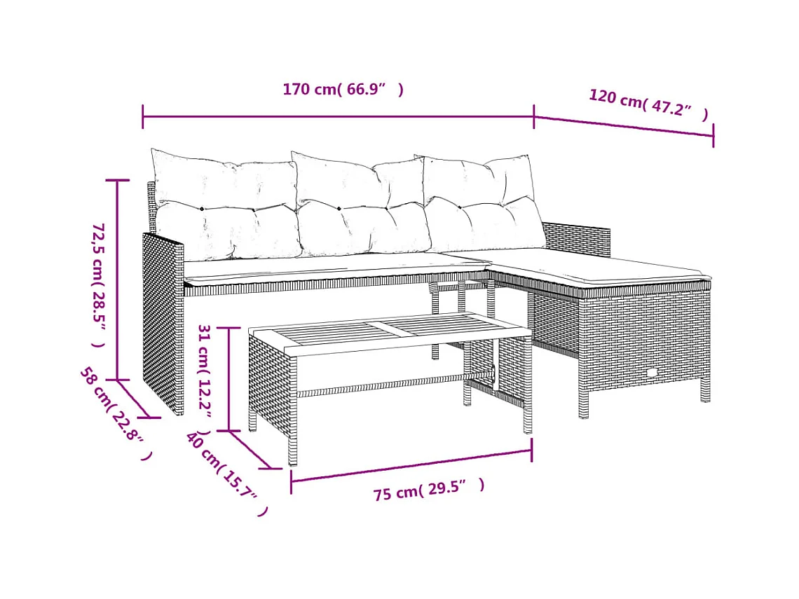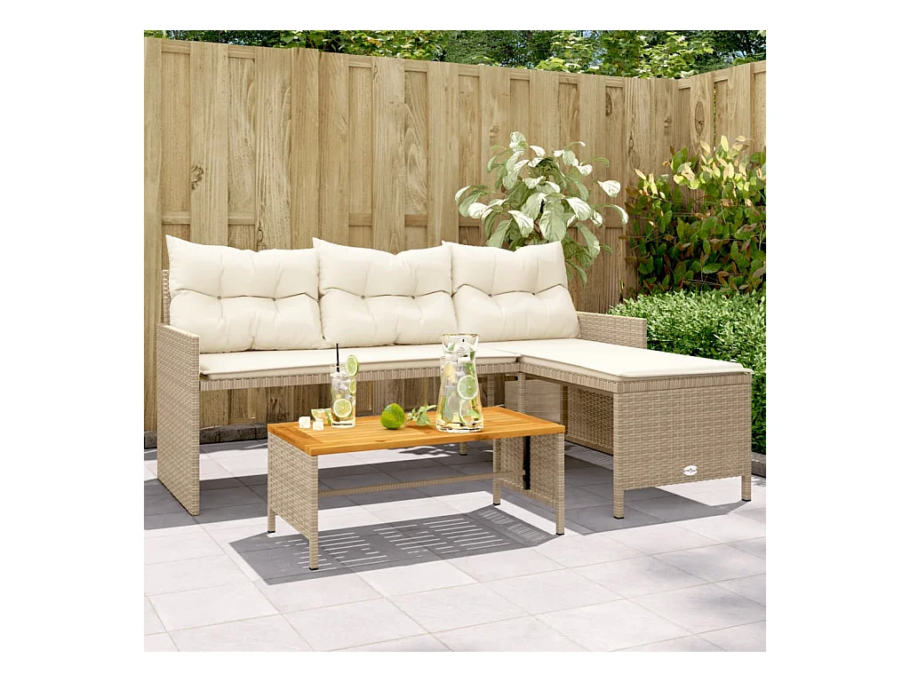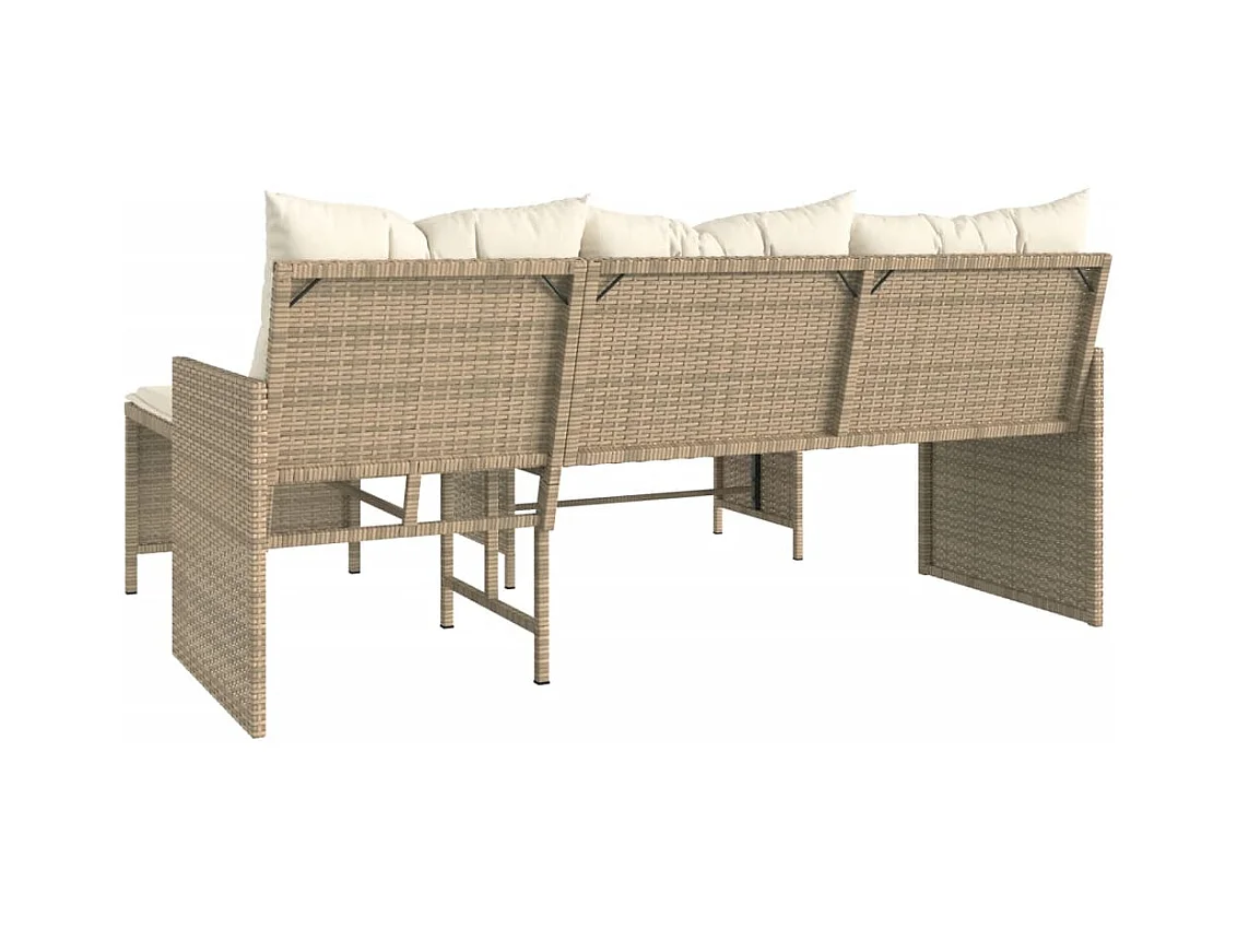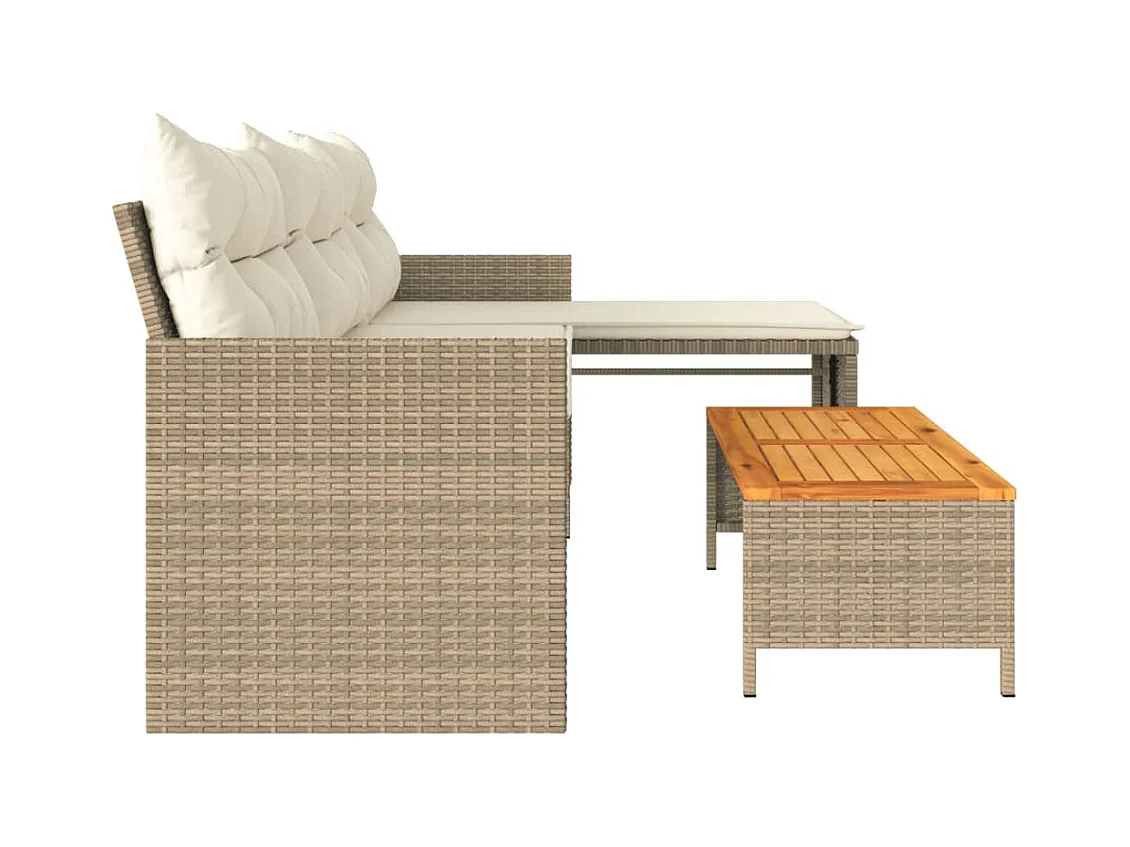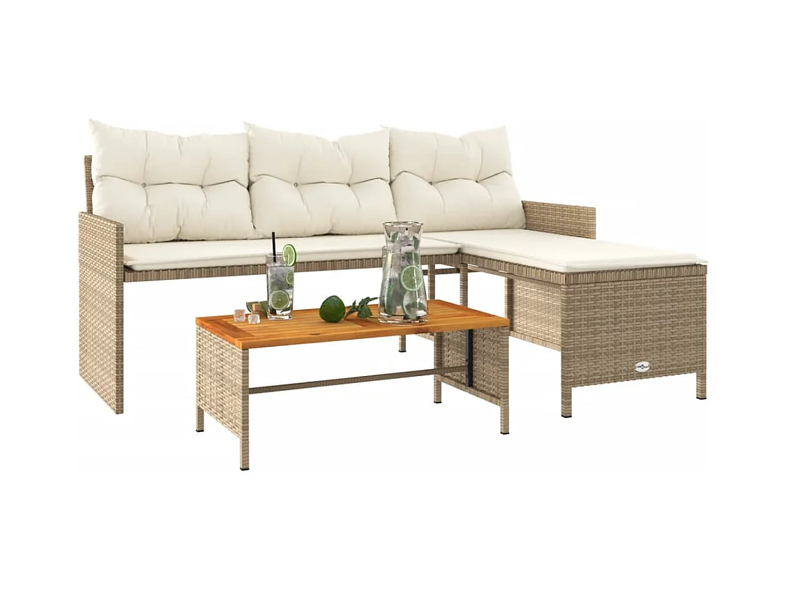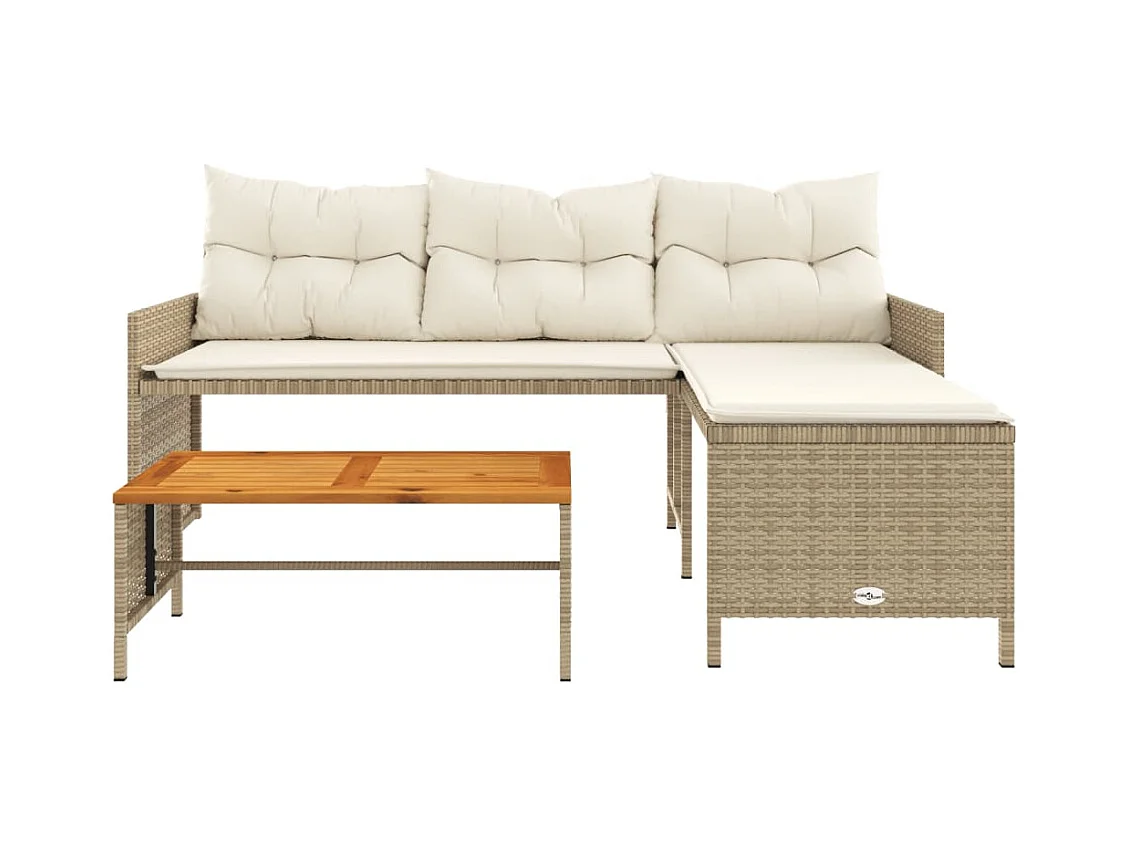 Gartensofa in L-Form mit Tisch und Kissen Beige Poly Rattan