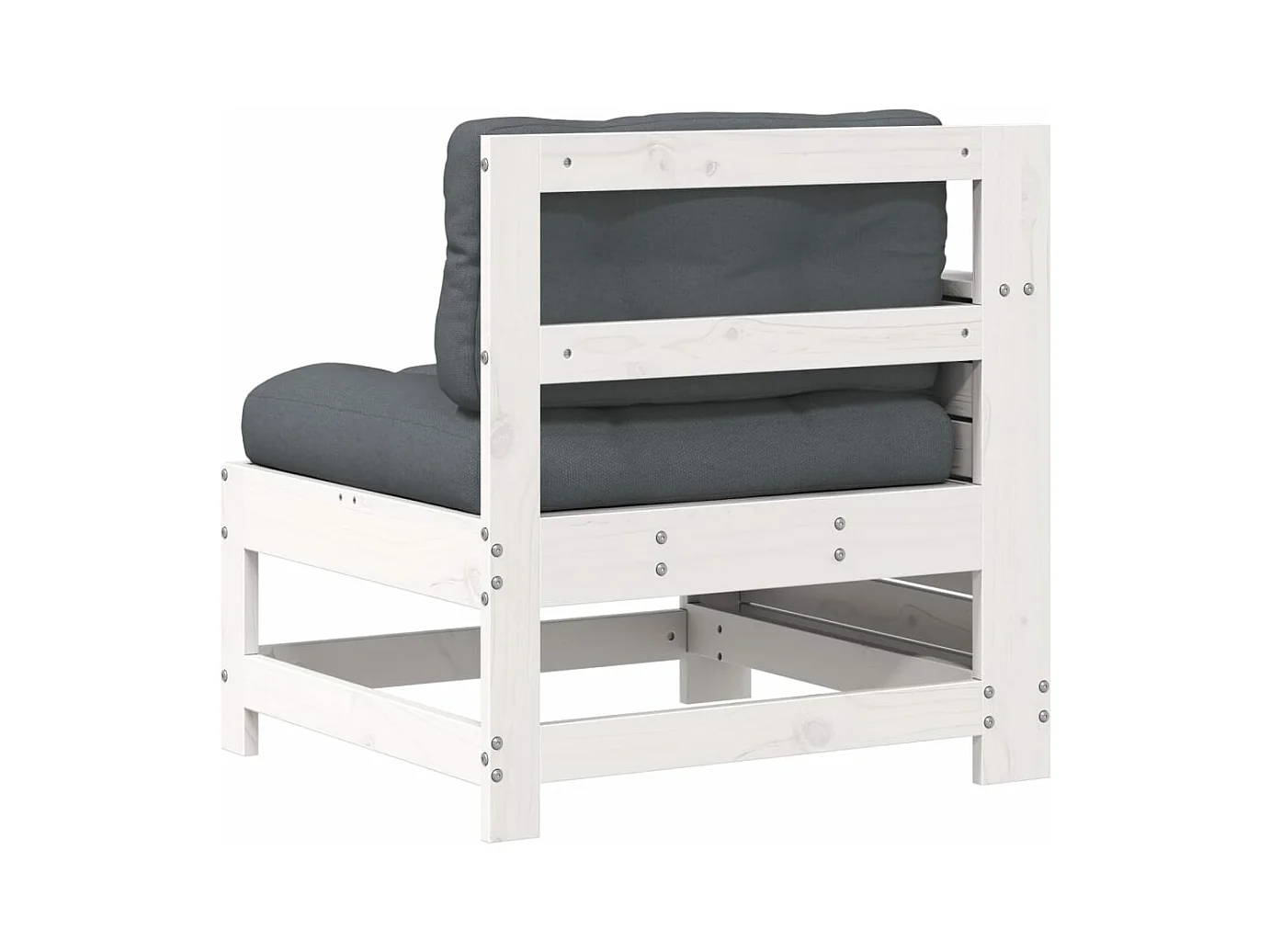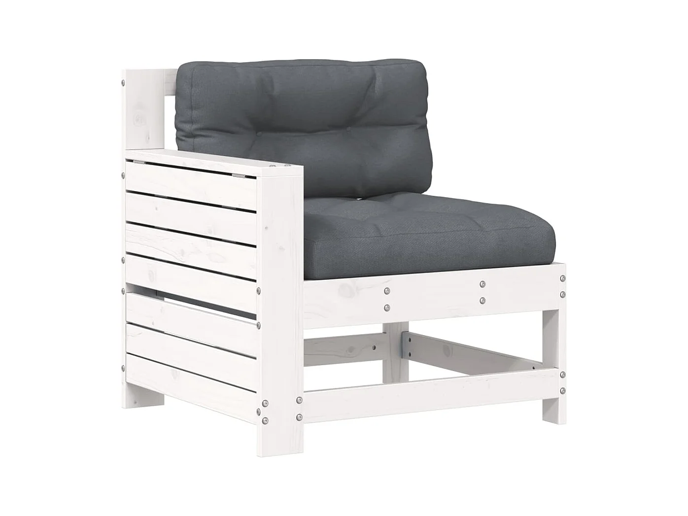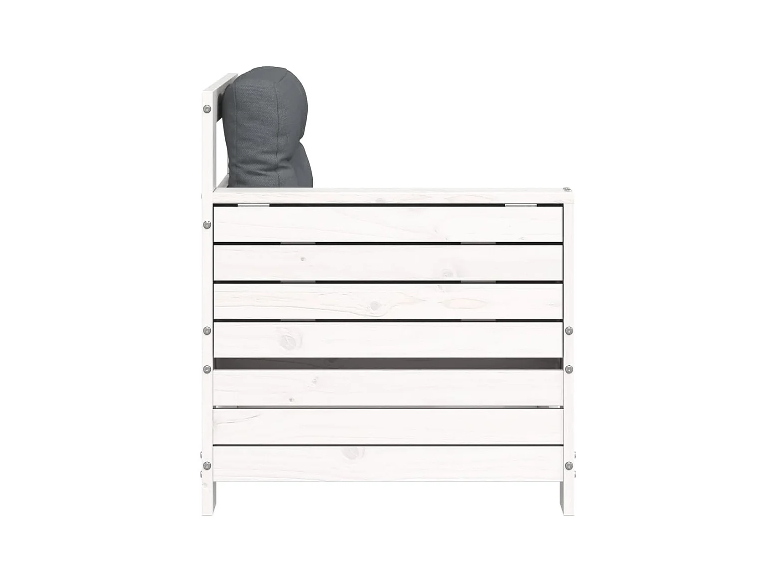 Gartensofa mit Armlehne und Kissen Weiß Massivholz Kiefer