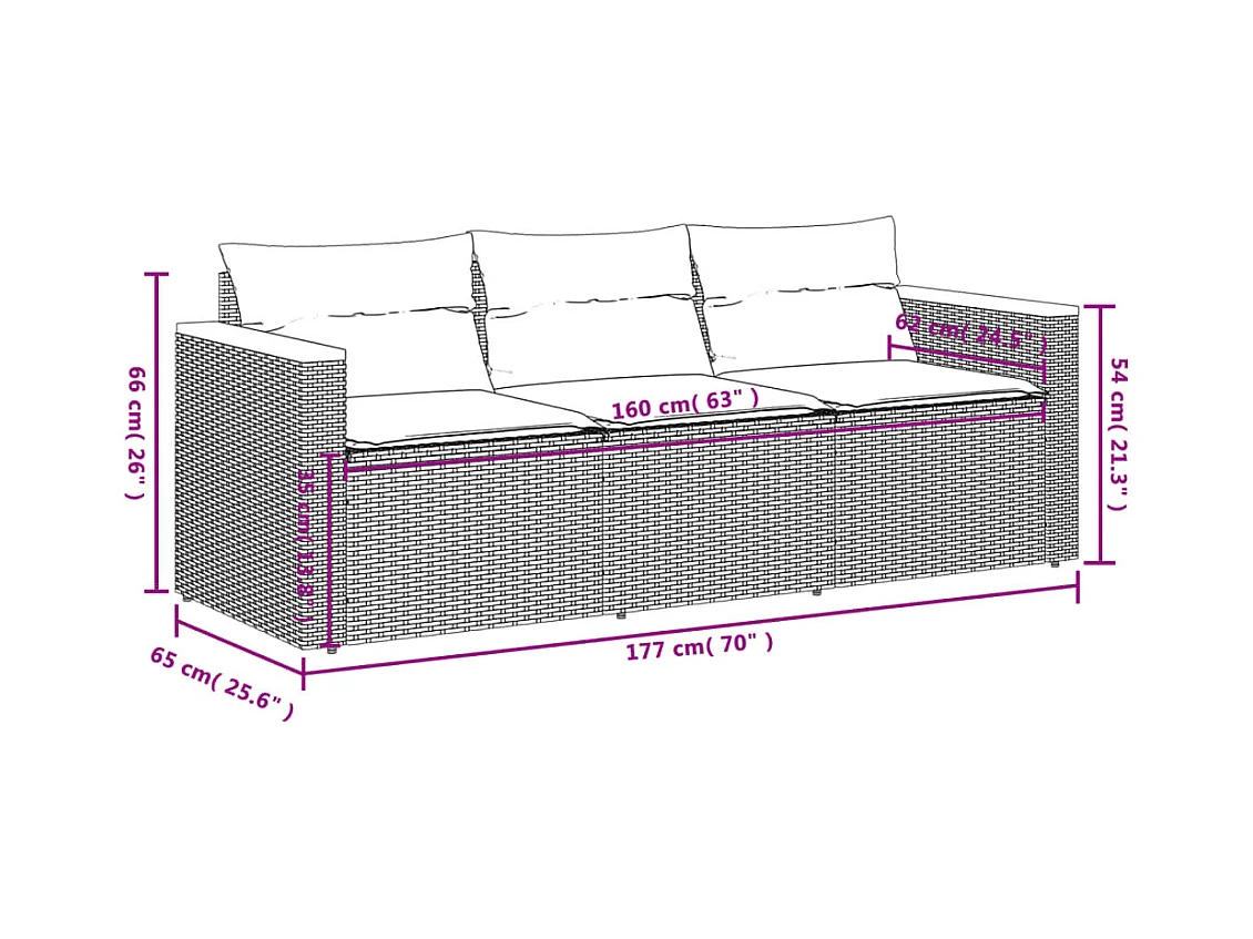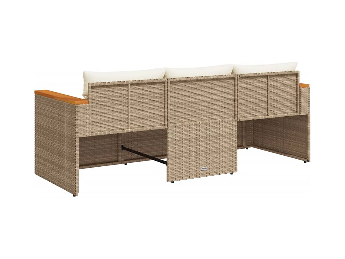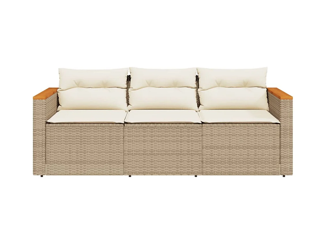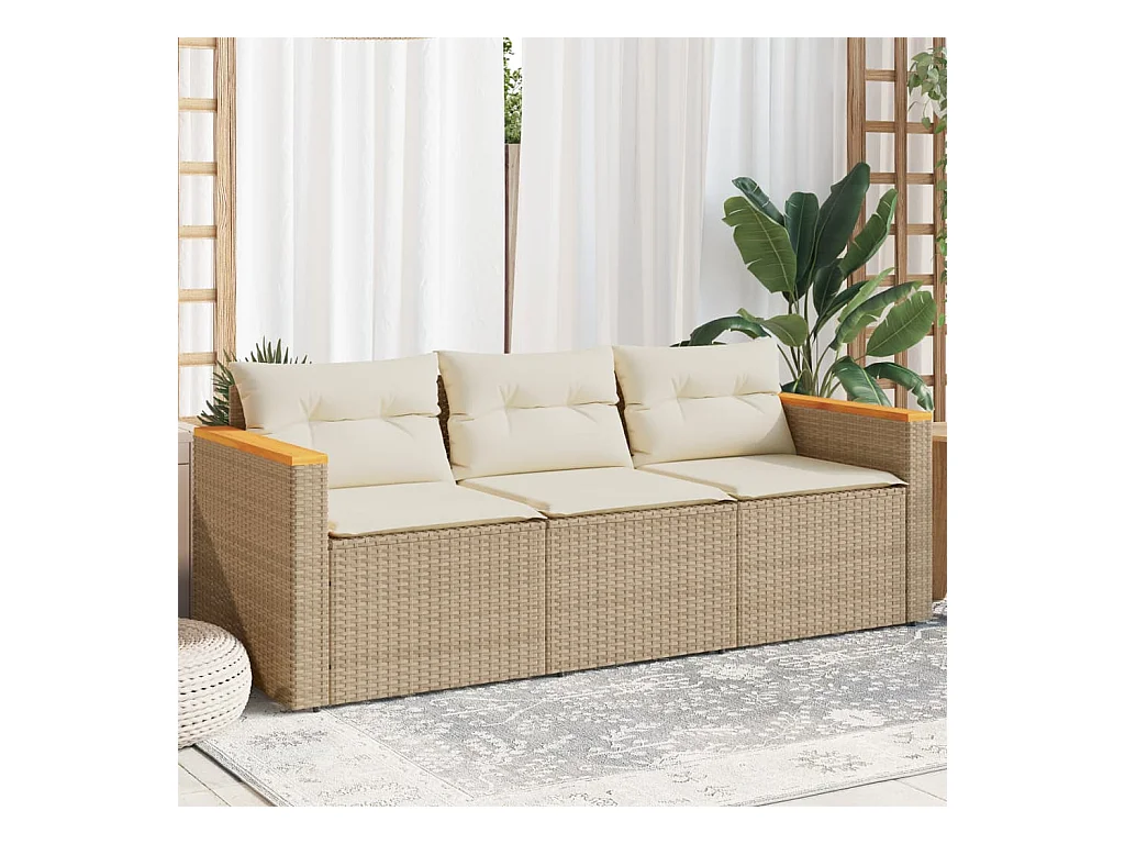 Gartensofa mit Kissen 3-Sitzer Beige Poly Rattan