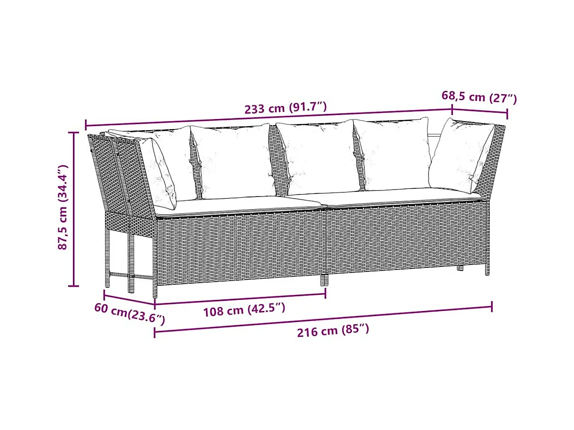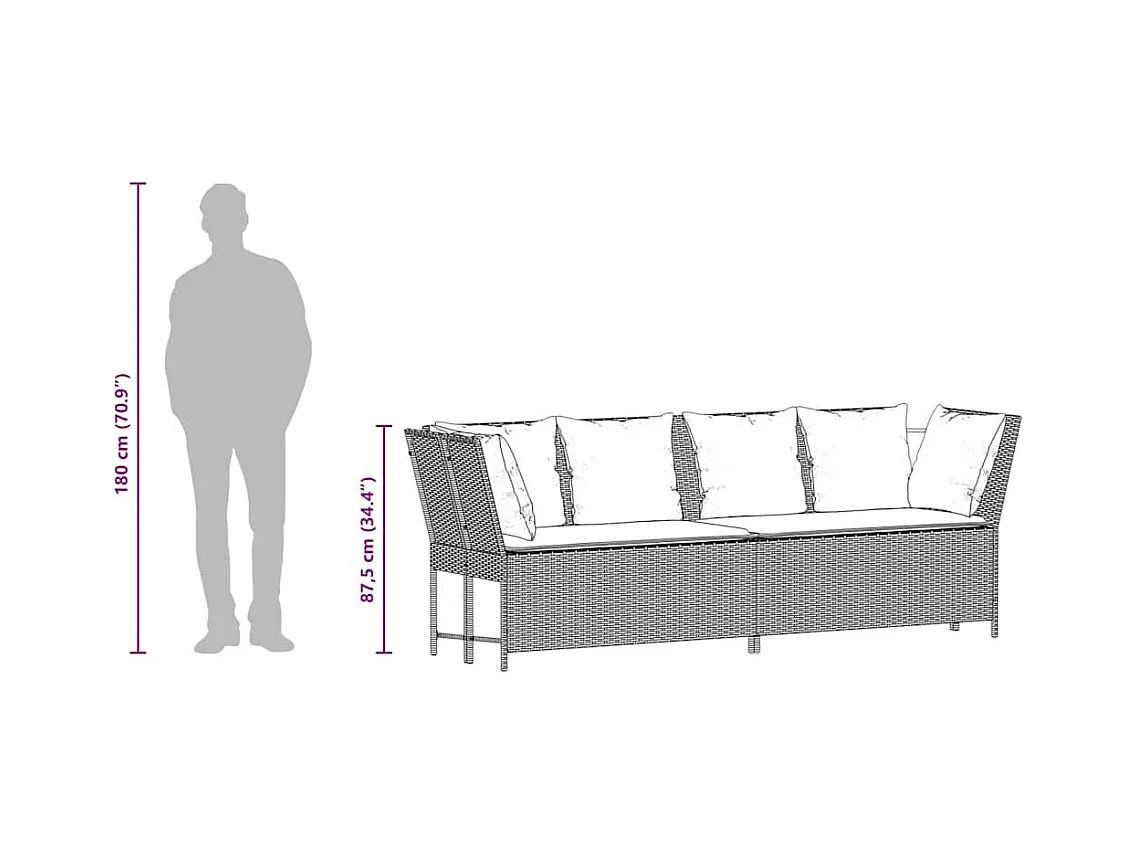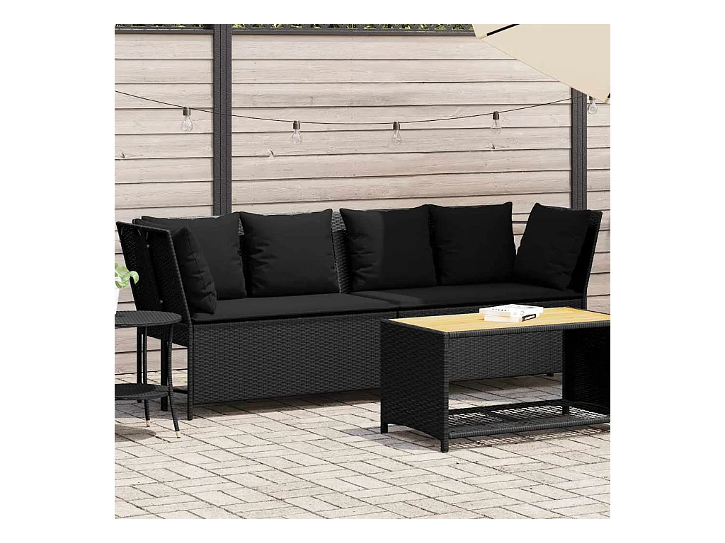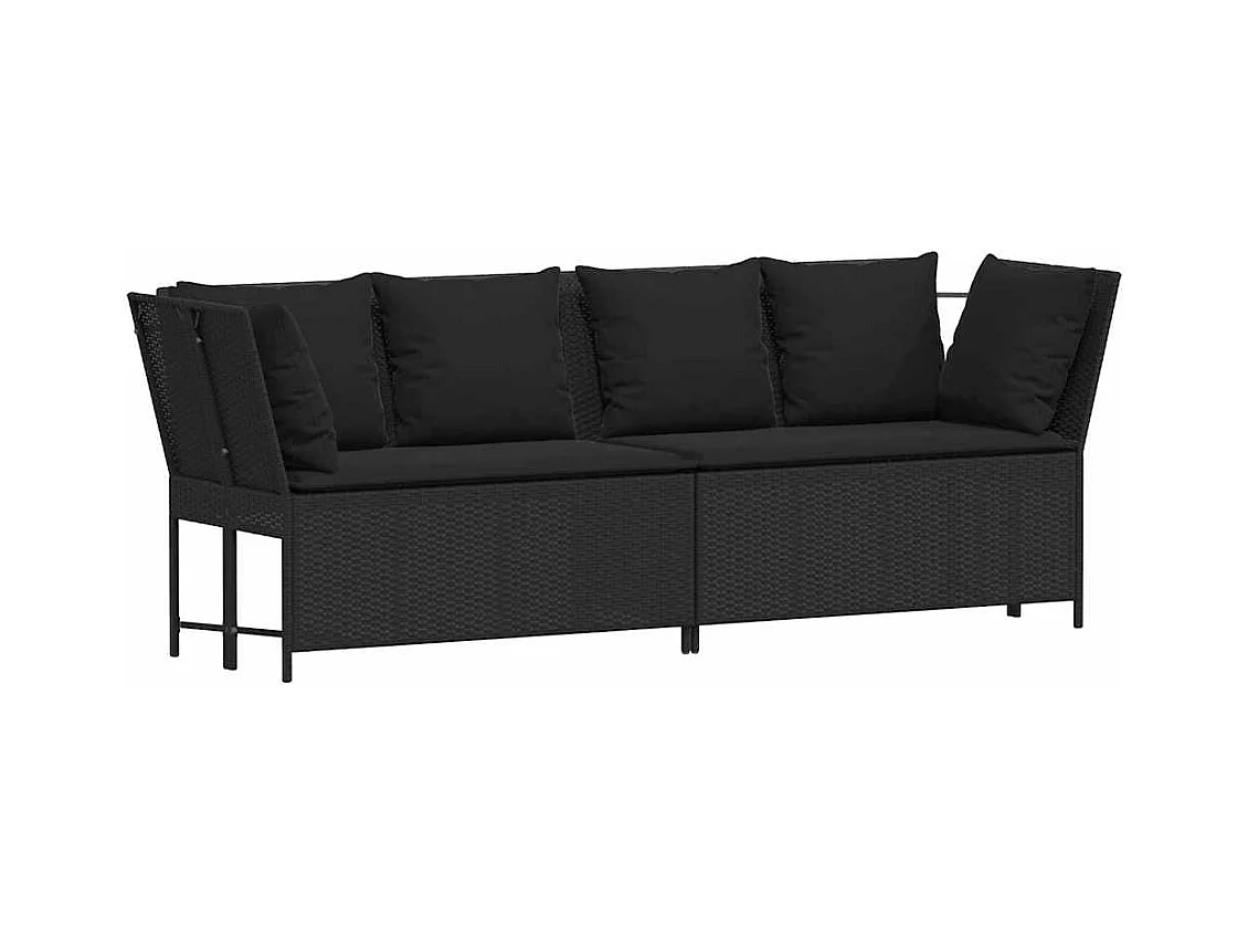 Gartensofa mit Kissen Schwarz Poly Rattan