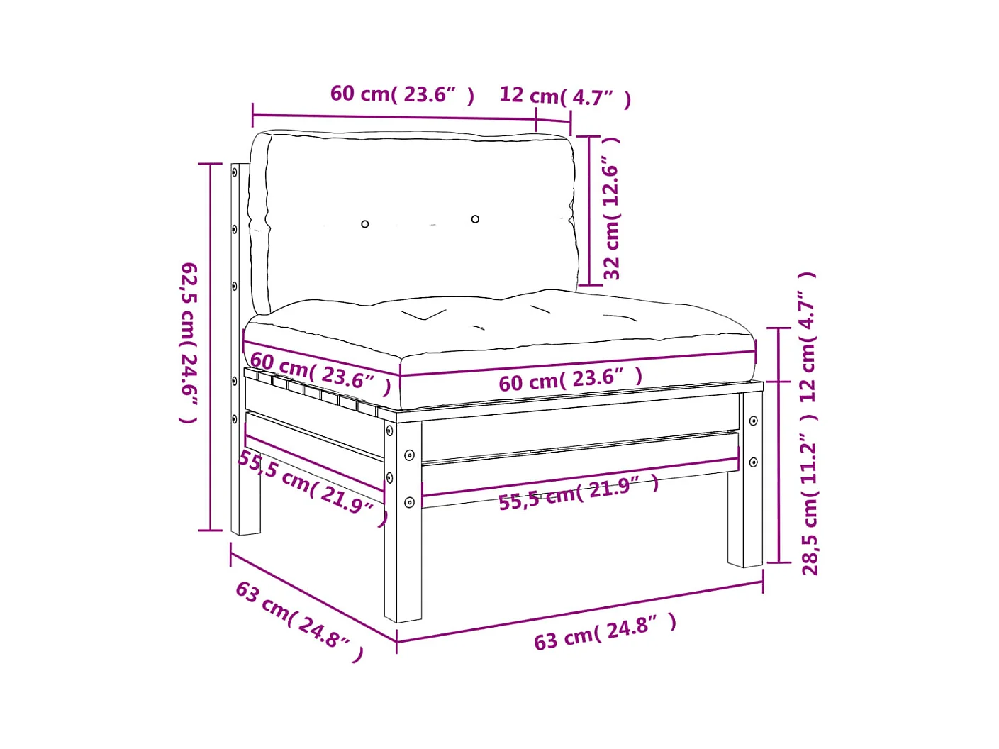 Gartensofa ohne Armlehnen mit Kissen Kiefernholz