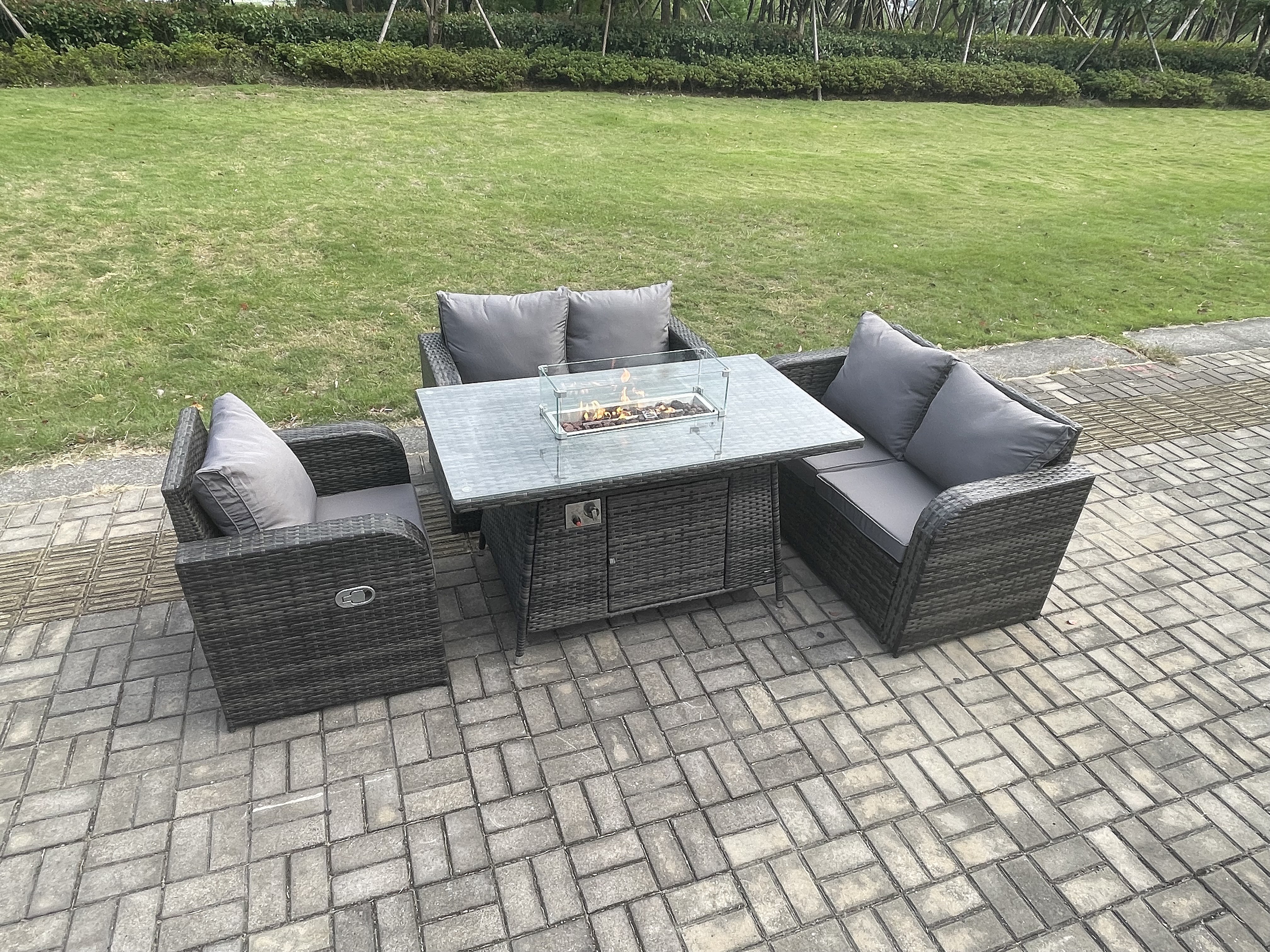 Gartensofa Set mit Gas Feuerstelle Dunkelgrau 5-Sitzer