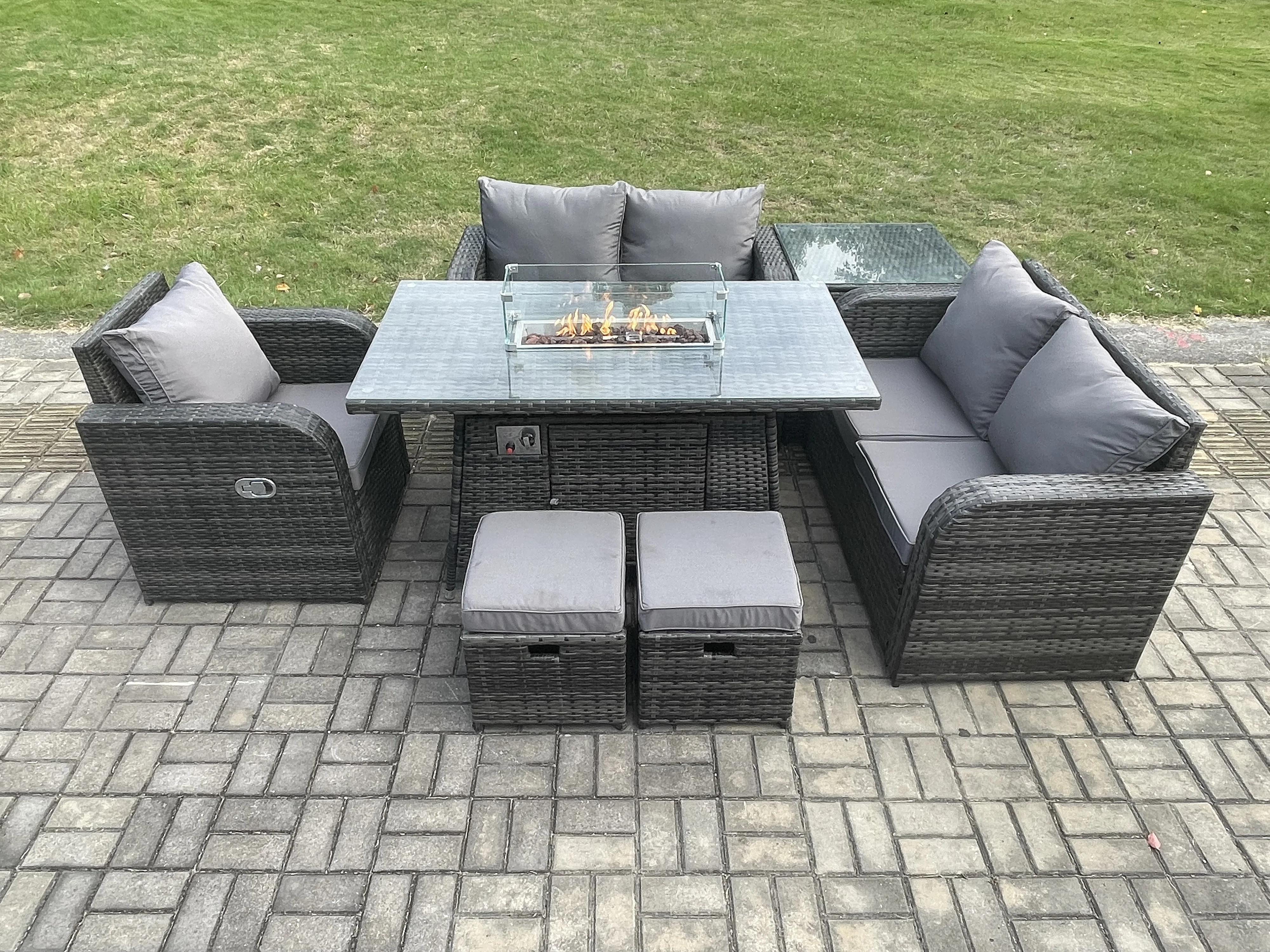 Gartensofa Set mit Gas Feuerstelle Dunkelgrau 7-Sitzer