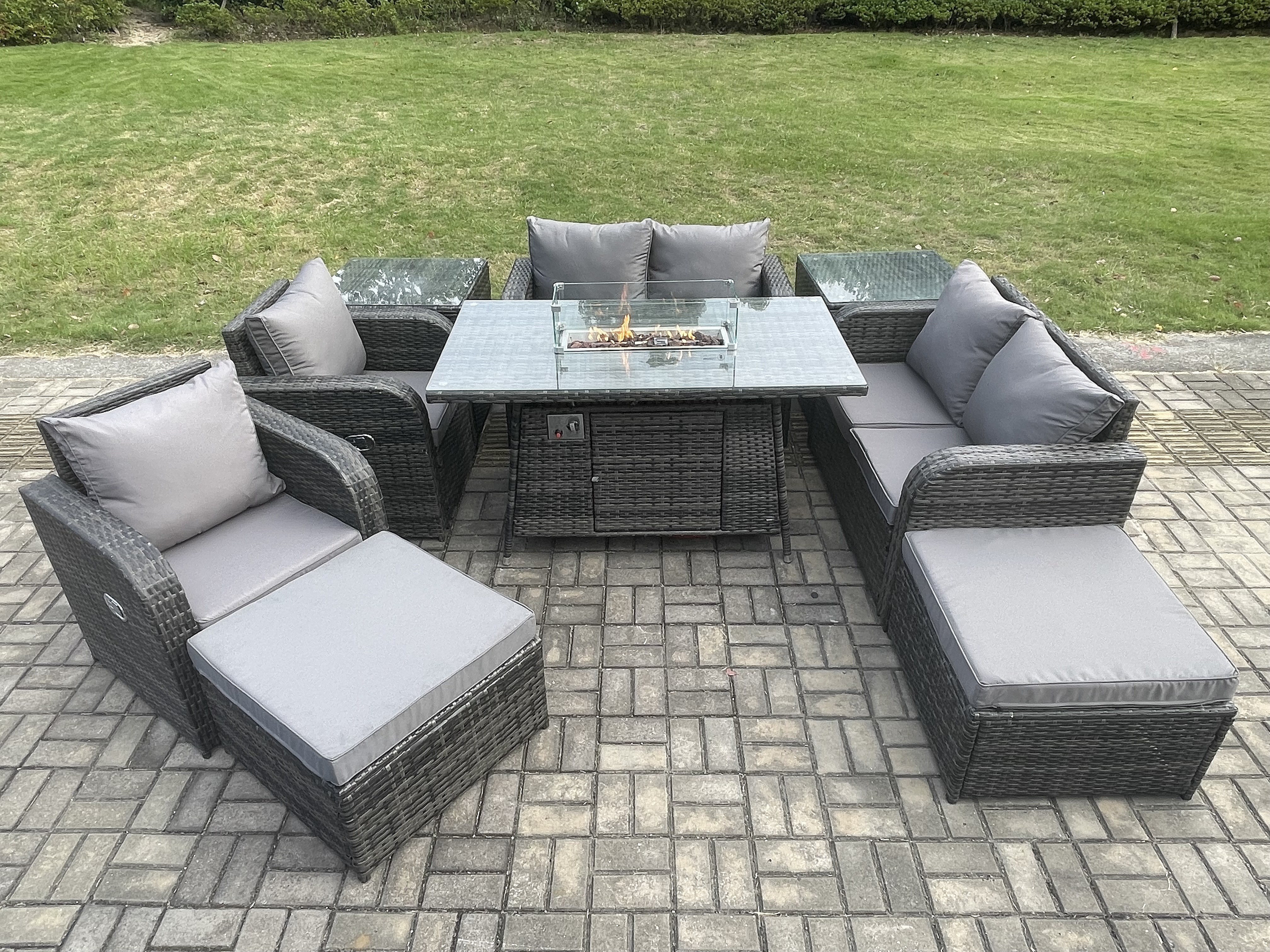 Gartensofa Set mit Gas Feuerstelle Dunkelgrau 8-Sitzer
