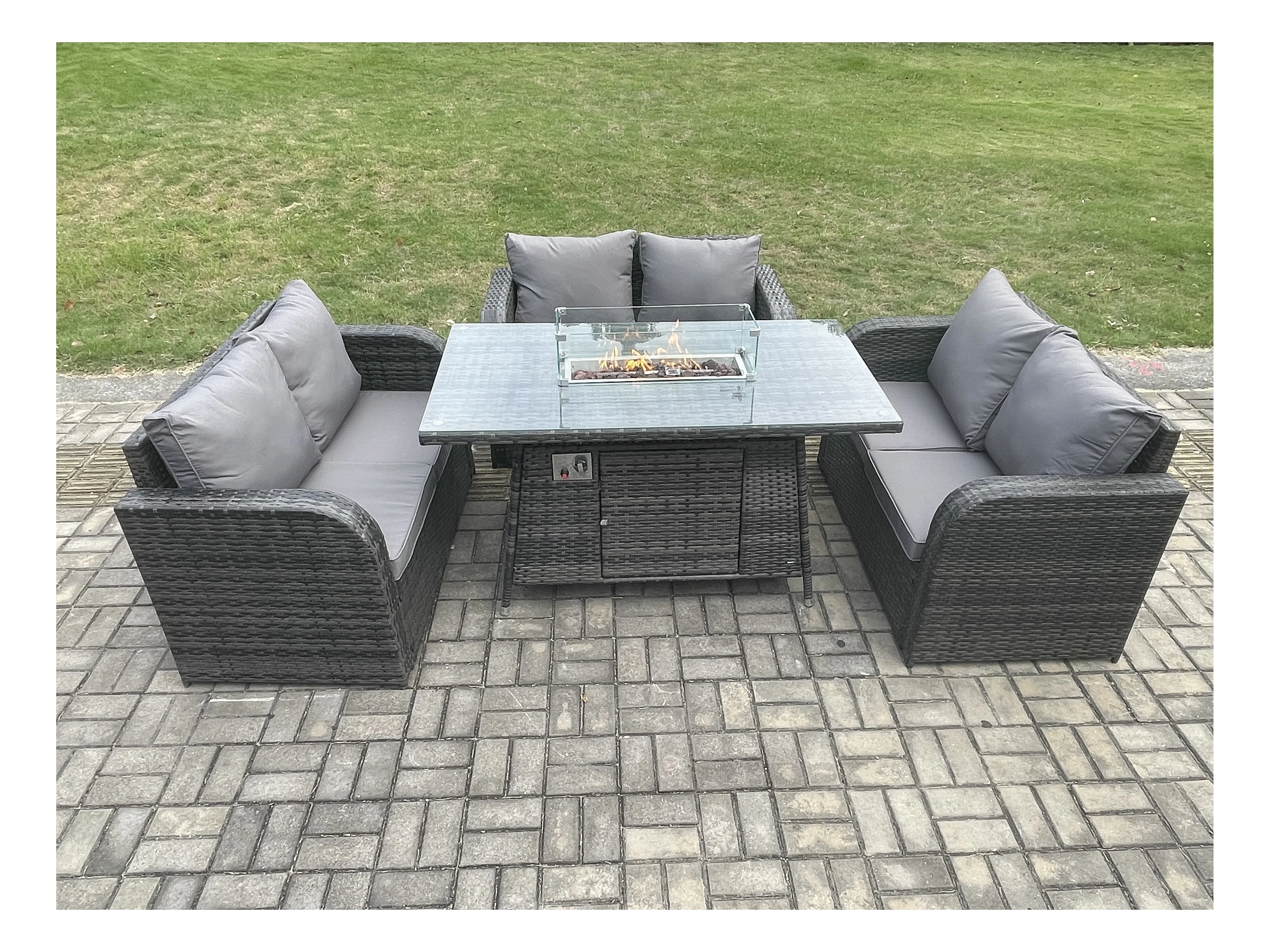 Gartensofa Set mit Gas Feuertisch 6-Sitzer