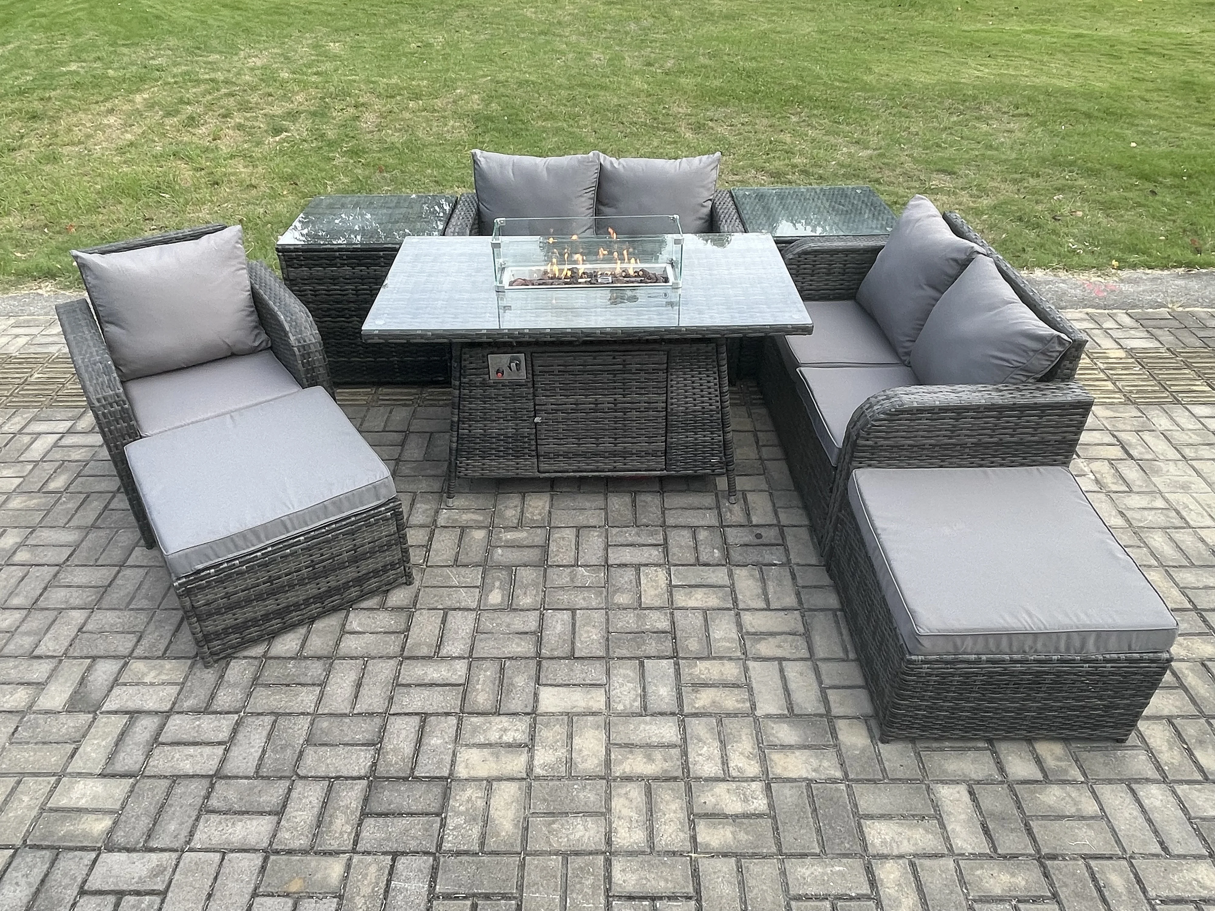Gartensofa Set mit Gas Feuertisch 7-Sitzer
