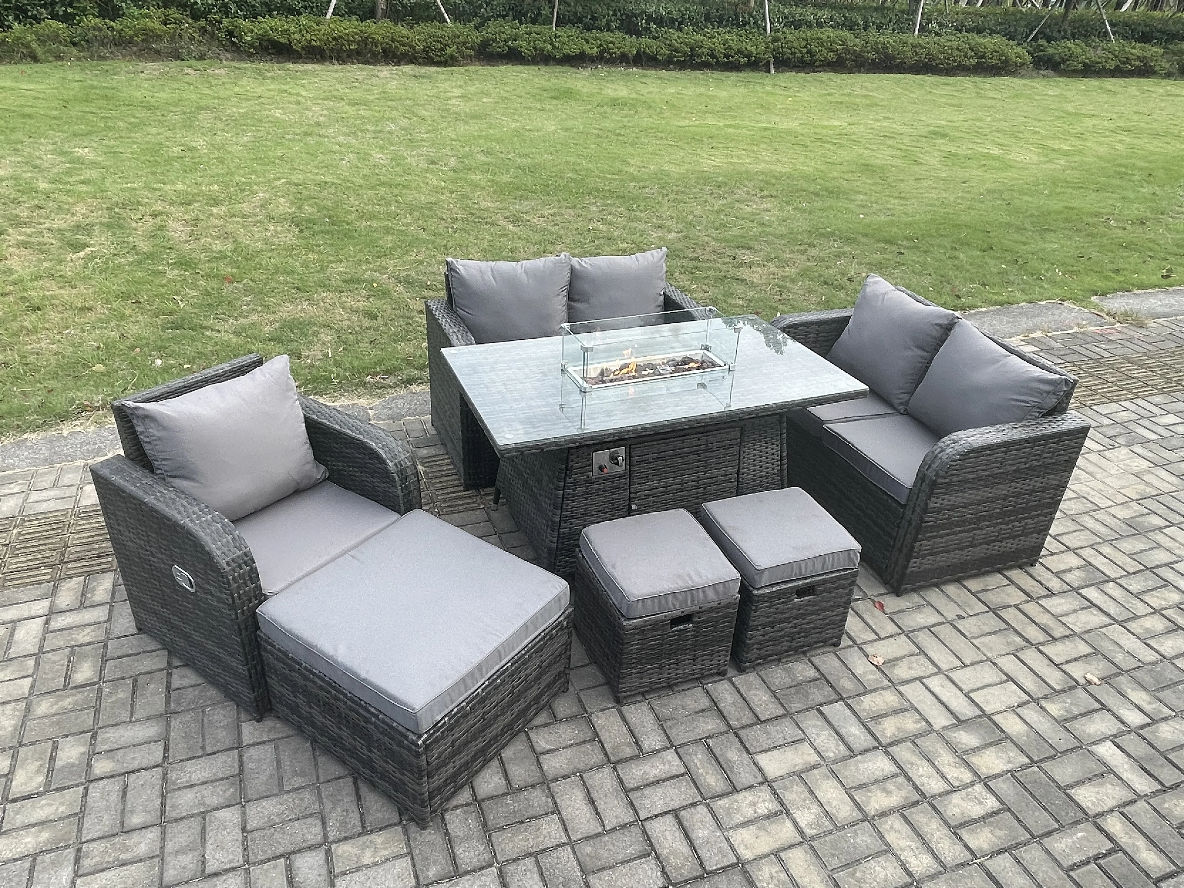 Gartensofa Set mit Gas Feuertisch 8-Sitzer Dunkelgrau