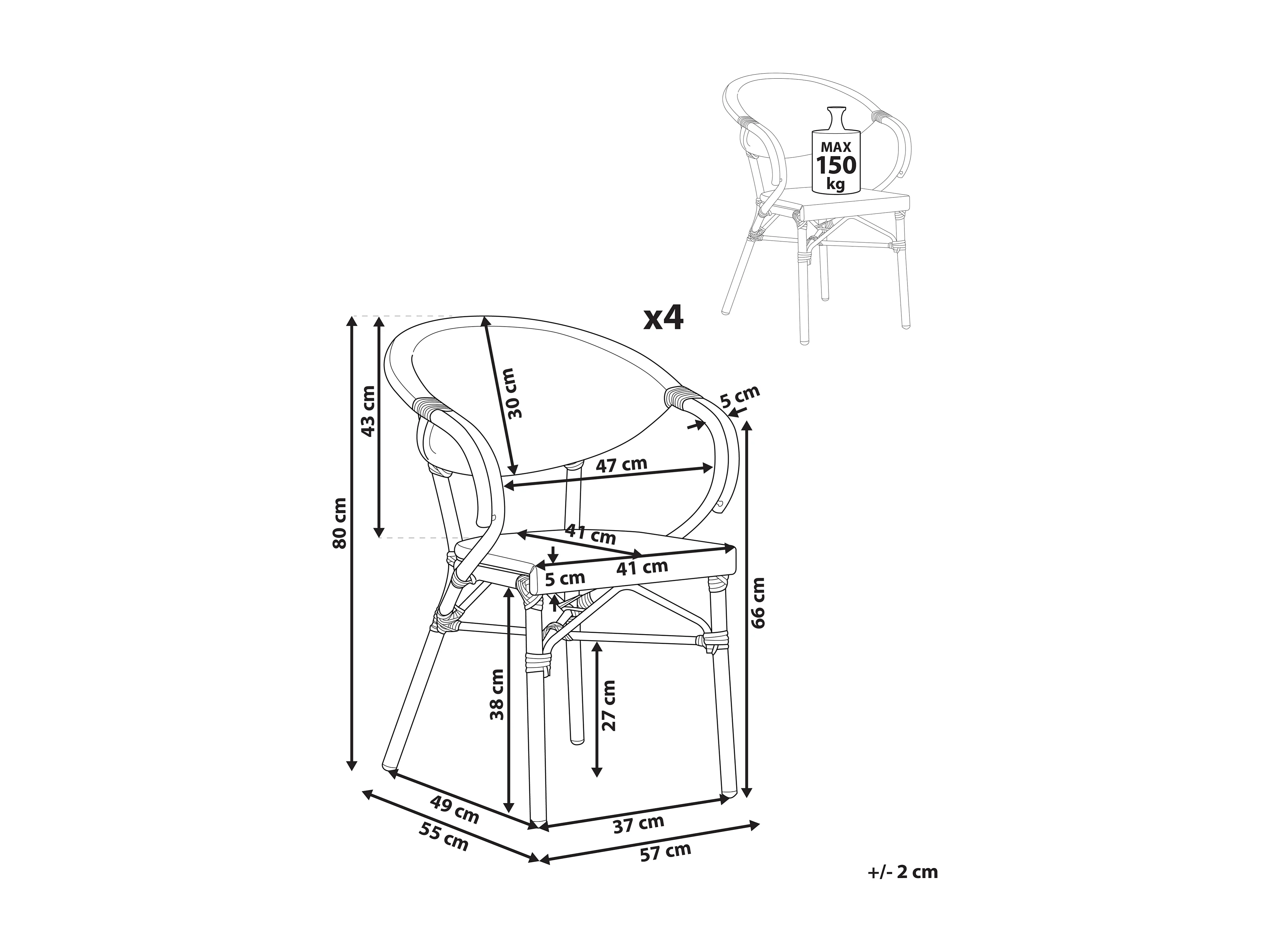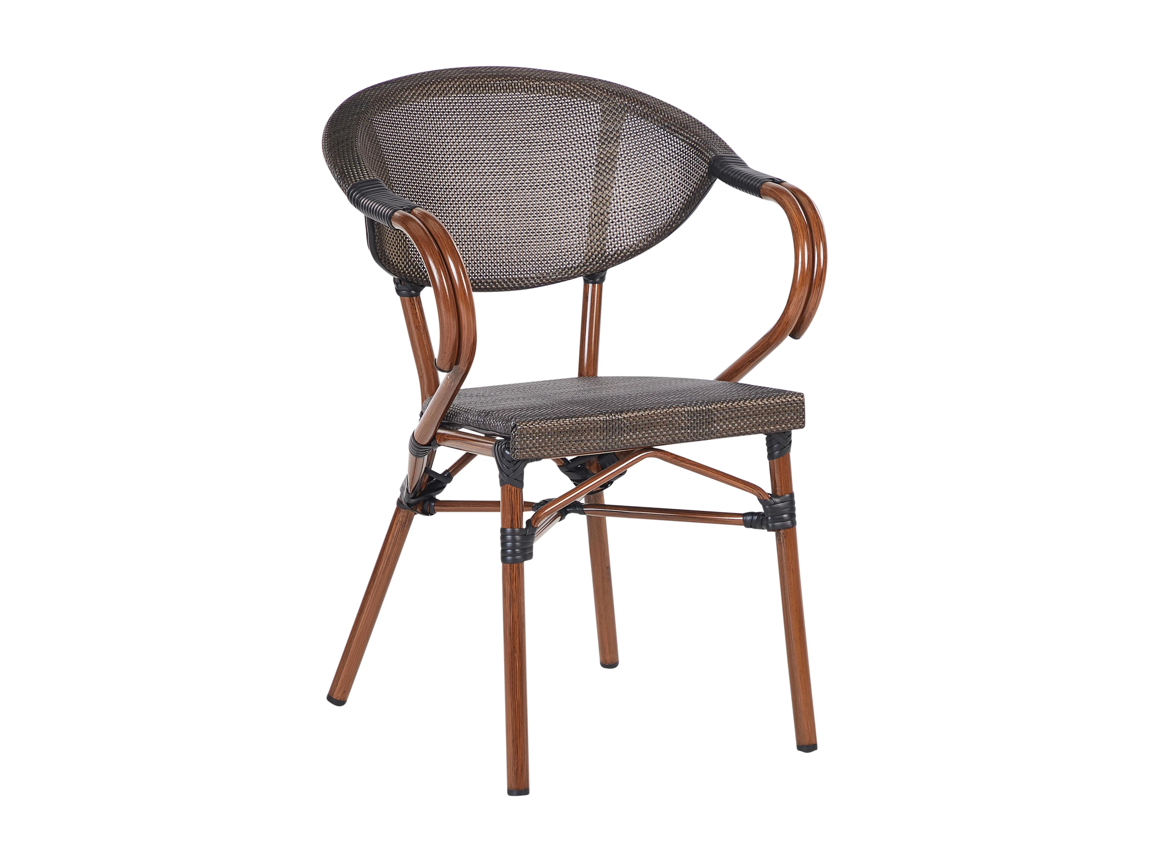 Gartenstuhl 4er Set bespannt grau Aluminiumgestell dunkle Holzoptik Caspri II